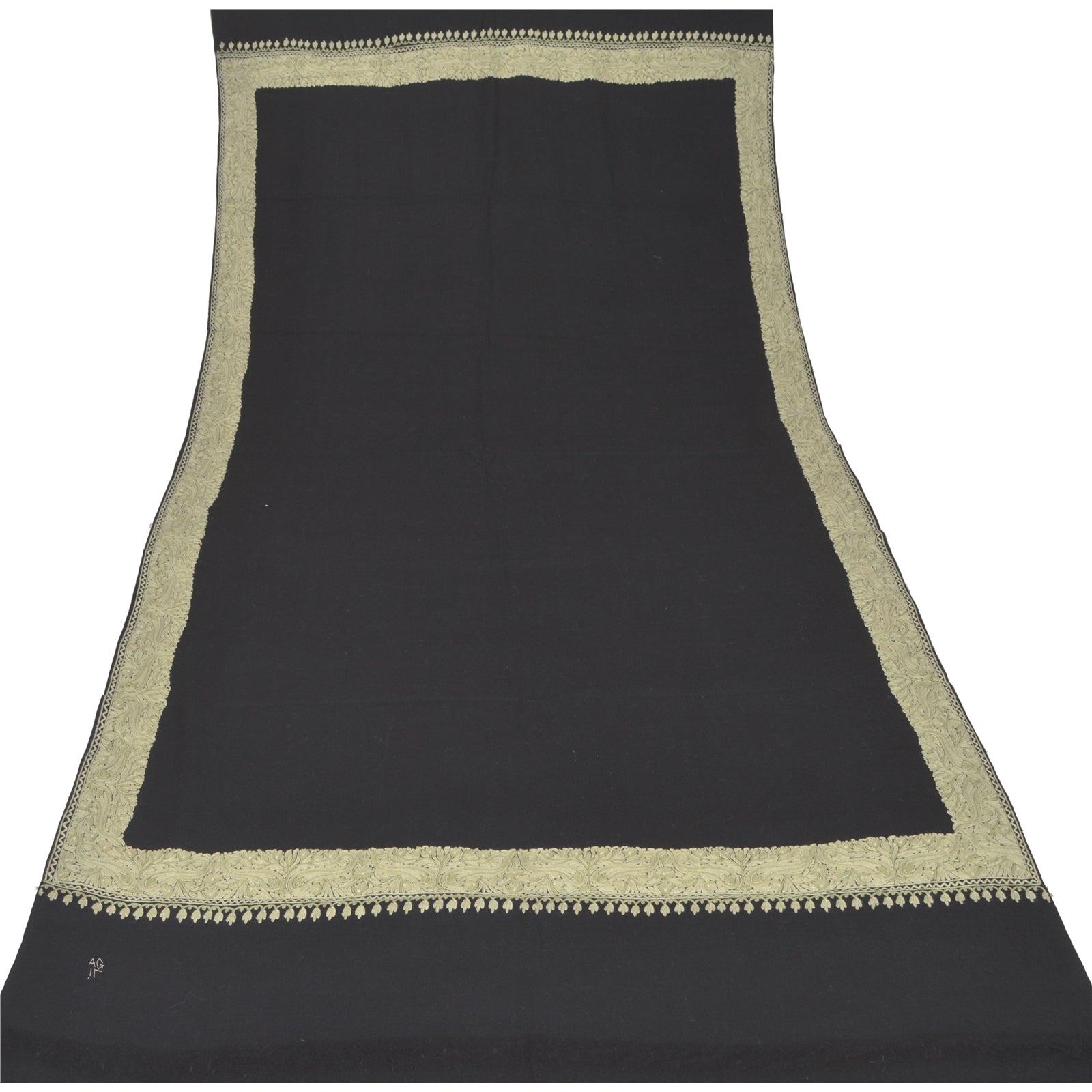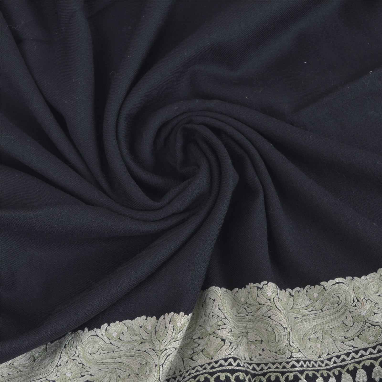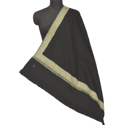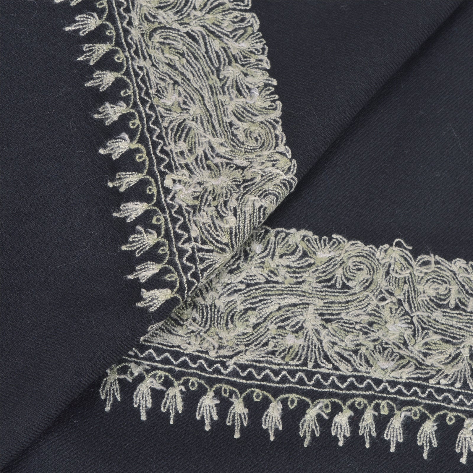 Sanskriti Vintage Long Shawl Off Black Handmade Ari Work Woolen Throw Stole