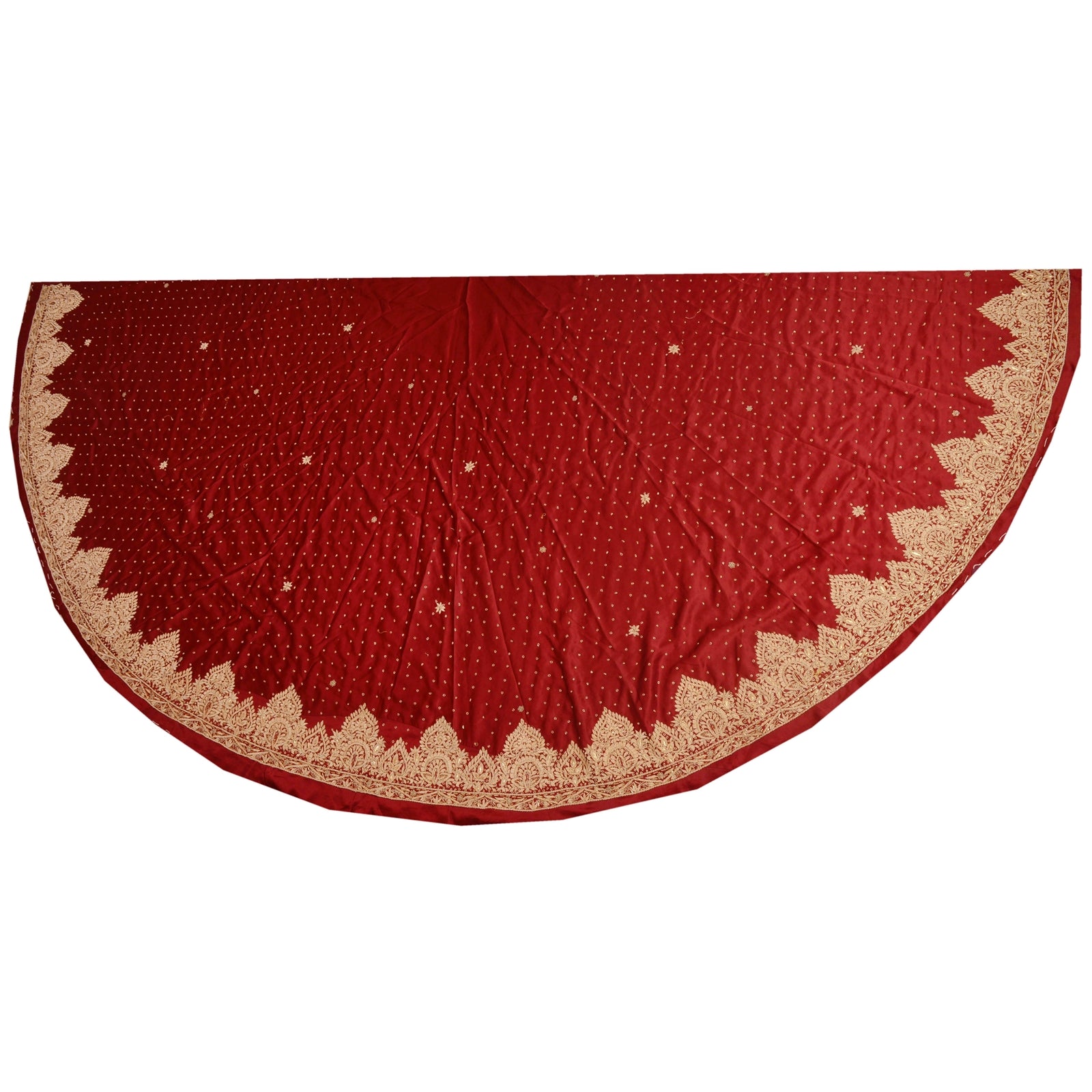 Sanskriti Vintage Dark Red Long Skirt Pure Satin Silk Hand Embroidered Unstitched Lehenga