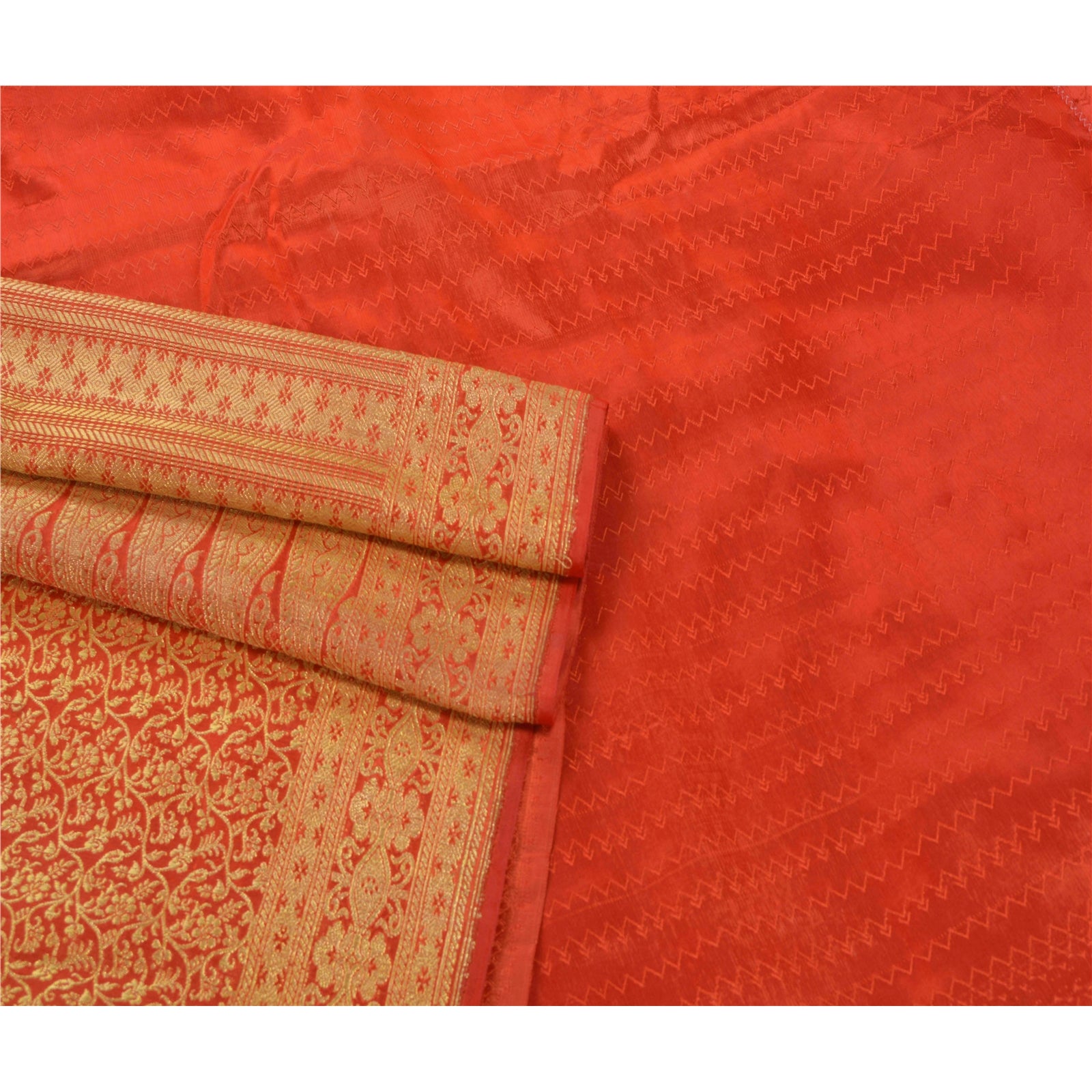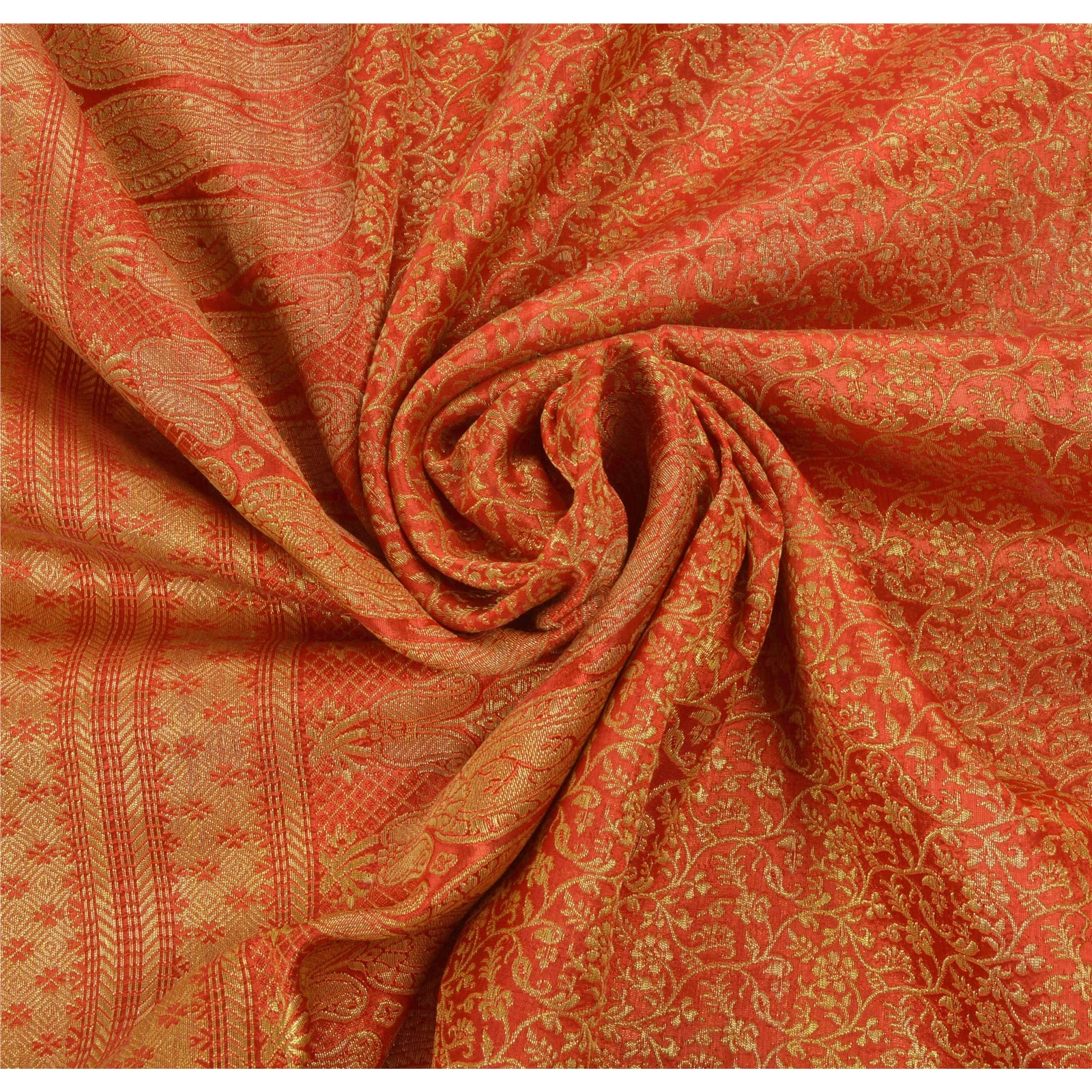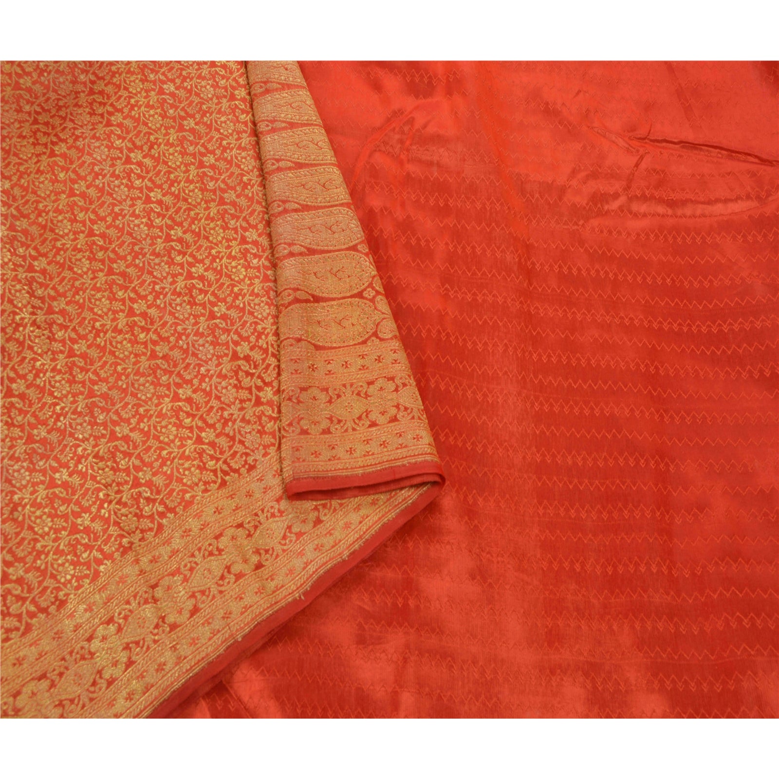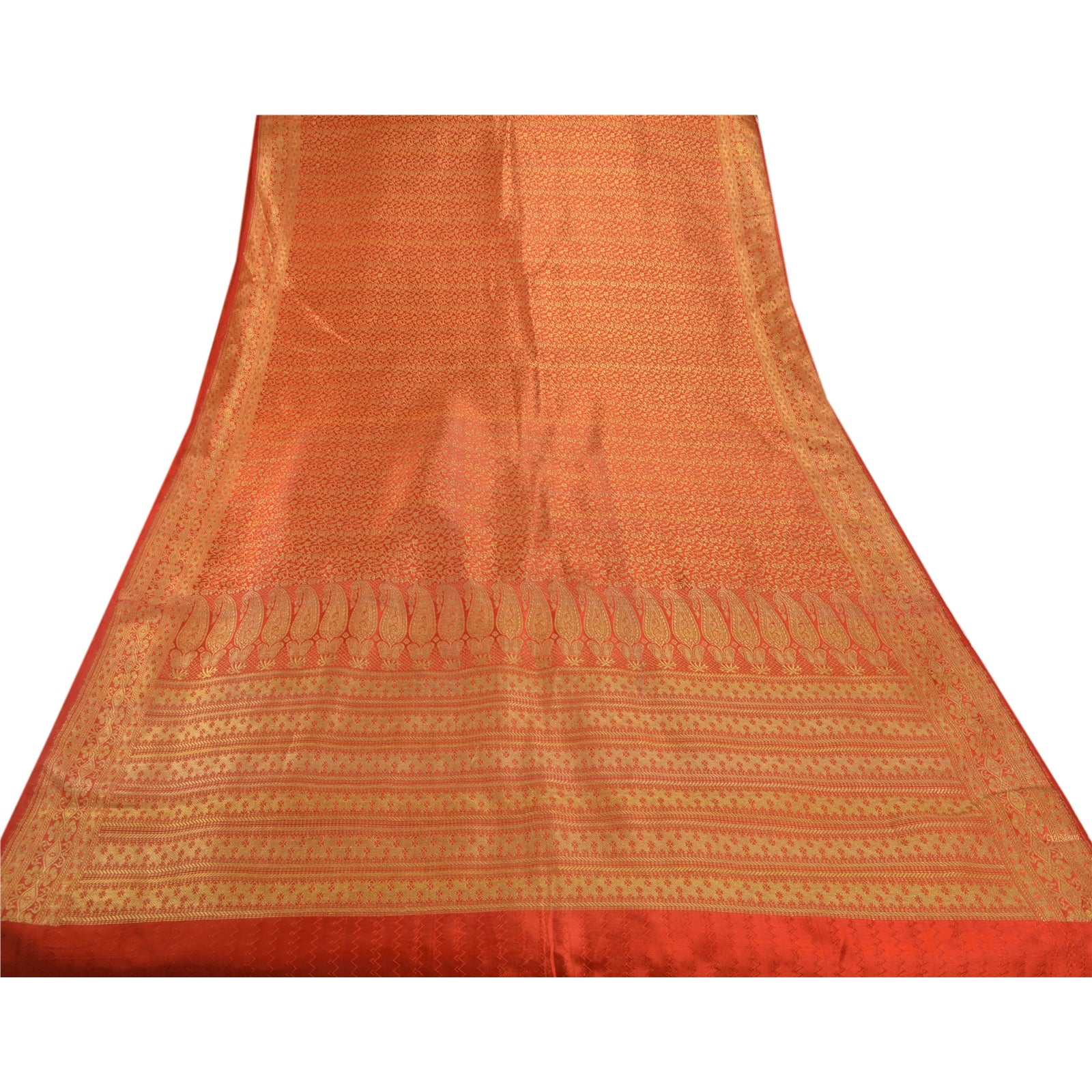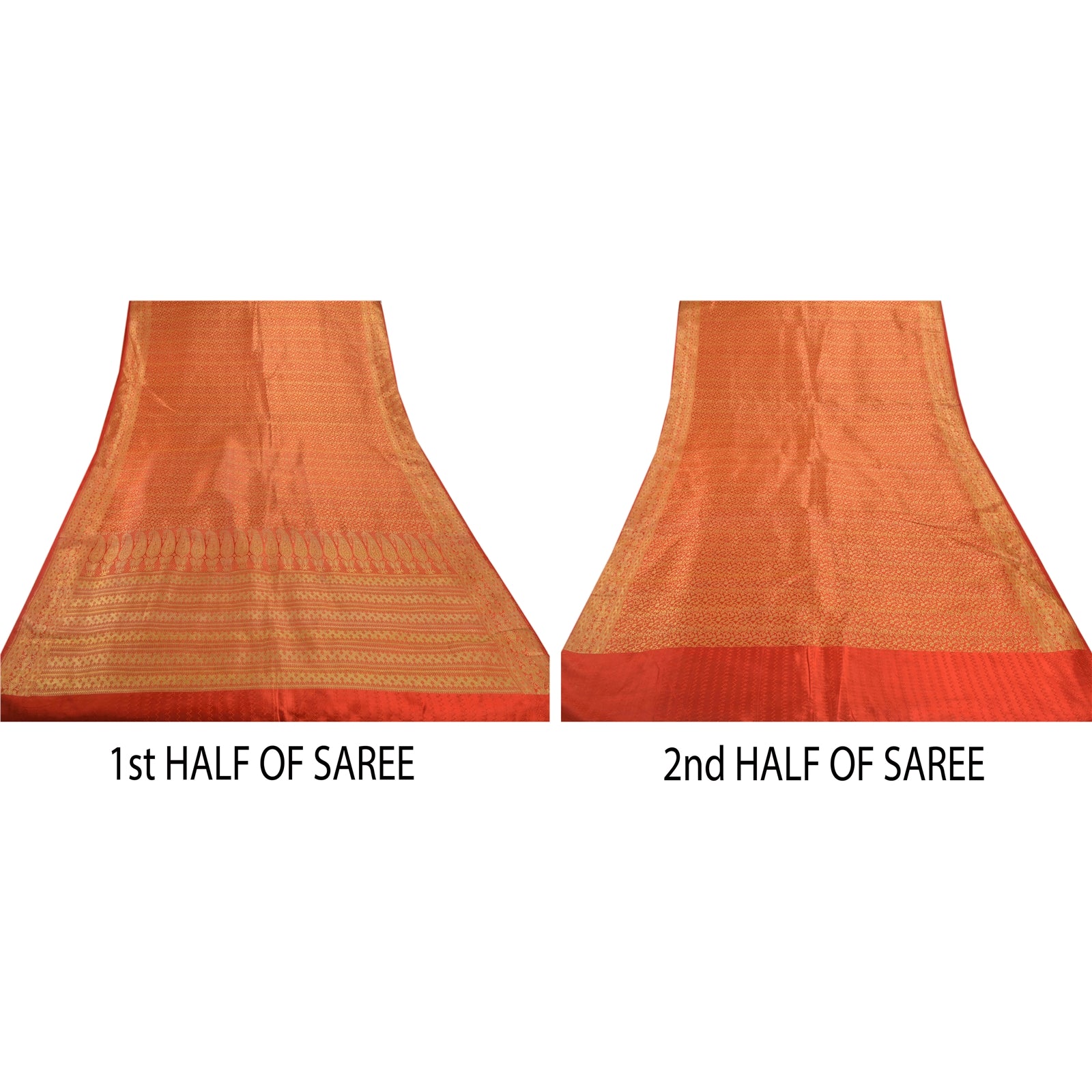 Sanskriti Vintage Orange Heavy Saree Art Silk Banarasi Brocade Sustainable Fabric Zari Sari