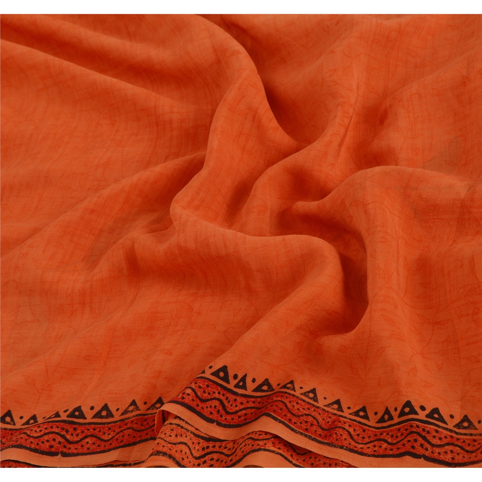 Sanskriti Vintage Orange Saree 100% Pure Crepe Silk Printed Sari Craft Sustainable Fabric