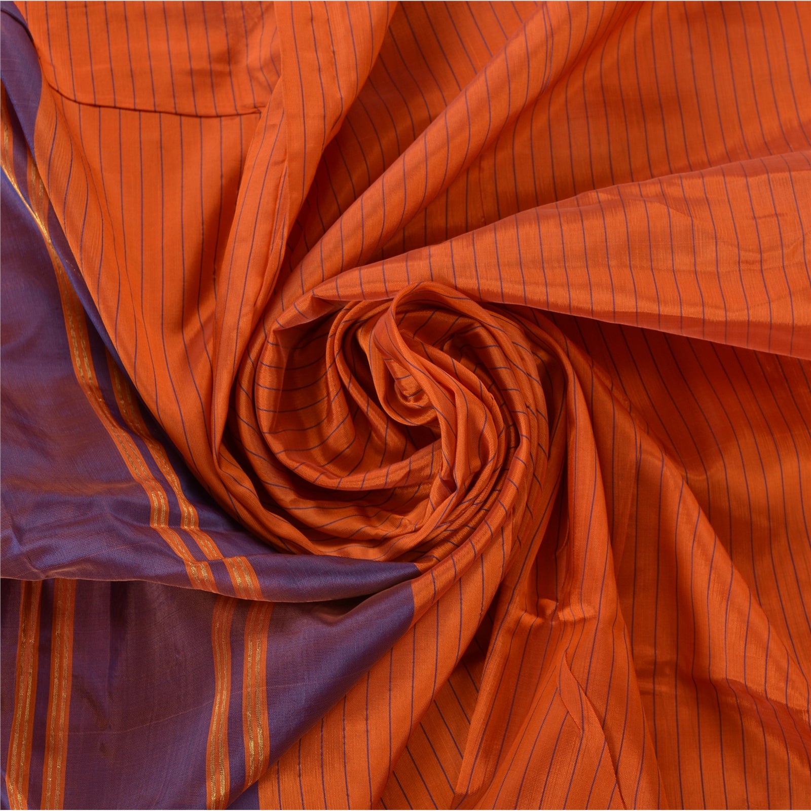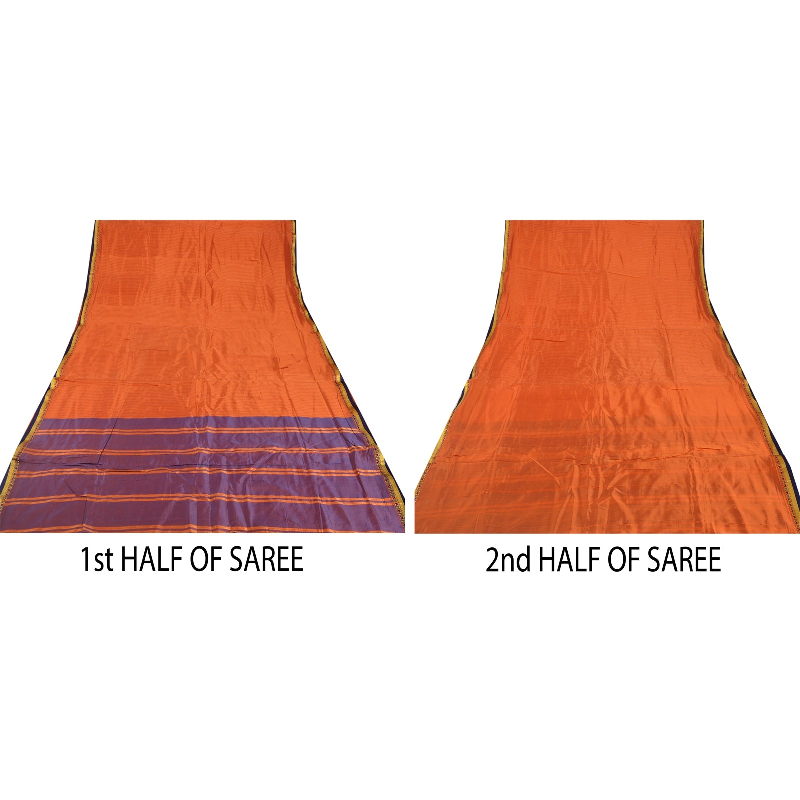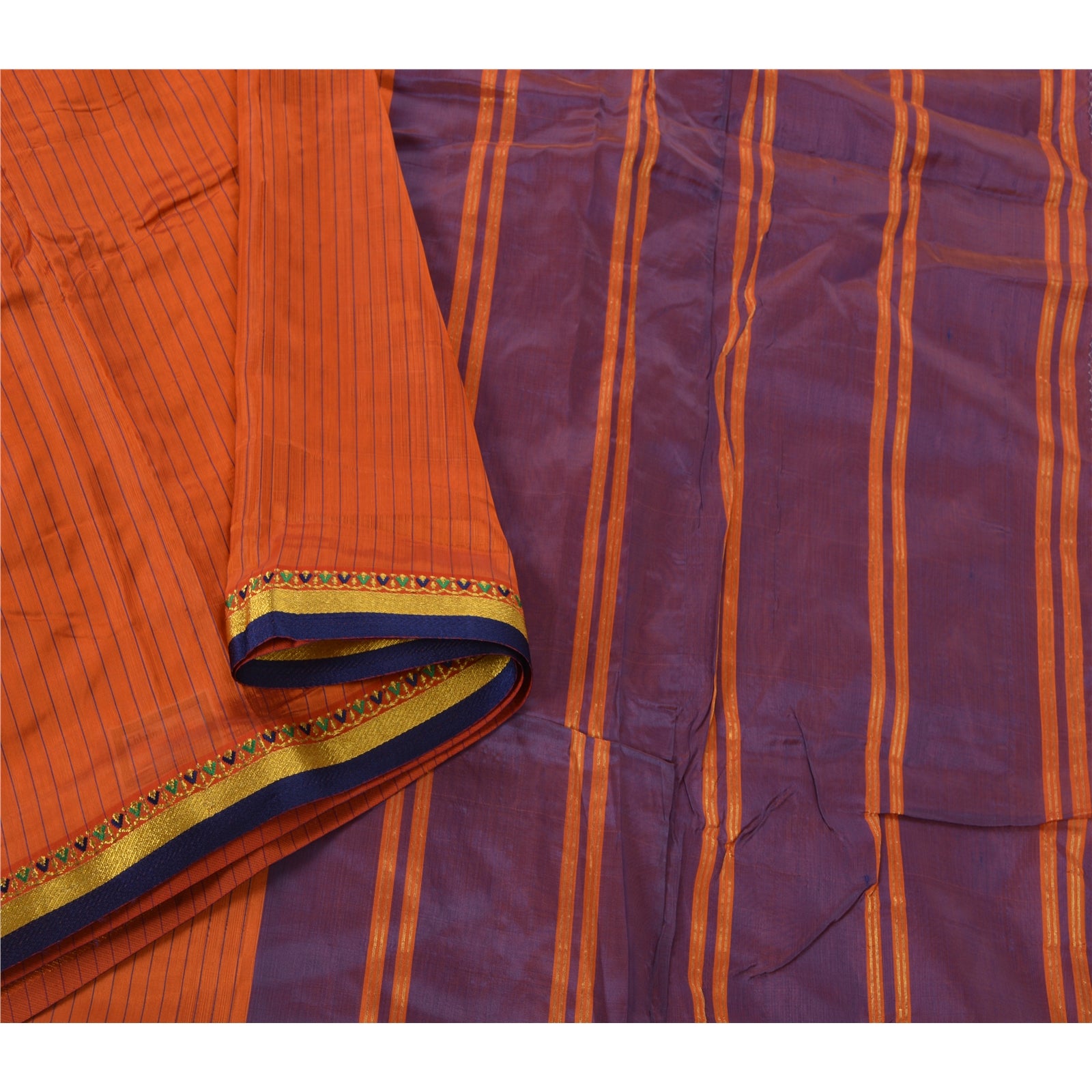 Sanskriti Vintage Orange Saree Blend Silk Woven Craft 5 Yd Sustainable Fabric Premium Sari