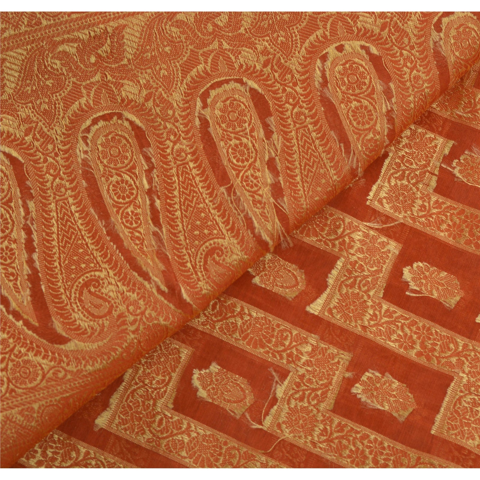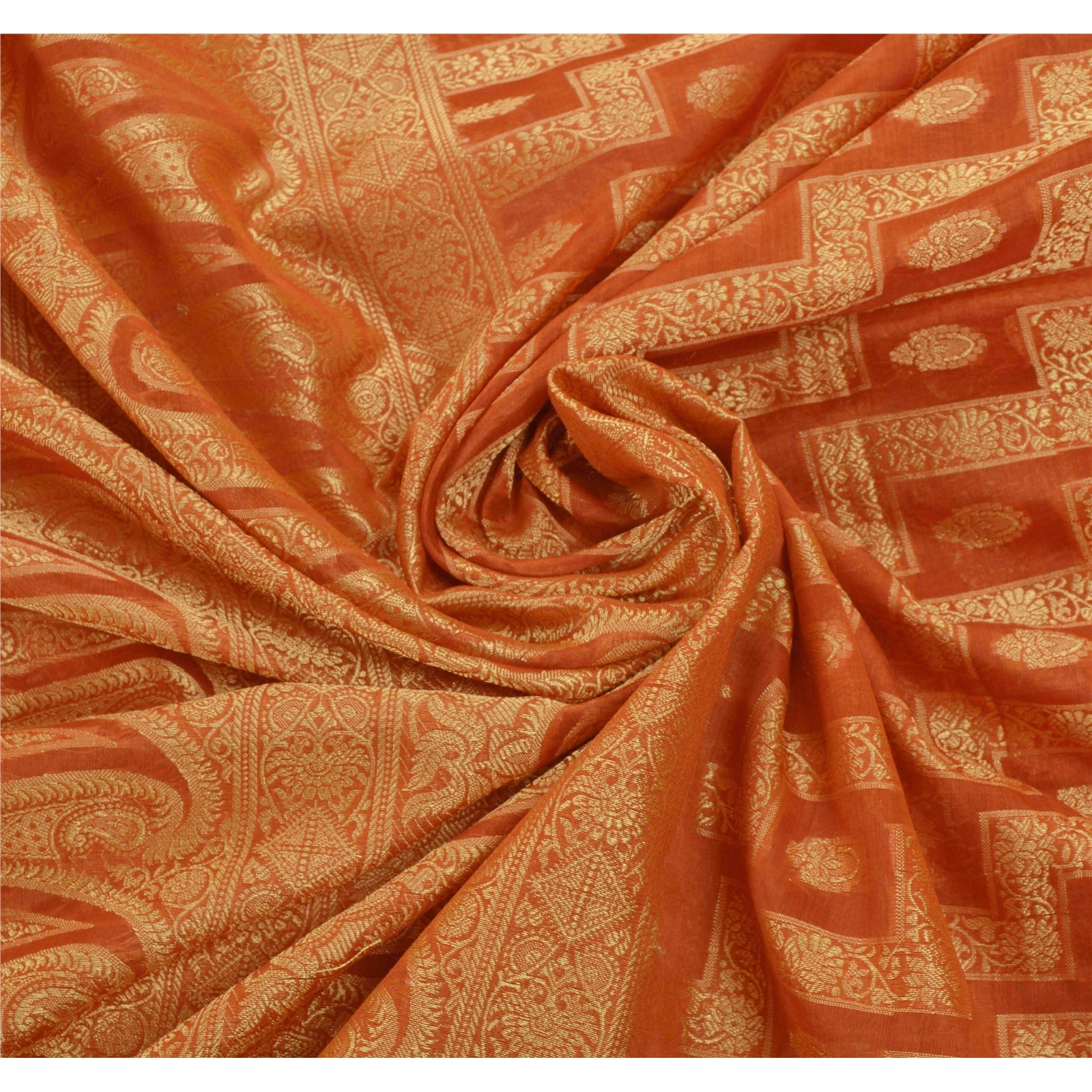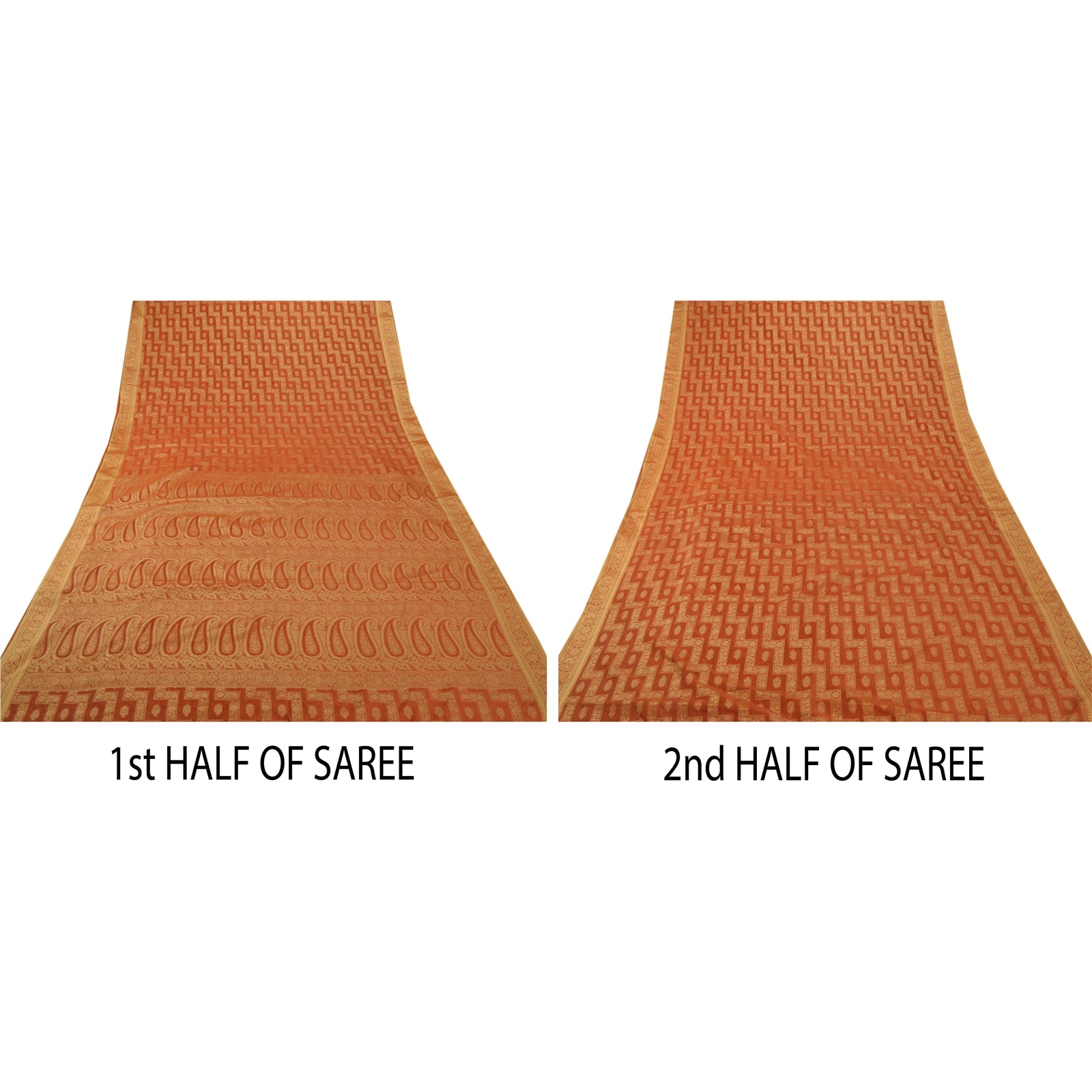 Sanskriti Vintage Orange Saree Organza Woven Craft Sustainable Fabric Premium 5 Yard Sari