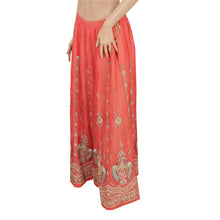Sanskriti Vintage Pink Long Skirt American Georgette Hand Beaded Stitched Ethnic