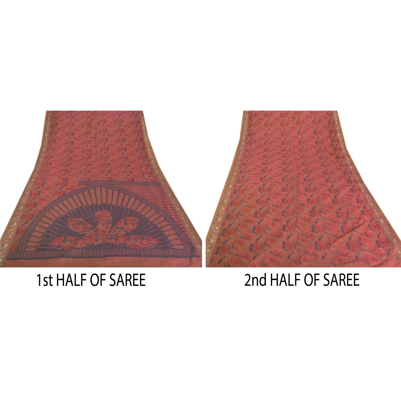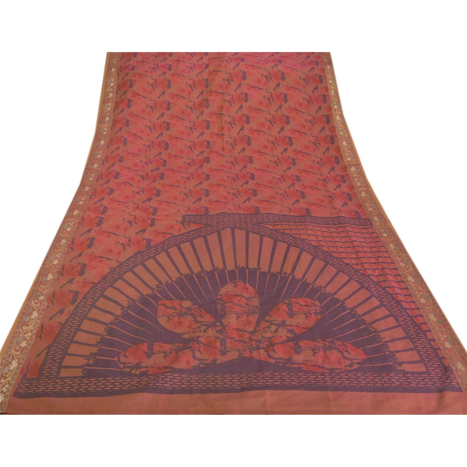 Sanskriti Vintage Pink Saree Art Silk Woven Printed Craft Sustainable Fabric Premium Sari
