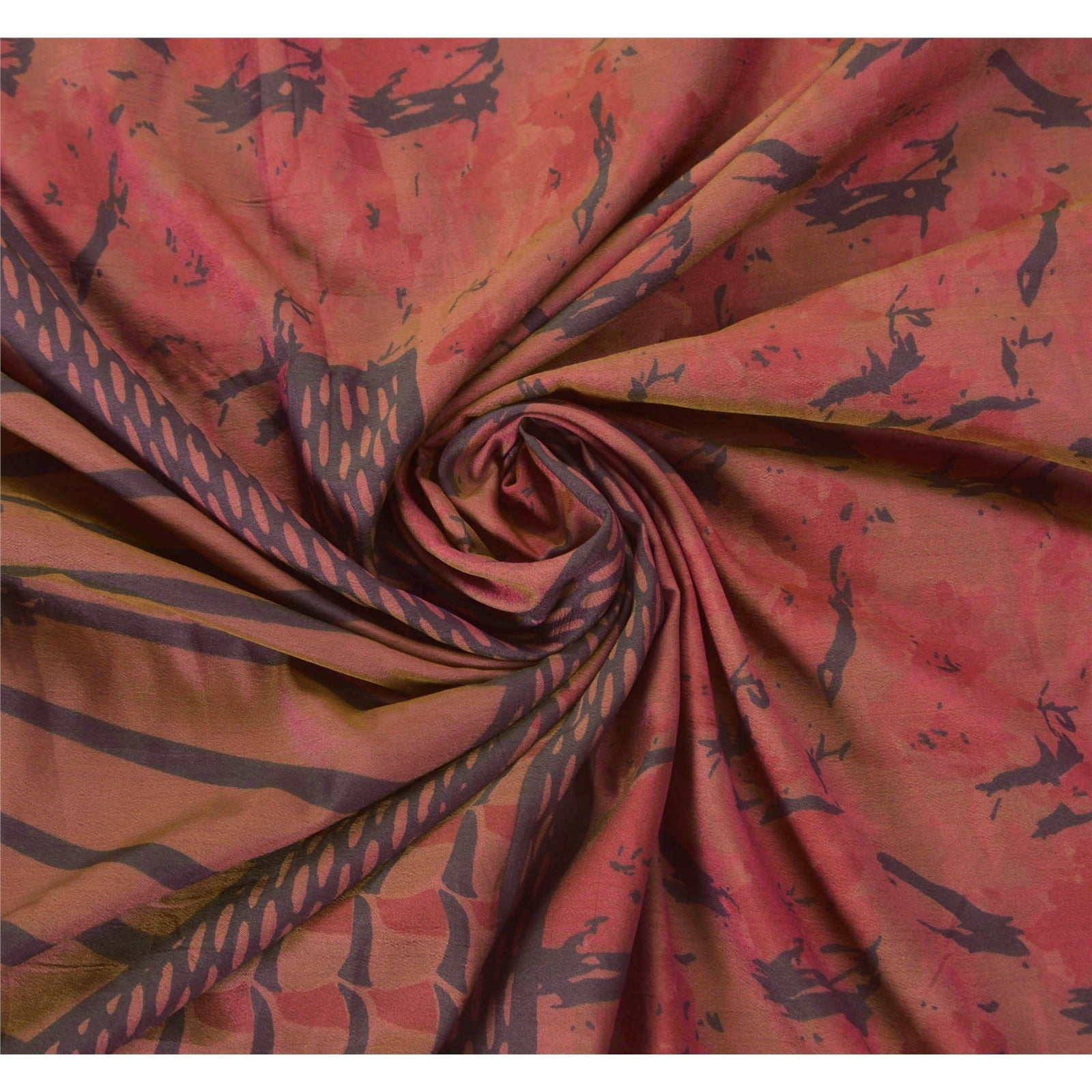 • Beautiful pink colored woven printed art silk sari. • All over sari features floral design embellished with black printed work. On border has cream/golden thread woven work. What is special about this saree? Attractive printed work with floral design on pink color base Sustainable Fabric is really enhancing the beauty of the saree. This unique vintage saree can be used for various crafting ideas even if you don't want to use it as a sari. Design a dress, use it as a throw, as window dressing, upholstery, sarongs, table linen and much more. Let your creative juices flow and use this decorated Sustainable Fabric in multiple fashion. Note: This sari is not a pure silk it's artificial silk.