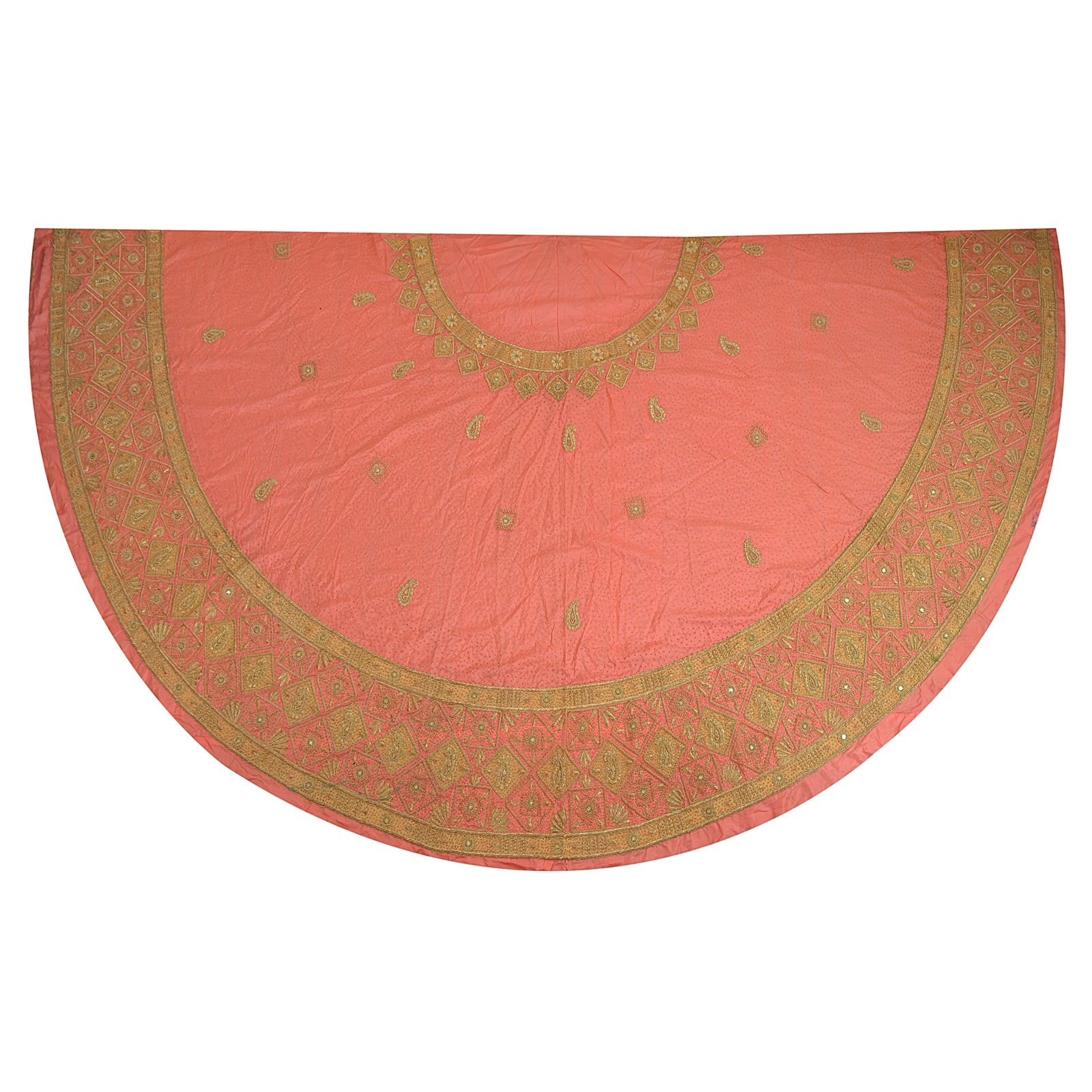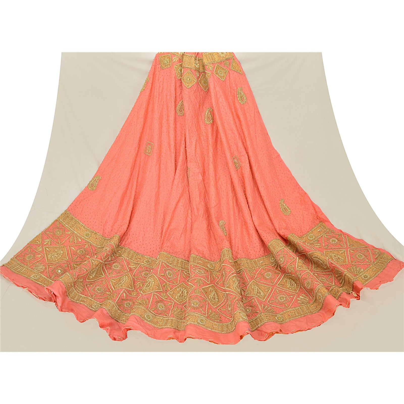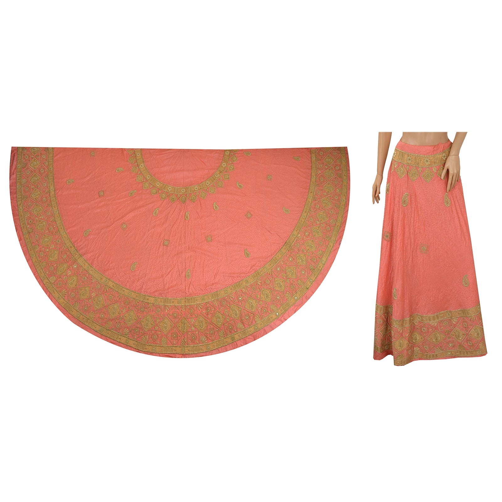 Sanskriti Vintage Pink Unstitched Long Skirt Lehenga Heavy Wedding Zardozi