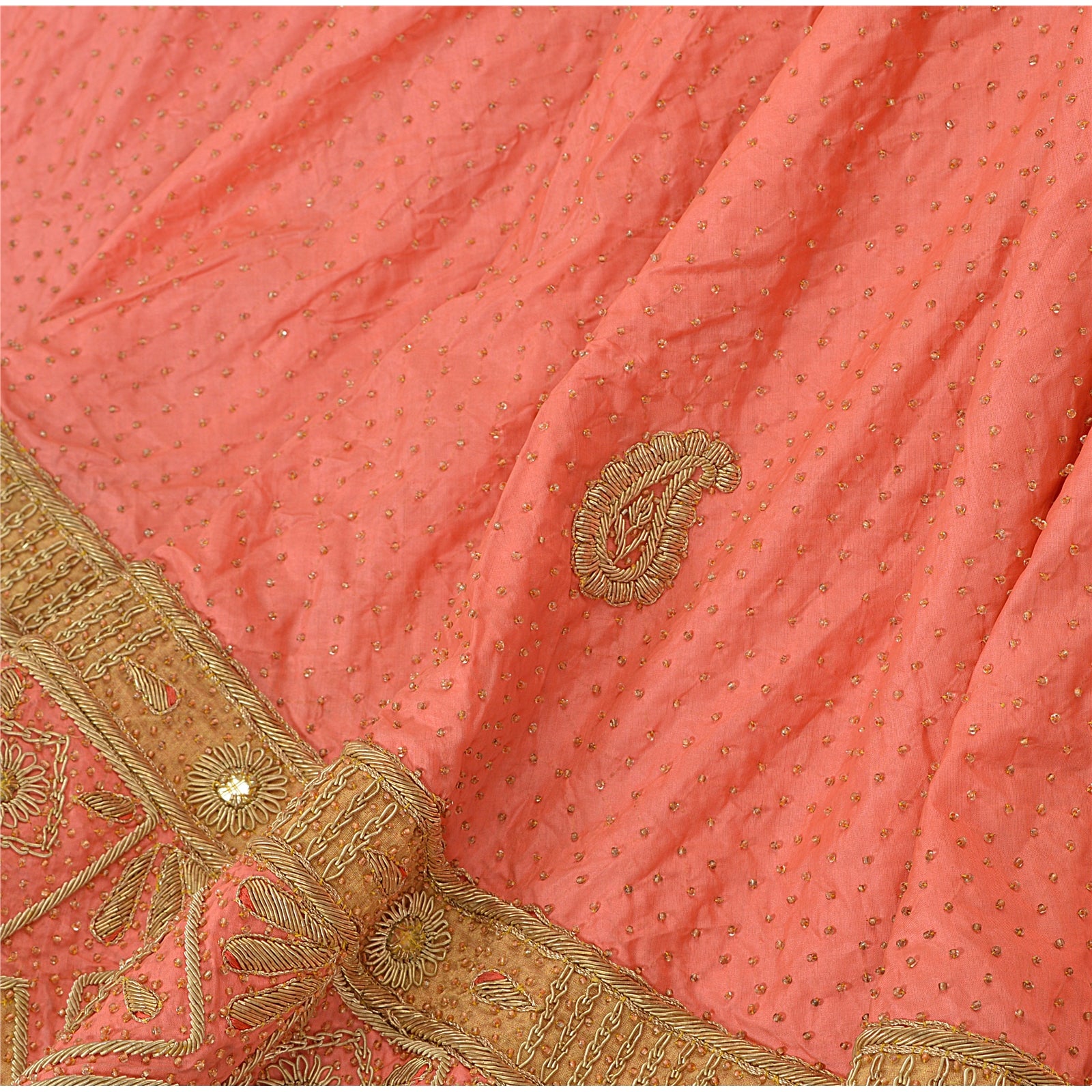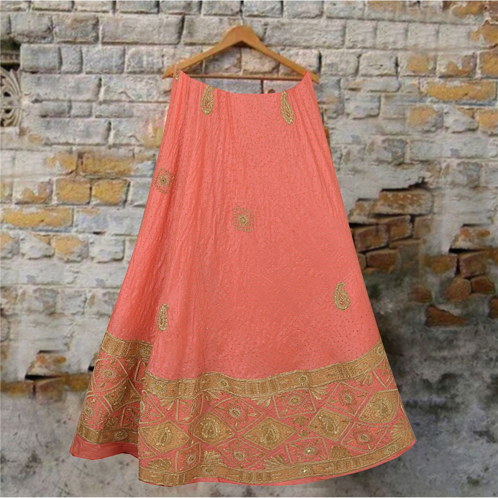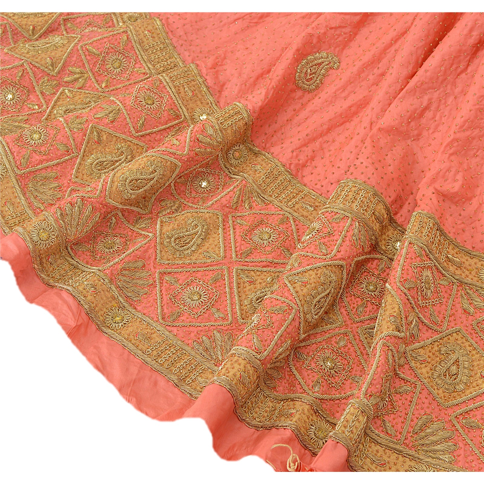 Sanskriti Vintage Pink Unstitched Long Skirt Lehenga Heavy Wedding Zardozi