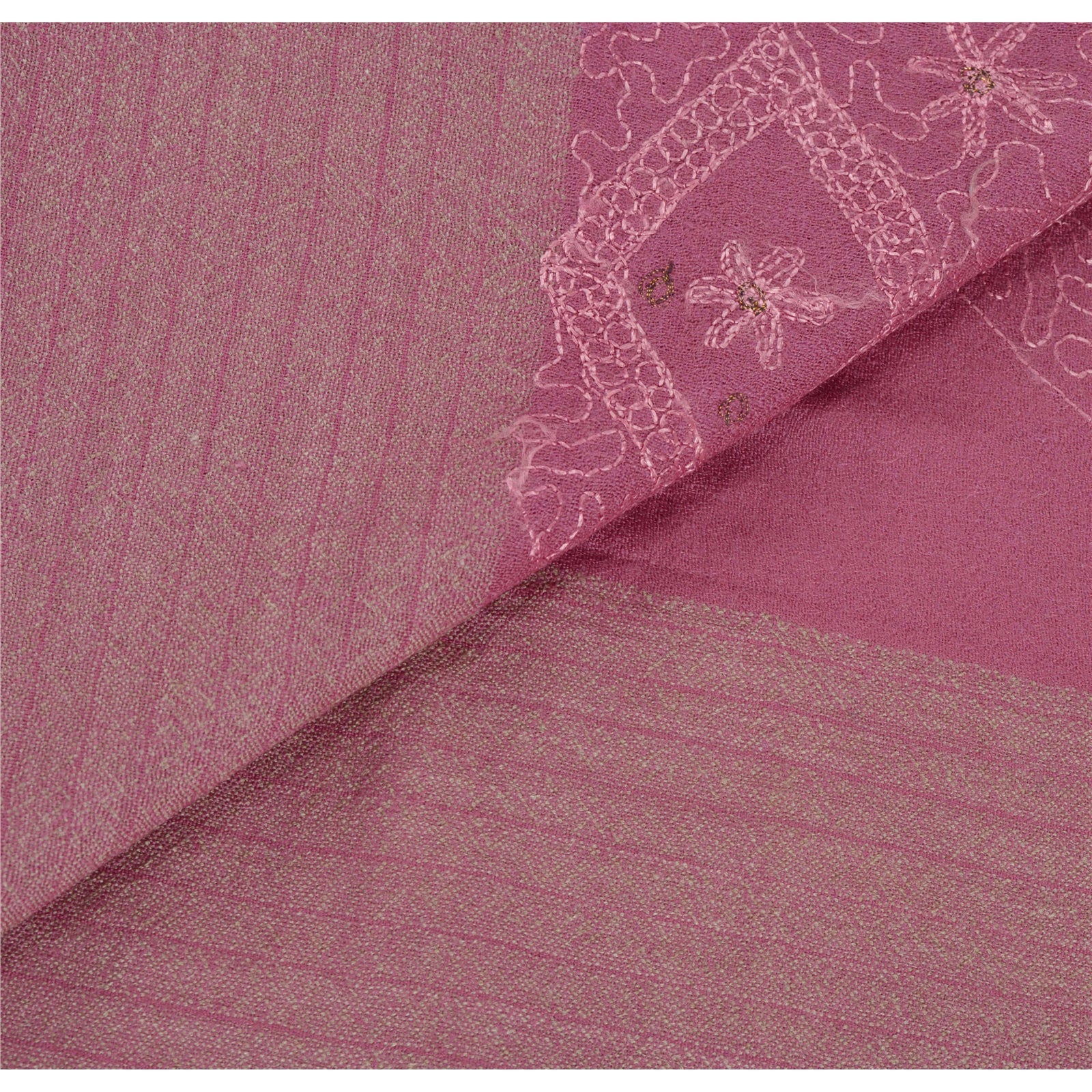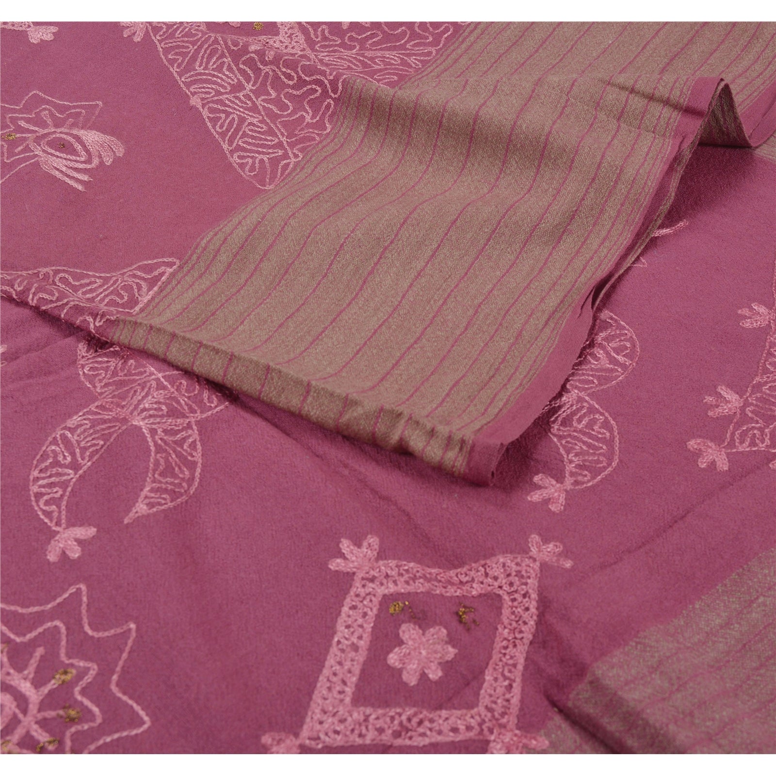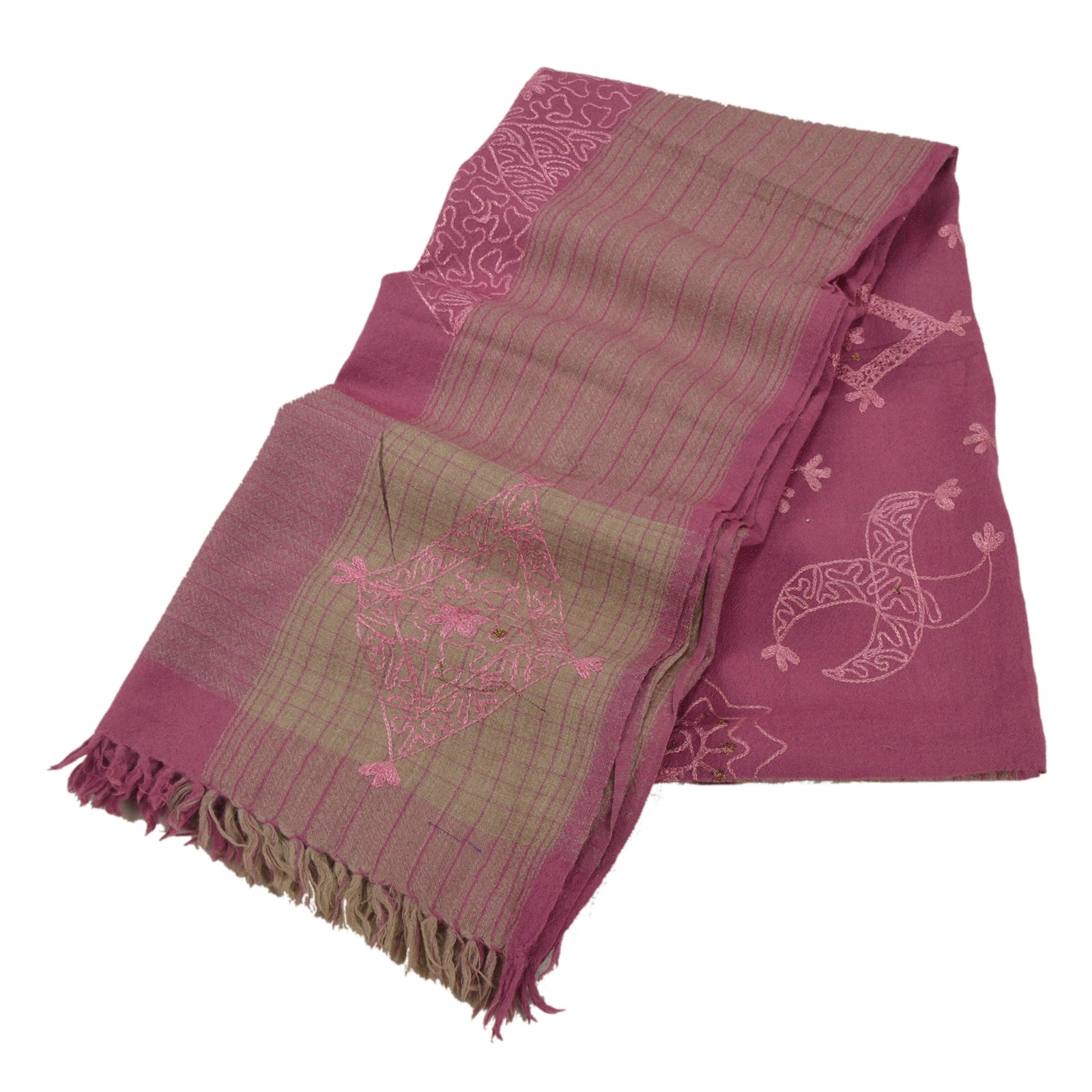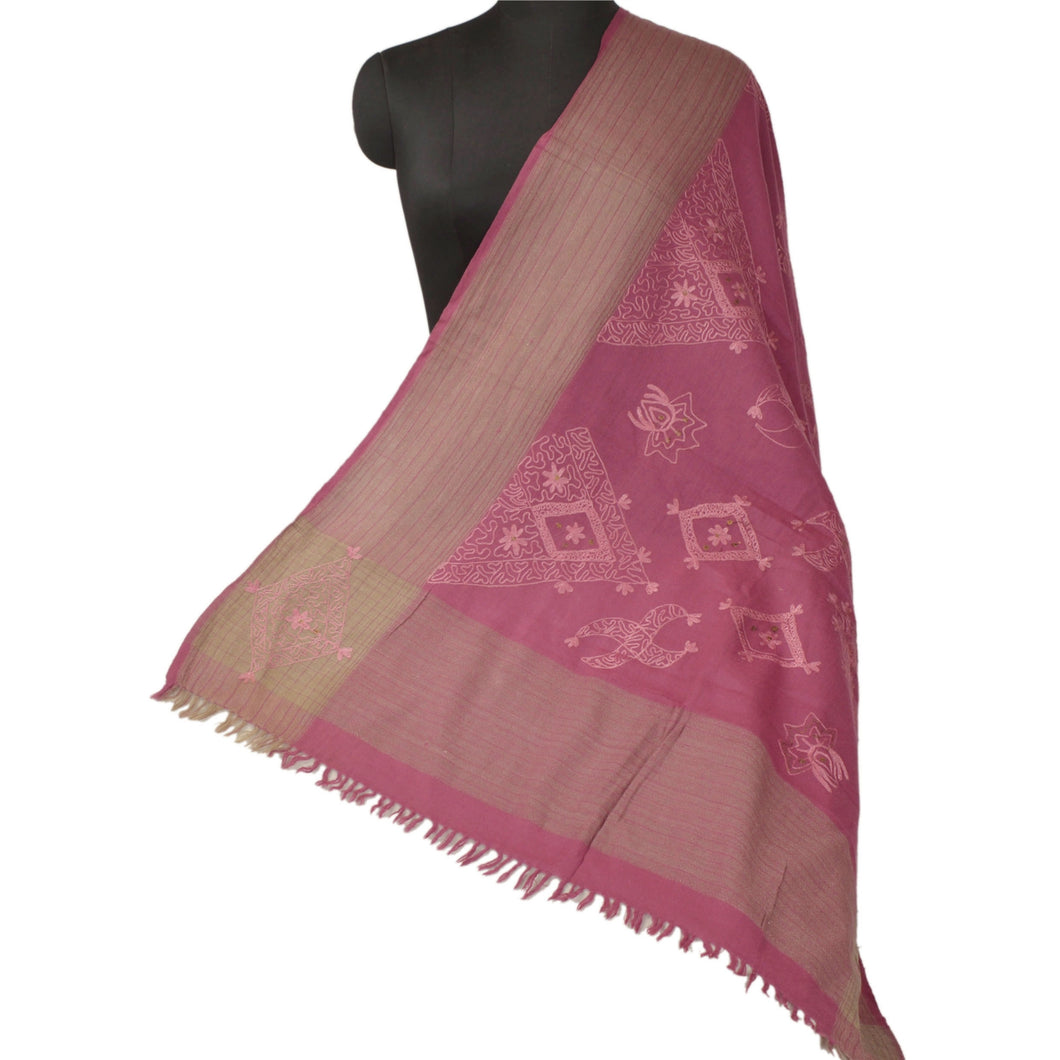 Sanskriti Vintage Pink Woolen Shawl Hand Embroidered Ari Work Stole Scarf