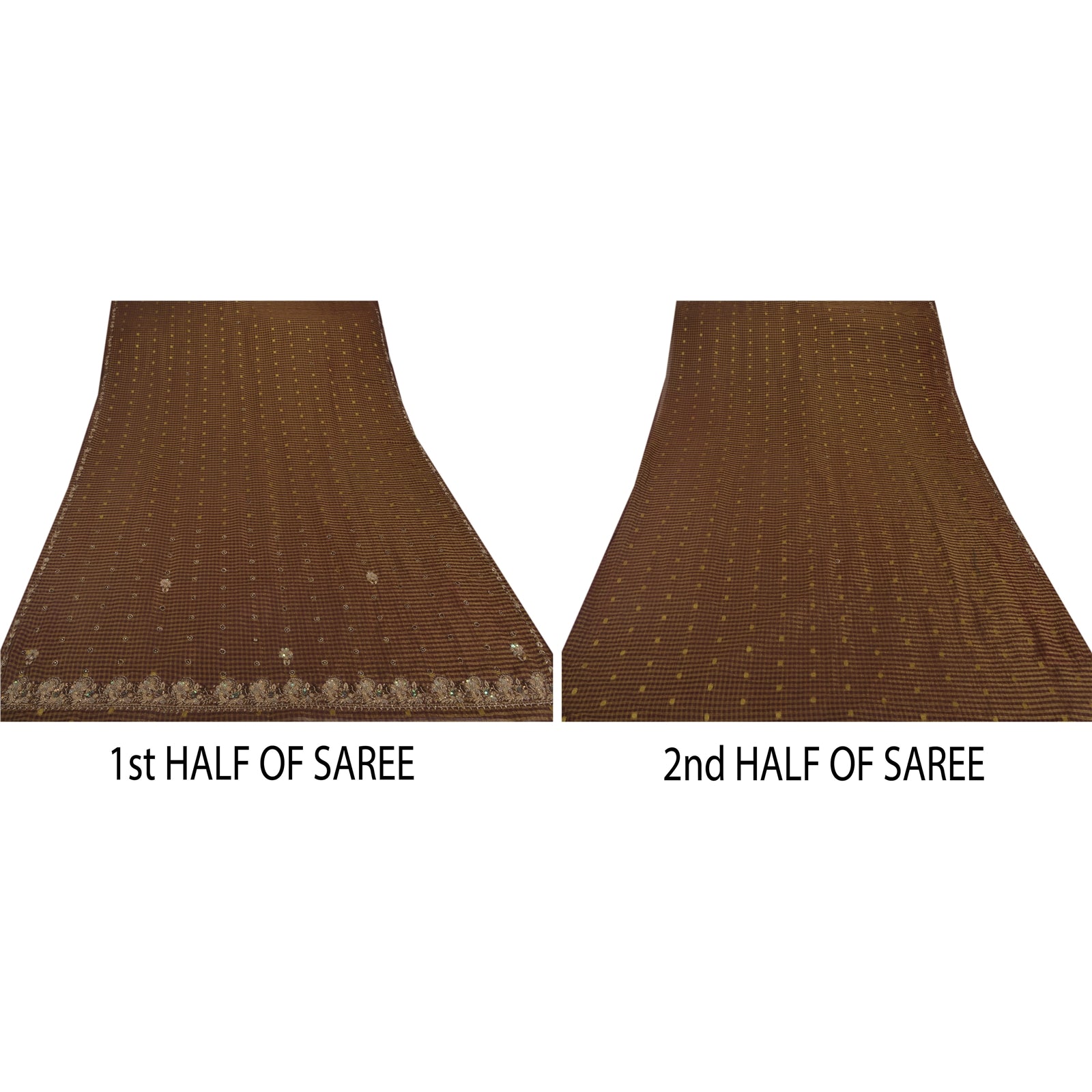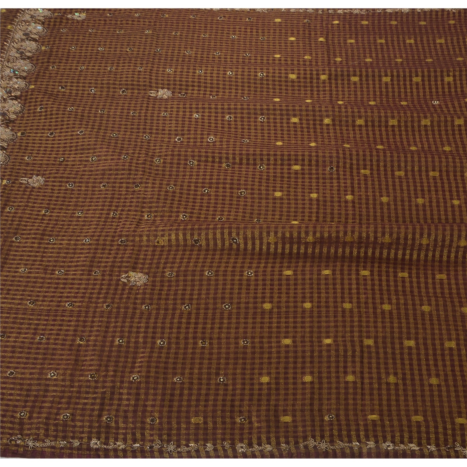 Sanskriti Vintage Purple Saree Blend Georgette Hand Beaded Sustainable Fabric Craft Sari