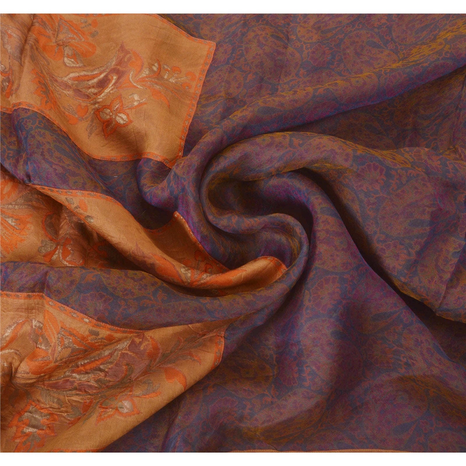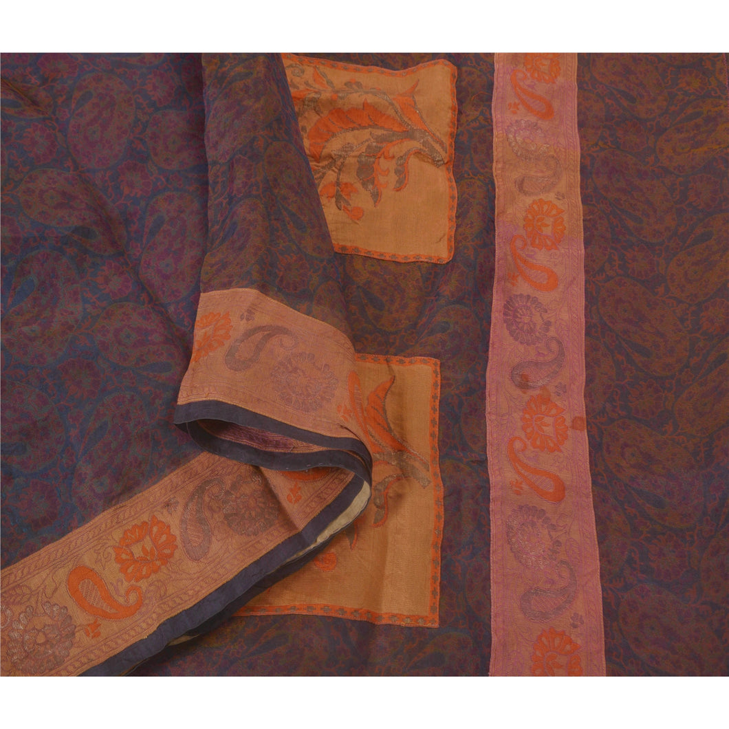 • Awesome purple colored woven 100% pure silk sari. • Pallu & border features floral & paisley design with orange/purple woven work on cream patch work. • Similar woven work in center part of saree. What is special about this saree? Fascinating woven work with floral design on purple color base Sustainable Fabric is really enhancing the beauty of the saree. This unique vintage saree can be used for various crafting ideas even if you don't want to use it as a sari. Design a dress, use it as a throw, as window dressing, upholstery, sarongs, table linen and much more. Let your creative juices flow and use this decorated Sustainable Fabric in multiple fashion.