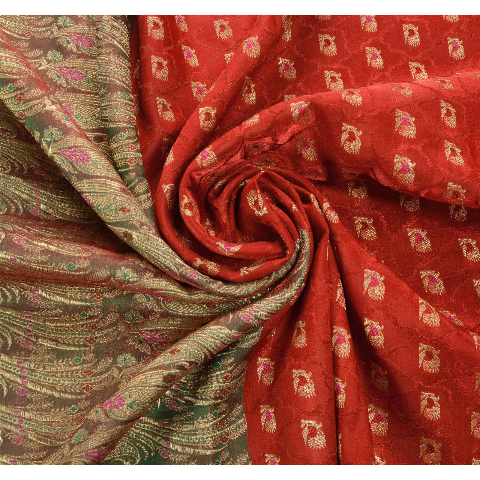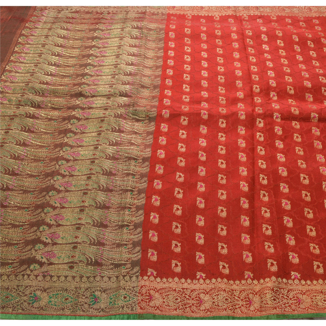 Sanskriti Vintage Red Heavy Saree Art Silk Banarasi Brocade Woven Sustainable Fabric Sari