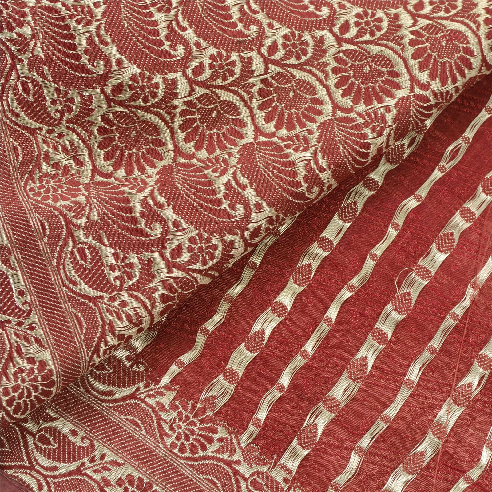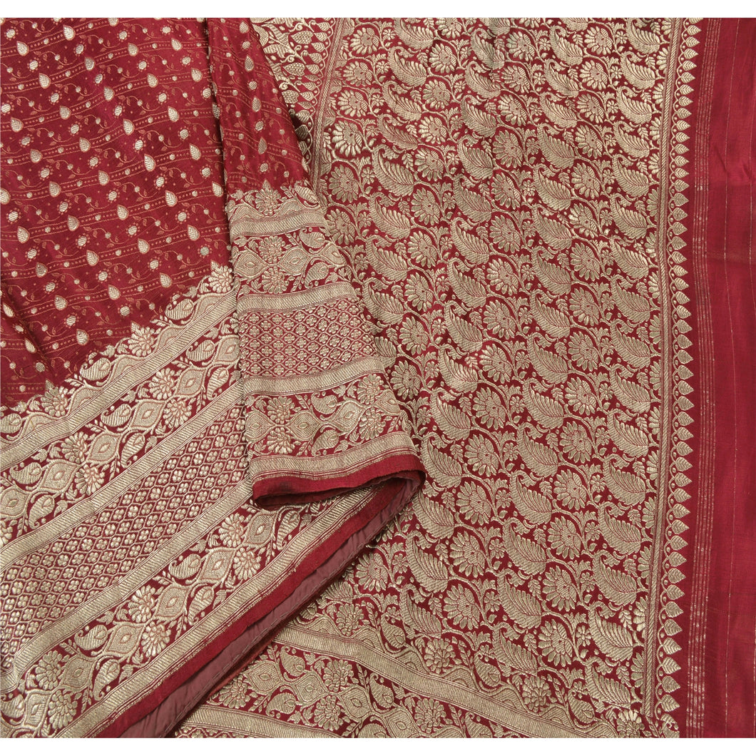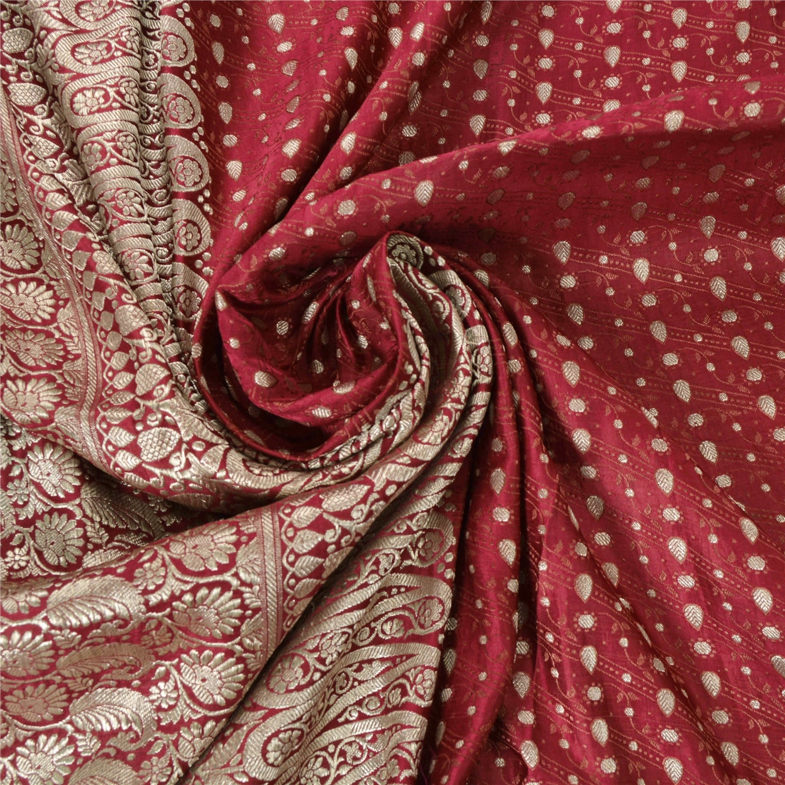 Sanskriti Vintage Red Heavy Saree Pure Satin Silk Banarasi Brocade Sustainable Fabric Sari