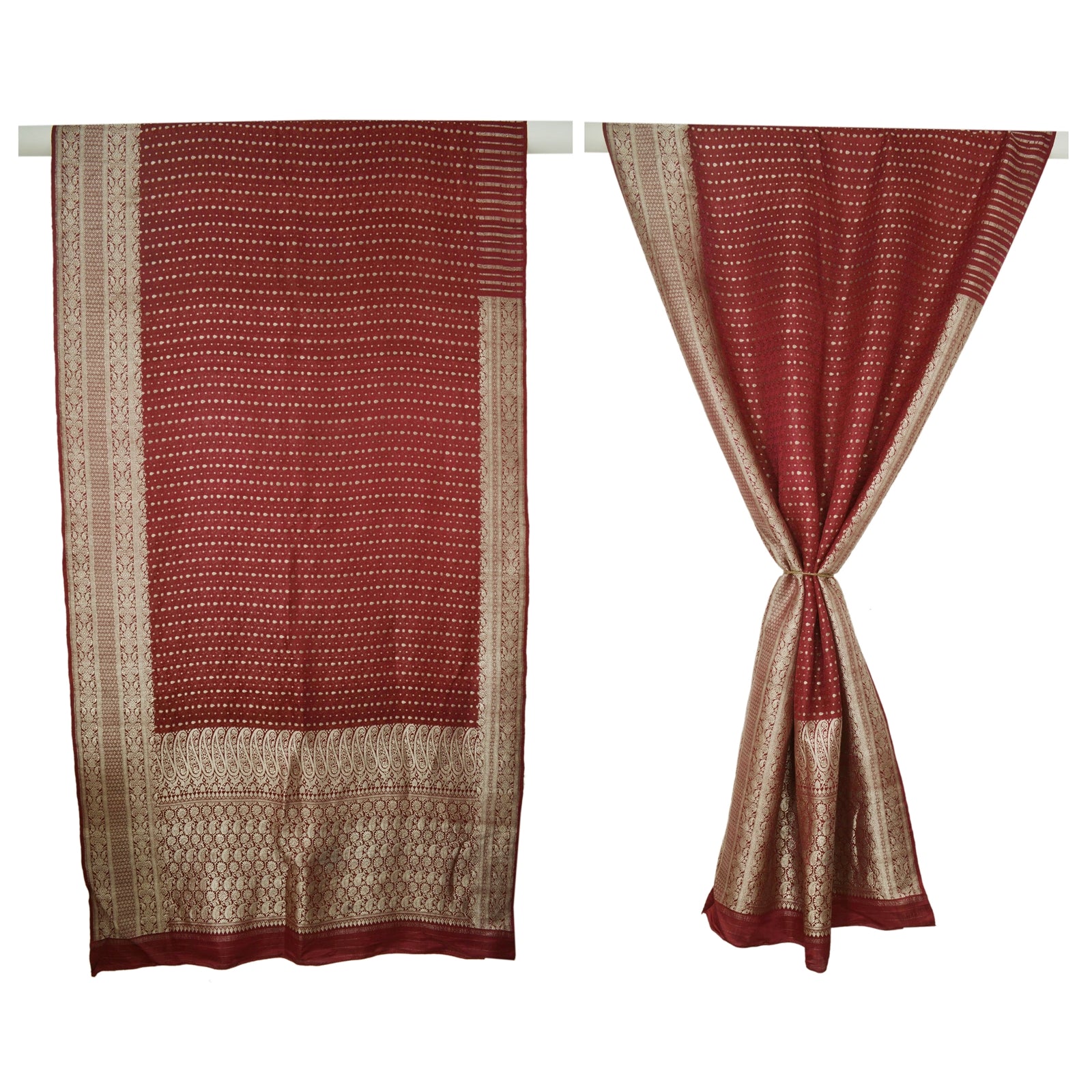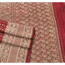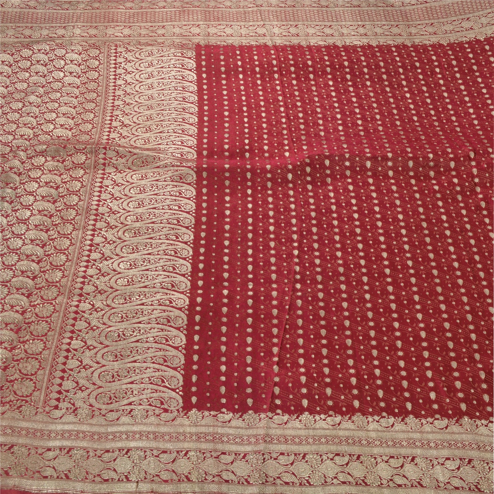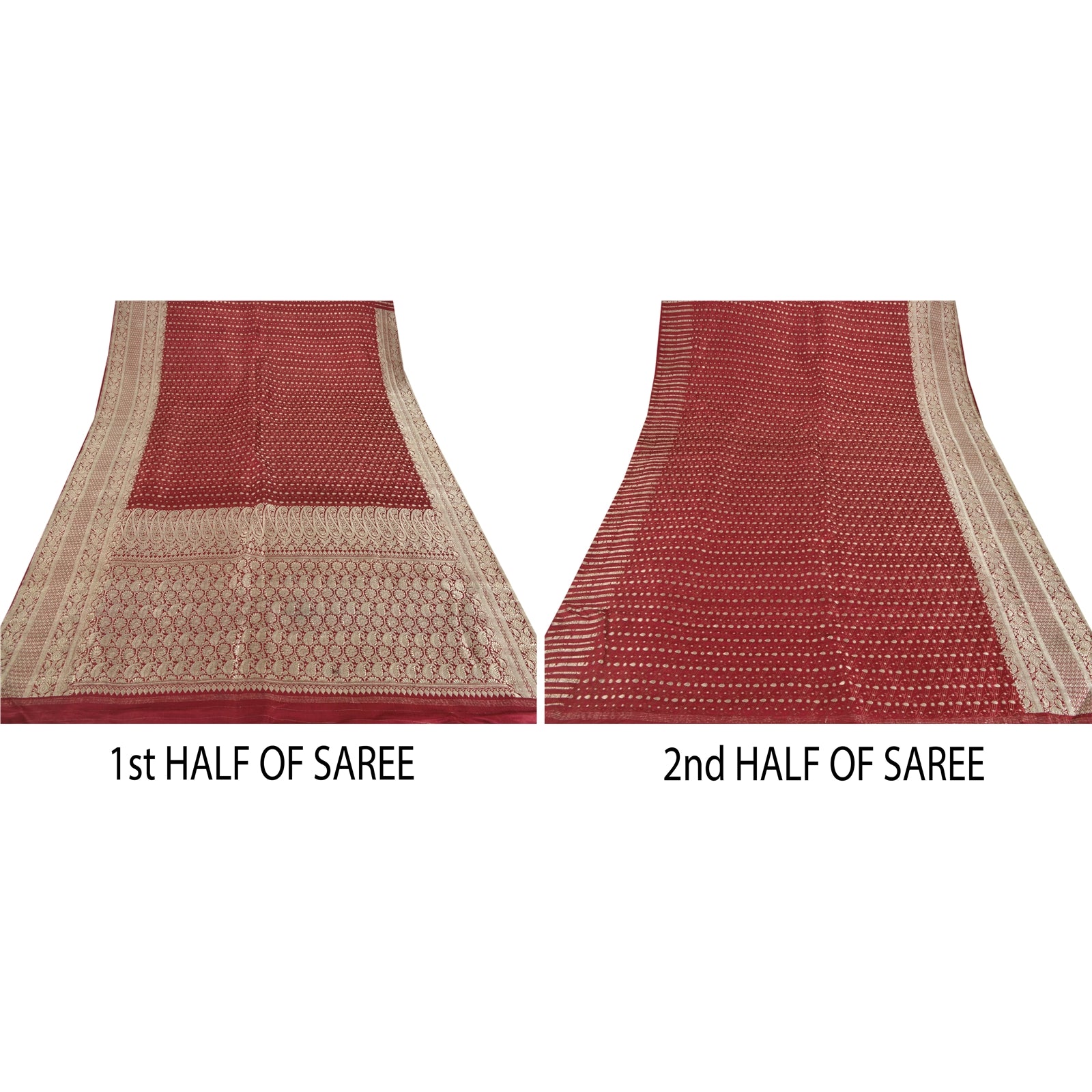 Sanskriti Vintage Red Heavy Saree Pure Satin Silk Banarasi Brocade Sustainable Fabric Sari