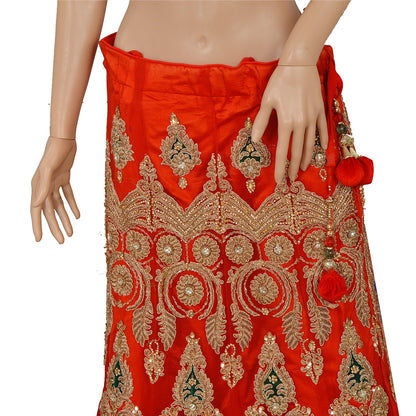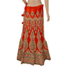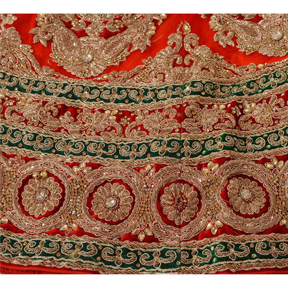 Sanskriti Vintage Red Long Skirt Net Mesh Hand Beaded Ethnic Stitched Lehenga