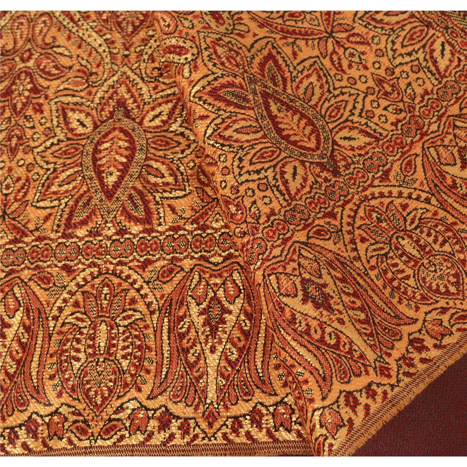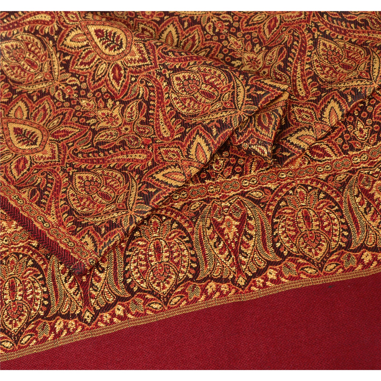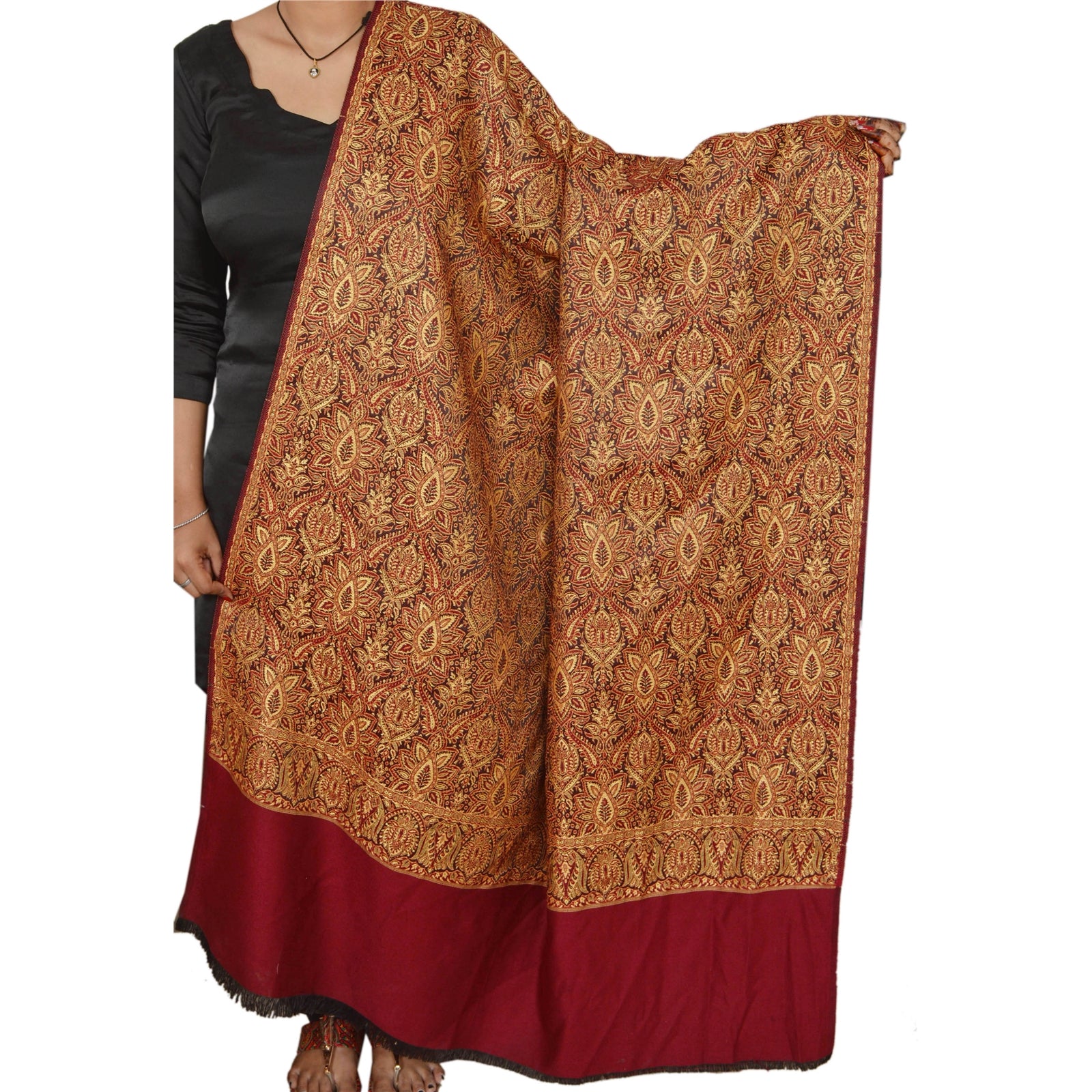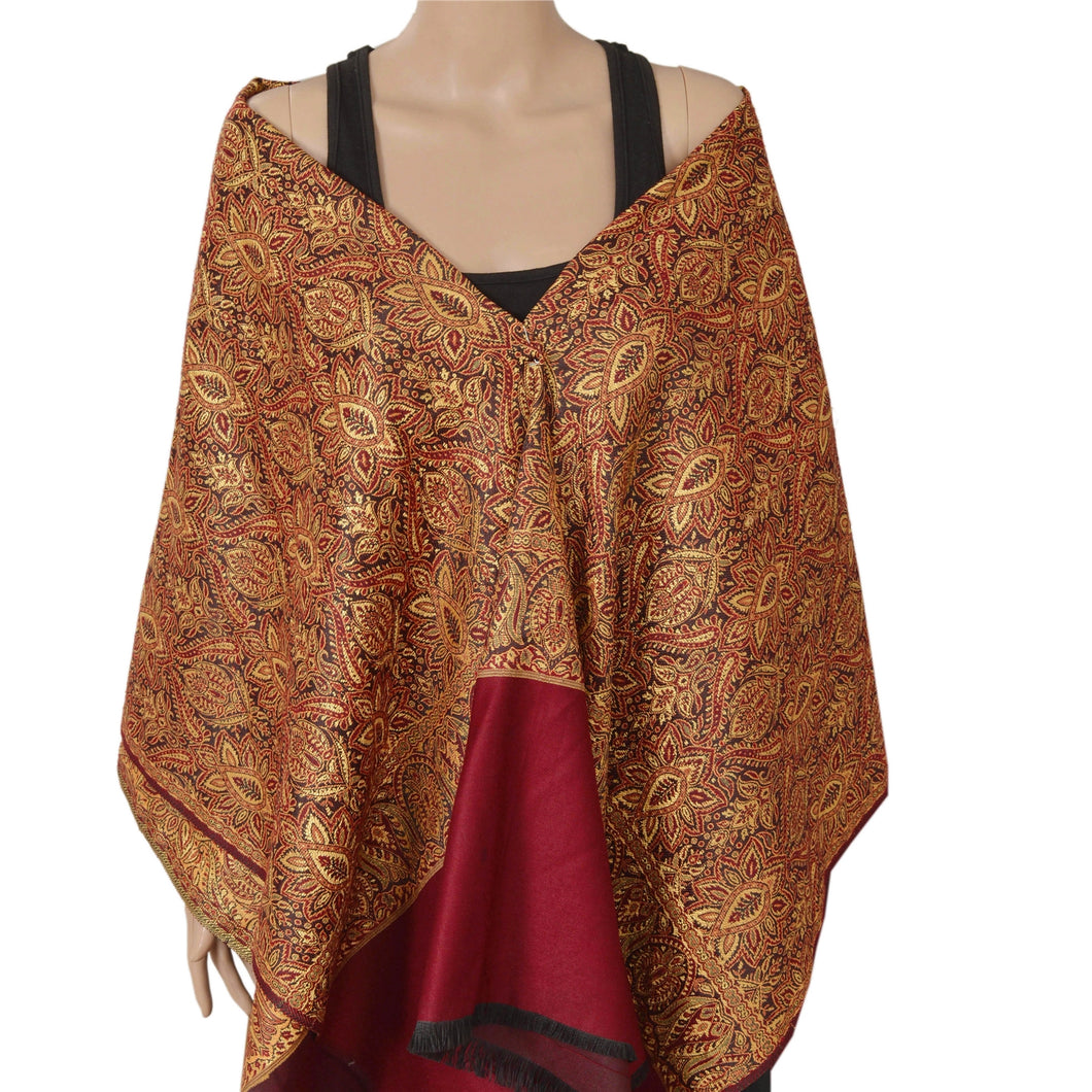 We are offering you a vintage red colored woolen stole which adorns with woven work. The shawl or stole features floral design with vibrant yellow color threads. This cozy, warm and fuzzy stole is soft against skin due to the mellow woolen Sustainable Fabric. A truly gorgeous piece which will also make an admirable gift.