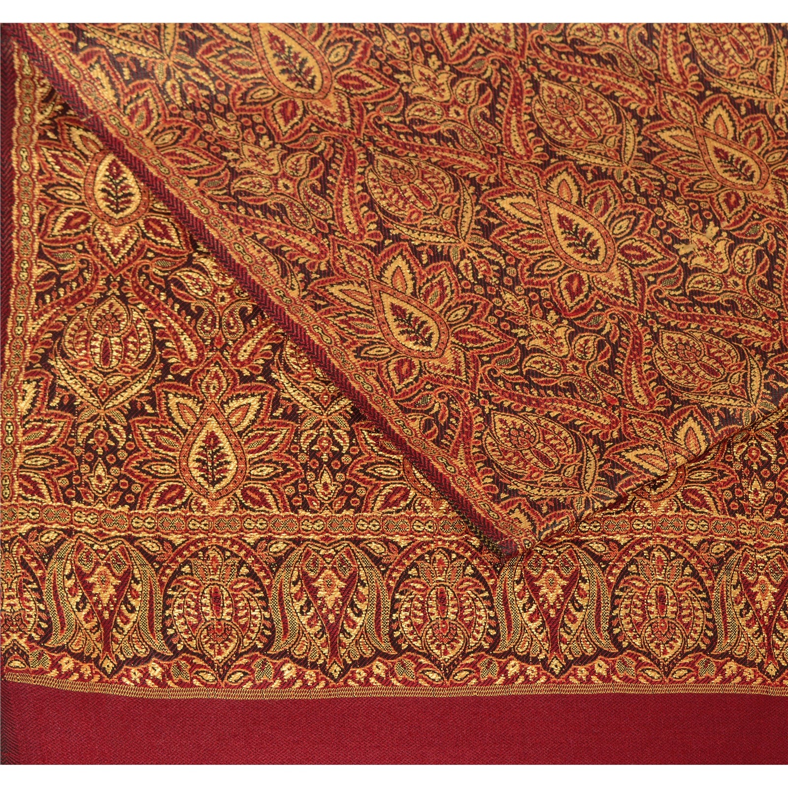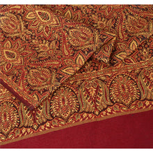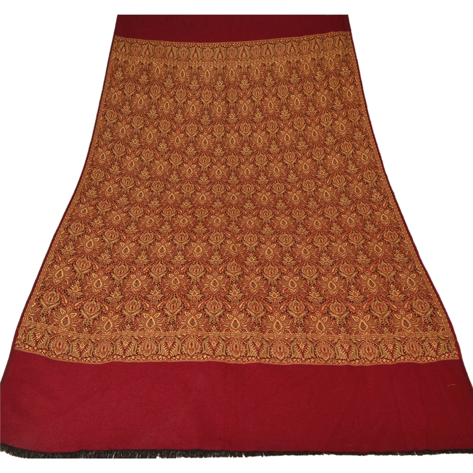Sanskriti Vintage Red Woolen Shawl Woven Work Long Stole Soft Scarf Floral