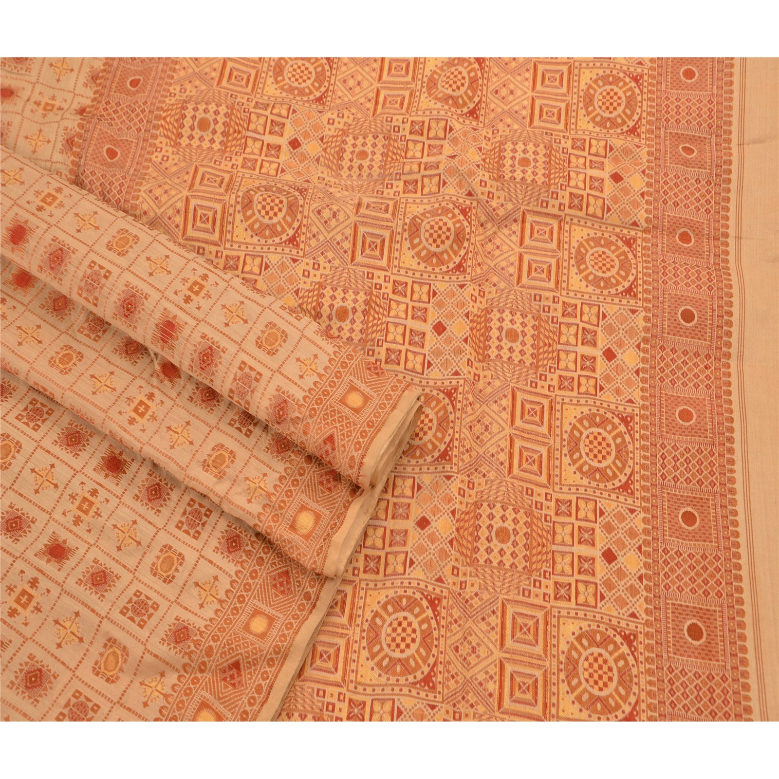 Sanskriti Vintage Antique Indian Saree 100% Pure Silk Woven Sustainable Fabric Premium Sari