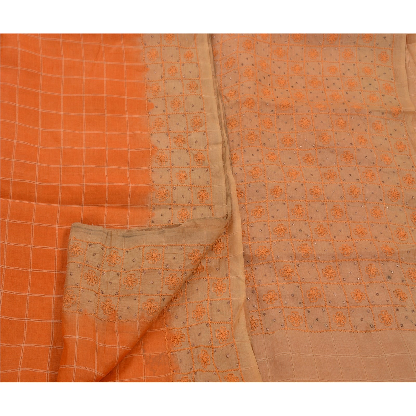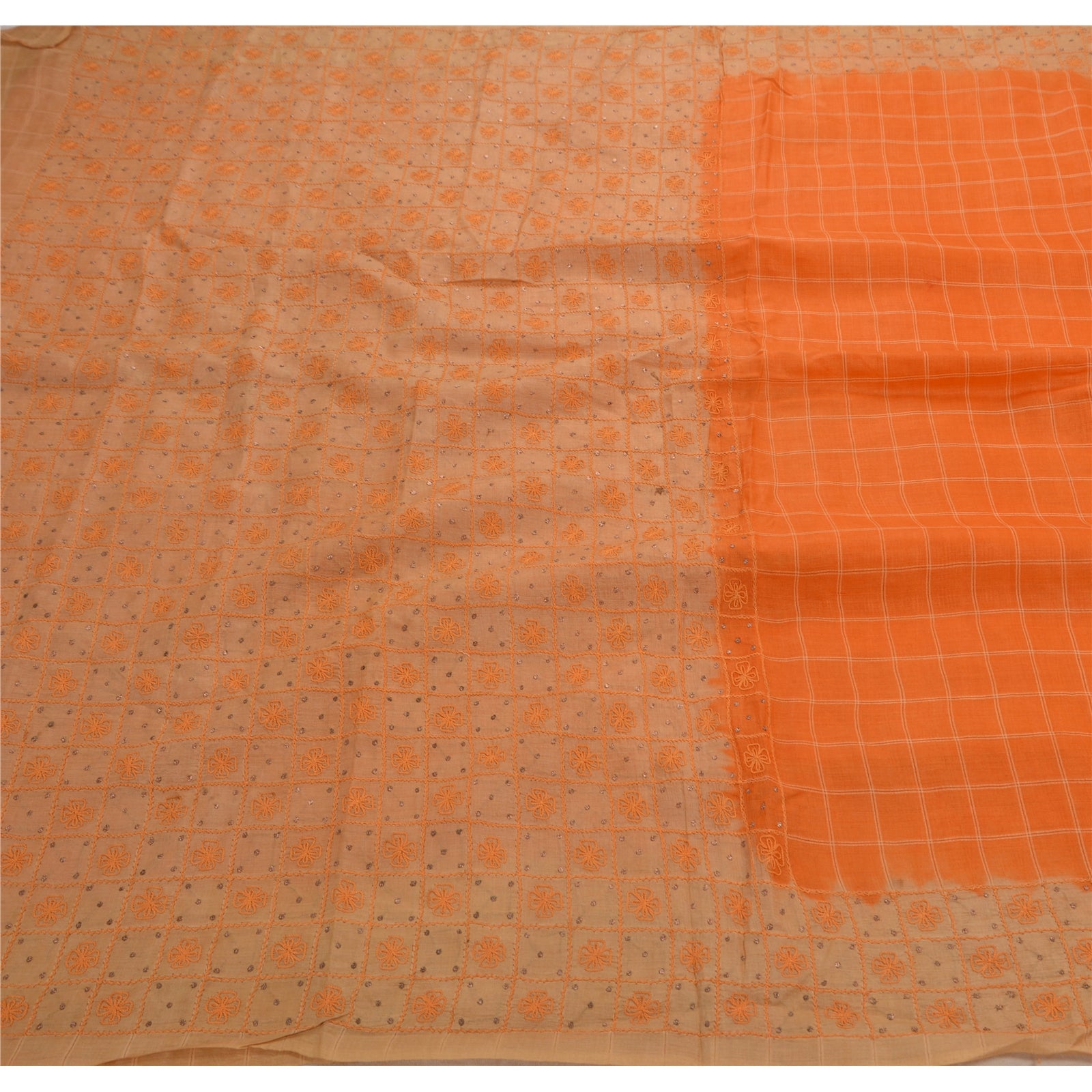 ? Beautiful orange & peach colored hand embroidered pure silk sari ? Pallu & Border features floral design embellished with peach thread work and gold zari work. What is special about this saree? Nice peach & orange color contrast with floral design on pure silk base Sustainable Fabric is really enhancing the beauty of the saree. This unique vintage saree can be used for various crafting ideas even if you don't want to use it as a sari. Design a dress, use it as a throw, as window dressing, upholstery, sarongs, table linen and much more. Let your creative juices flow and use this decorated Sustainable Fabric in multiple fashion.