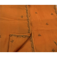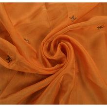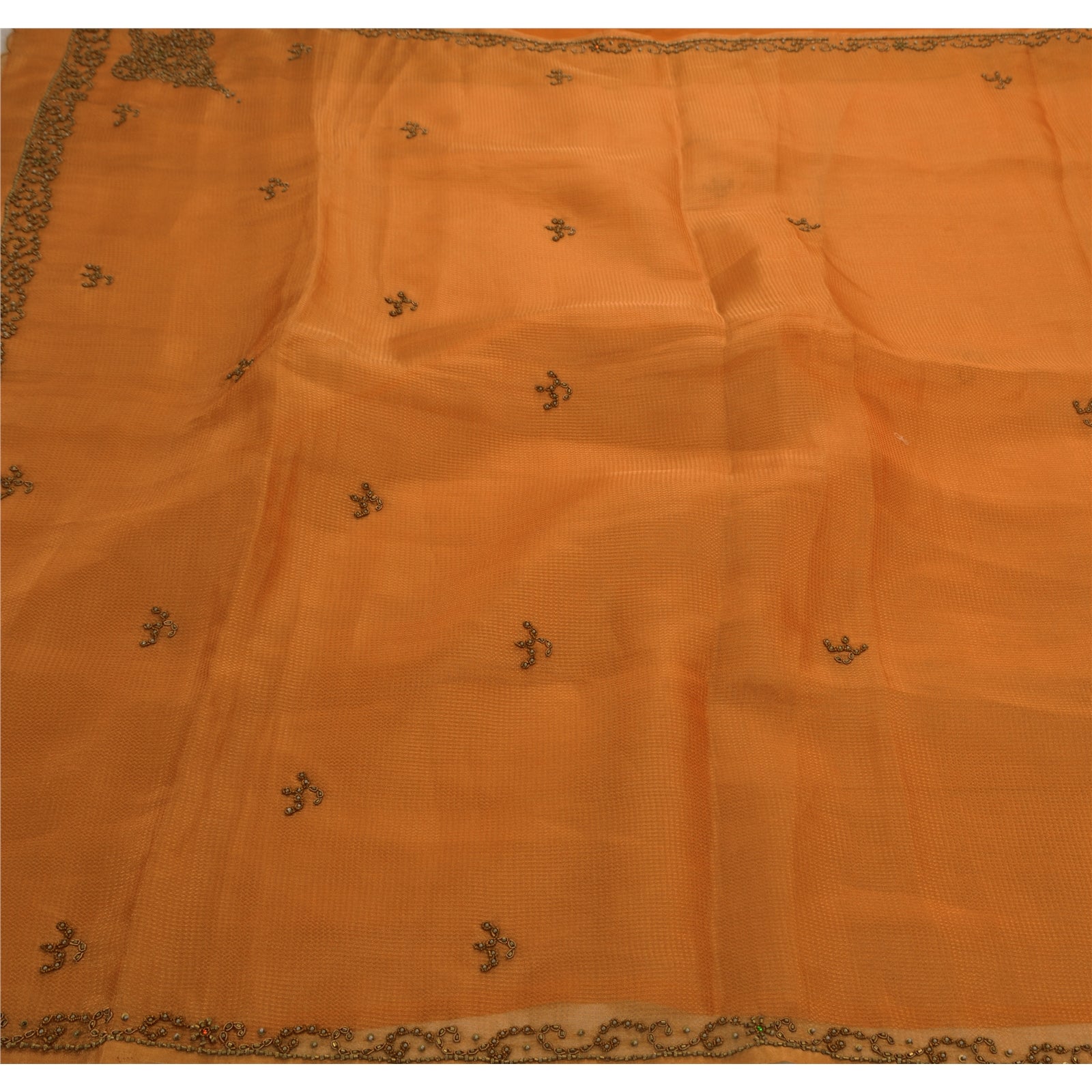? Beautiful orange colored hand embroidered art silk sari ? Pallu & Border features floral design embellished with copper zardozi/dabka work, gold sequins/beads and red/green kundan work. ? There are floral motifs with similar work in center part of sari. What is special about this saree? Awesome copper zardozi & dabka work with golden beads on orange color base Sustainable Fabric is really enhancing the beauty of the saree. This unique vintage saree can be used for various crafting ideas even if you don't want to use it as a sari. Design a dress, use it as a throw, as window dressing, upholstery, sarongs, table linen and much more. Let your creative juices flow and use this decorated Sustainable Fabric in multiple fashion.