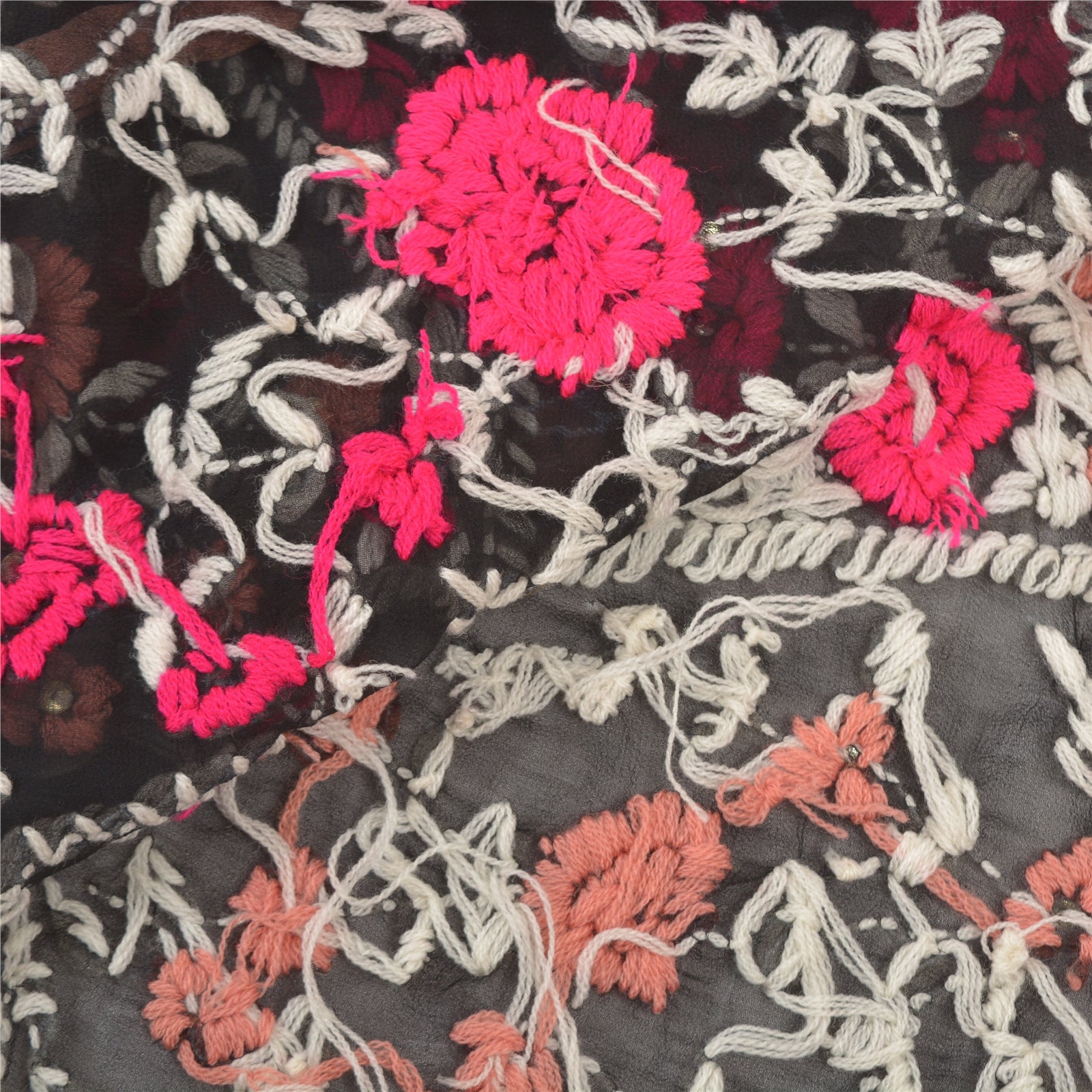 We Are Offering A Hand Embroidered Phulkari Work Georgette Sustainable Fabric Heavy Dupatta On Black Base It Has Beautiful Floral & Paisley Designs With Multi Color Wool Thread Work And Silver Sequins Work Adding Lovely Effect. You Can See Pink Sustainable Fabric Patch Work On Borders Is Further Enhancing The Beauty Of The Dupatta. You Can Pair This Heavy Dupatta With Any Kind Of Plain Dress To Glam Up The Beauty In You. Phulkari Is A Dreamweaver For Every Punjabi Girl. Phulkari Means �Flower Work�, It Has A History Etched In The Culture Of Punjab. The Main Characteristics Of This Embroidery Are The Use Of Darn Stitch On The Wrong Side Of Cloth With Colored Silken And Wool Thread.