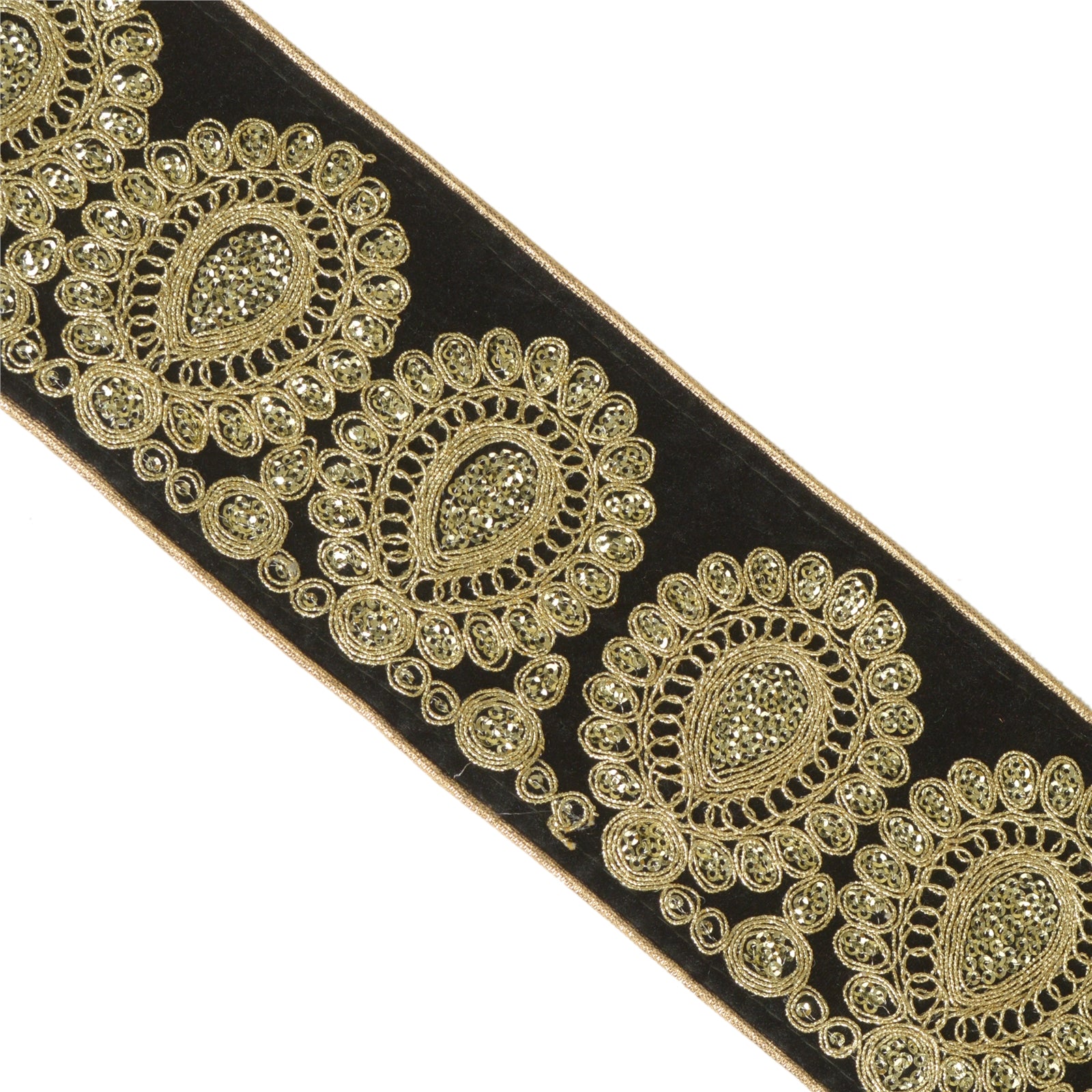 Extremely beautiful velvet embroidered lace . Further embellished by gold dori work . Also you can see gold sequins work along with floral design on black base Sustainable Fabric. 1 quantity = 2 yard. 'International buyers please note: Import duties, taxes, and charges are not included in the item price or postage cost. These charges are the buyer's responsibility. Please check with your country's customs office to determine what these additional costs will be prior to bidding or buying. Buyer will pay custom duty/tax. It is calculated and charged differently by every country. As a seller I do not have any control over it. VAT or sales tax is calculated by the platform at the time of checkout. Customs charge is payable at the time of delivery.'