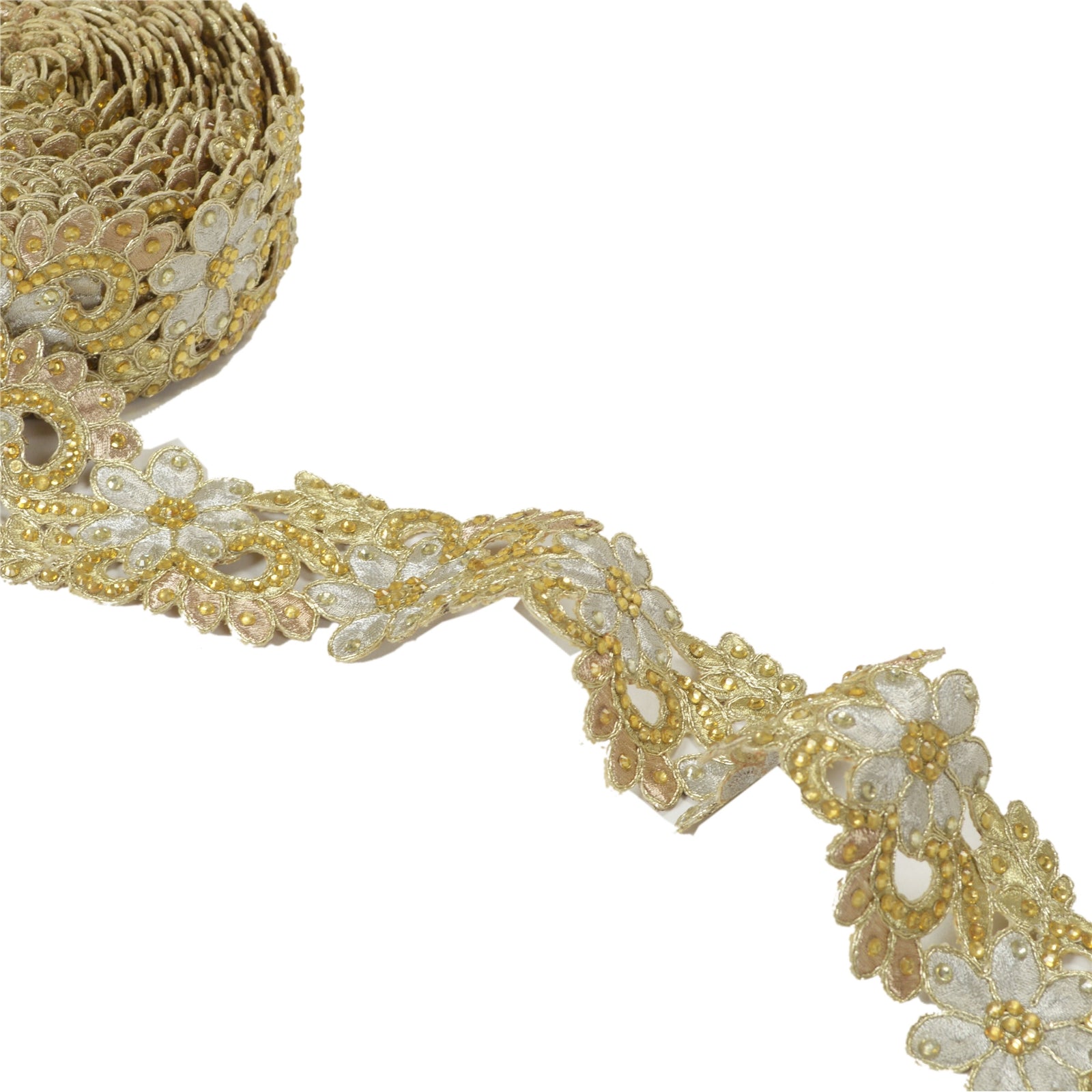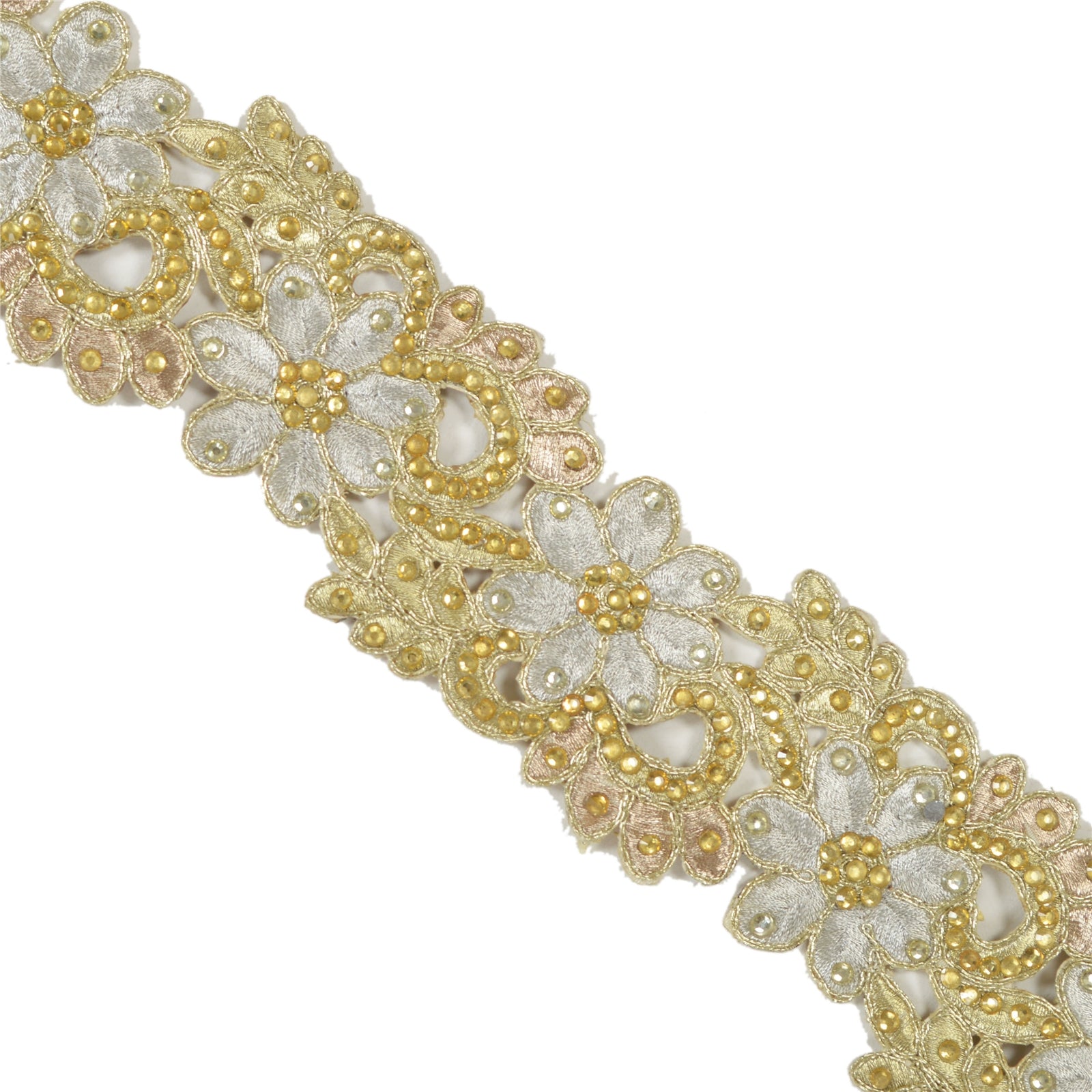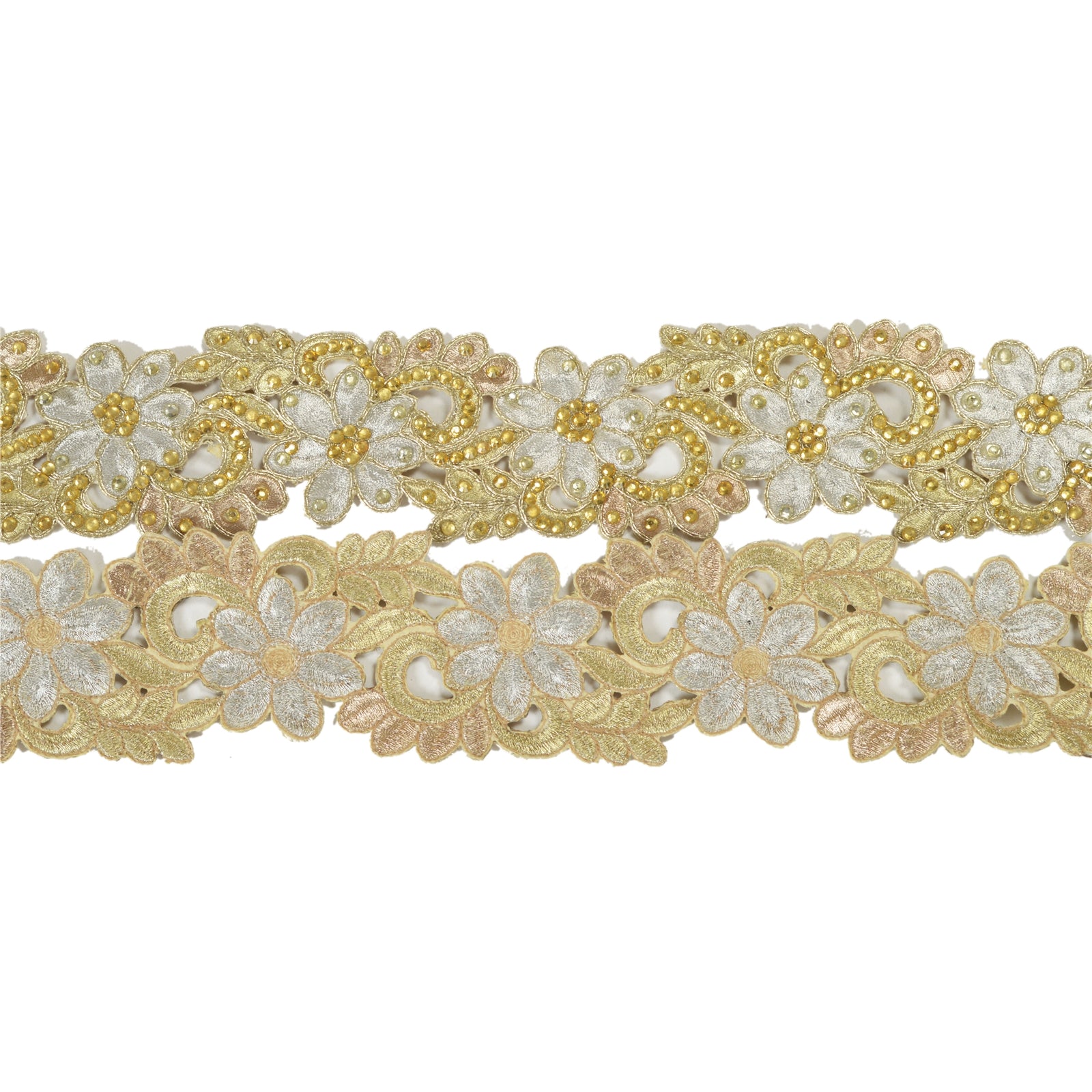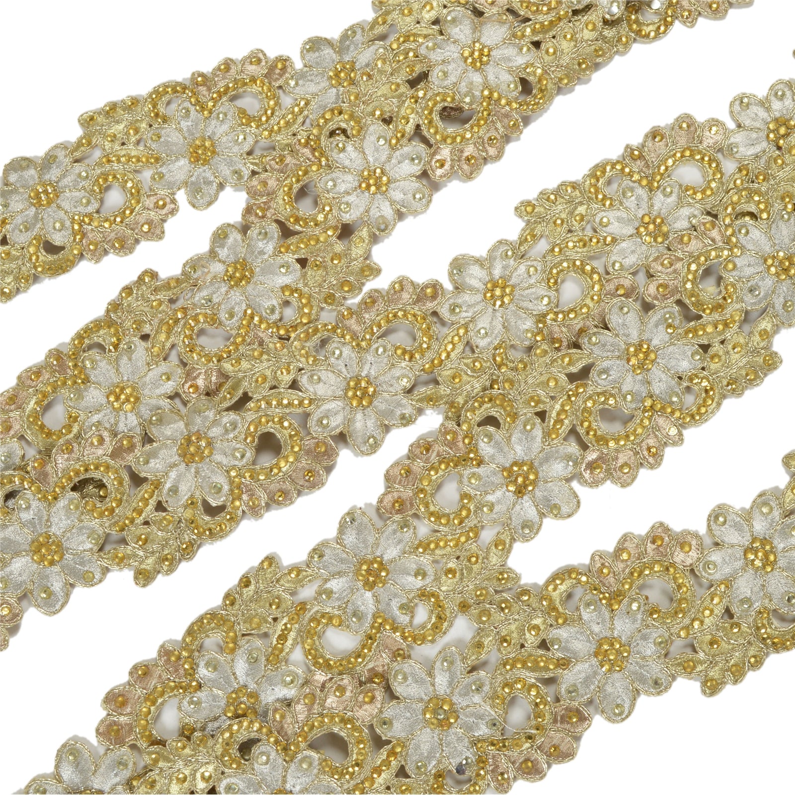 Sanskriti Hand Beaded Dress Bridal Border 1 YD Trim Ribbon Silver Craft Lace