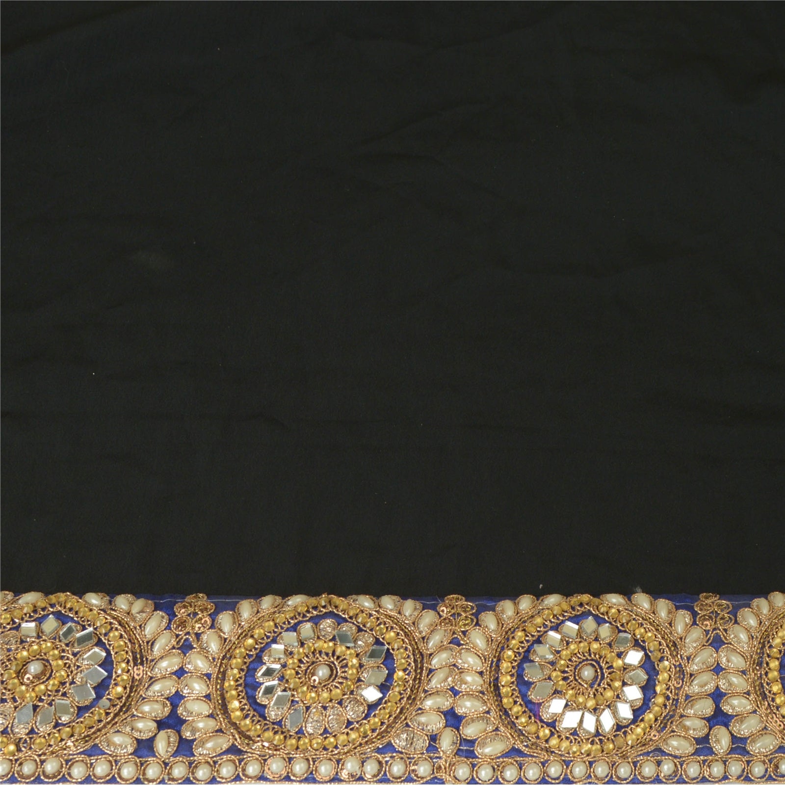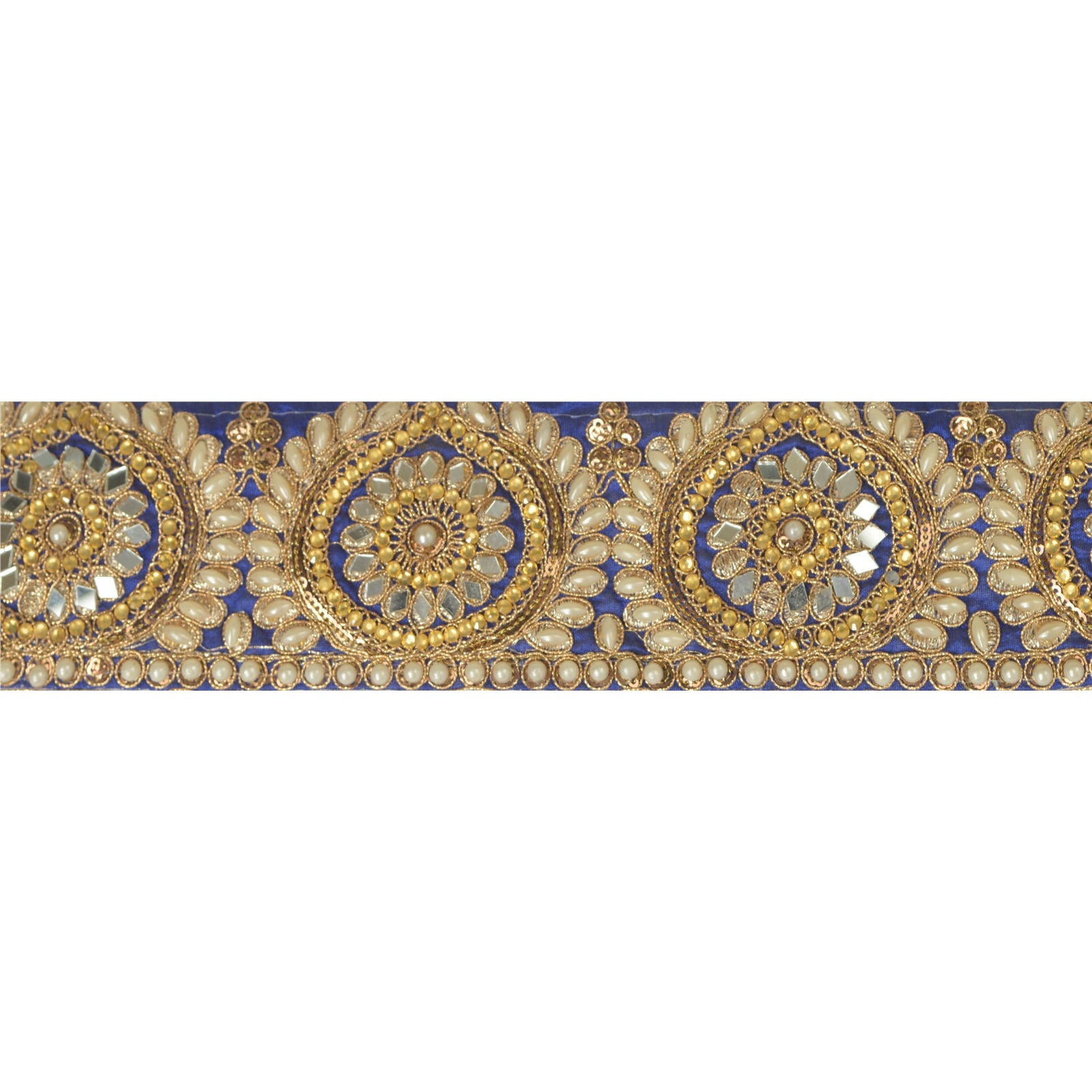 Sanskriti Hand Beaded Party Prom Dress Border 1YD Trim Blue Craft Lace Mirrors