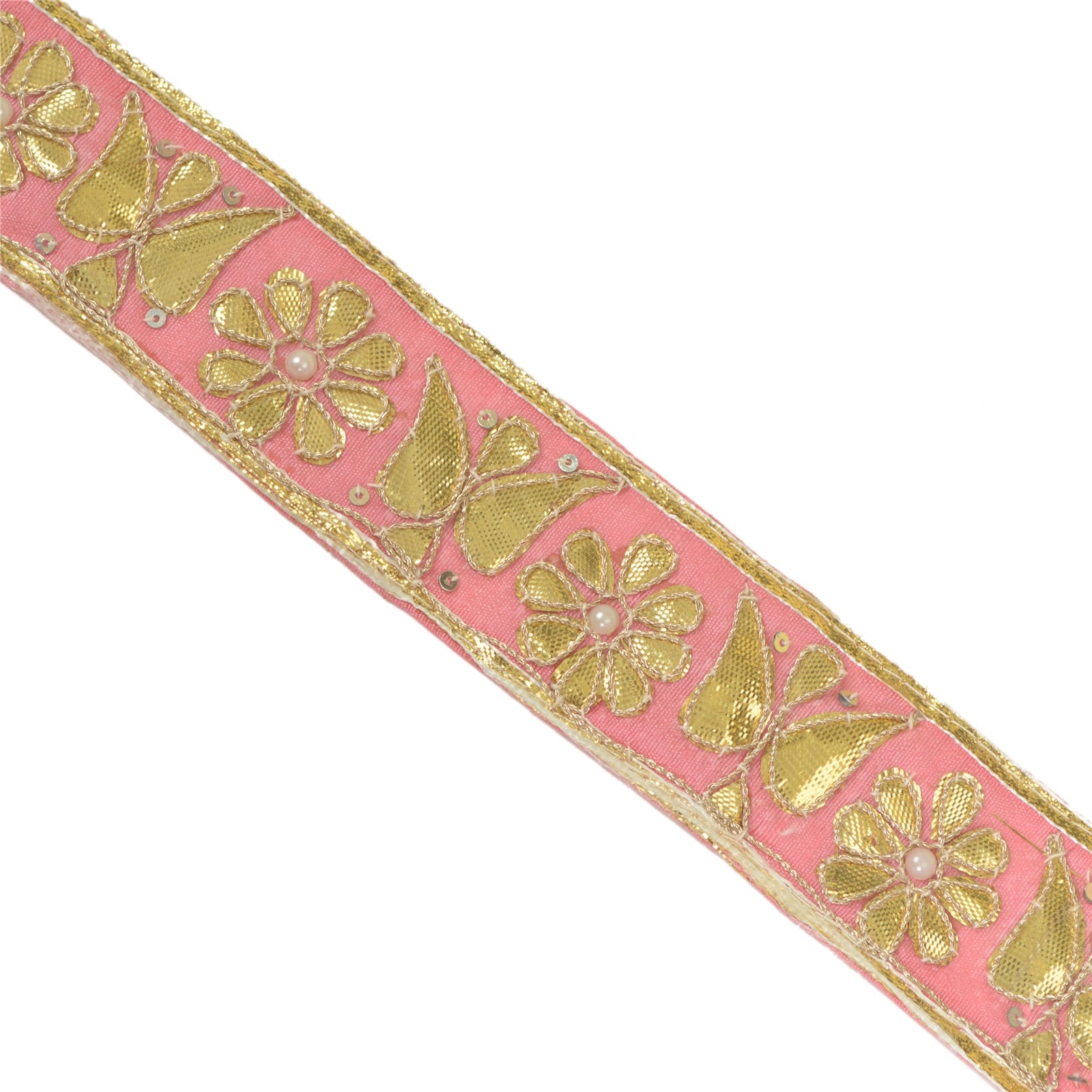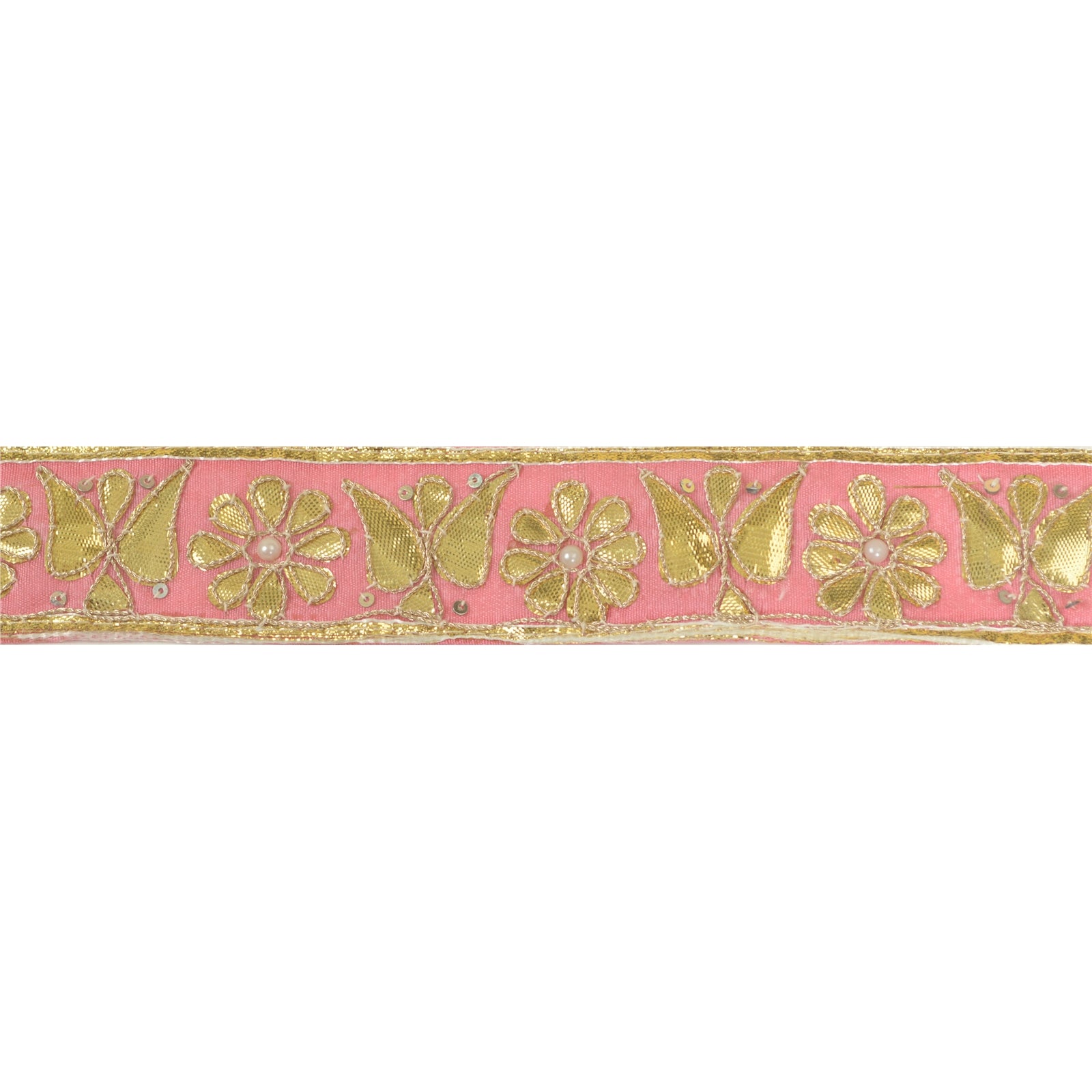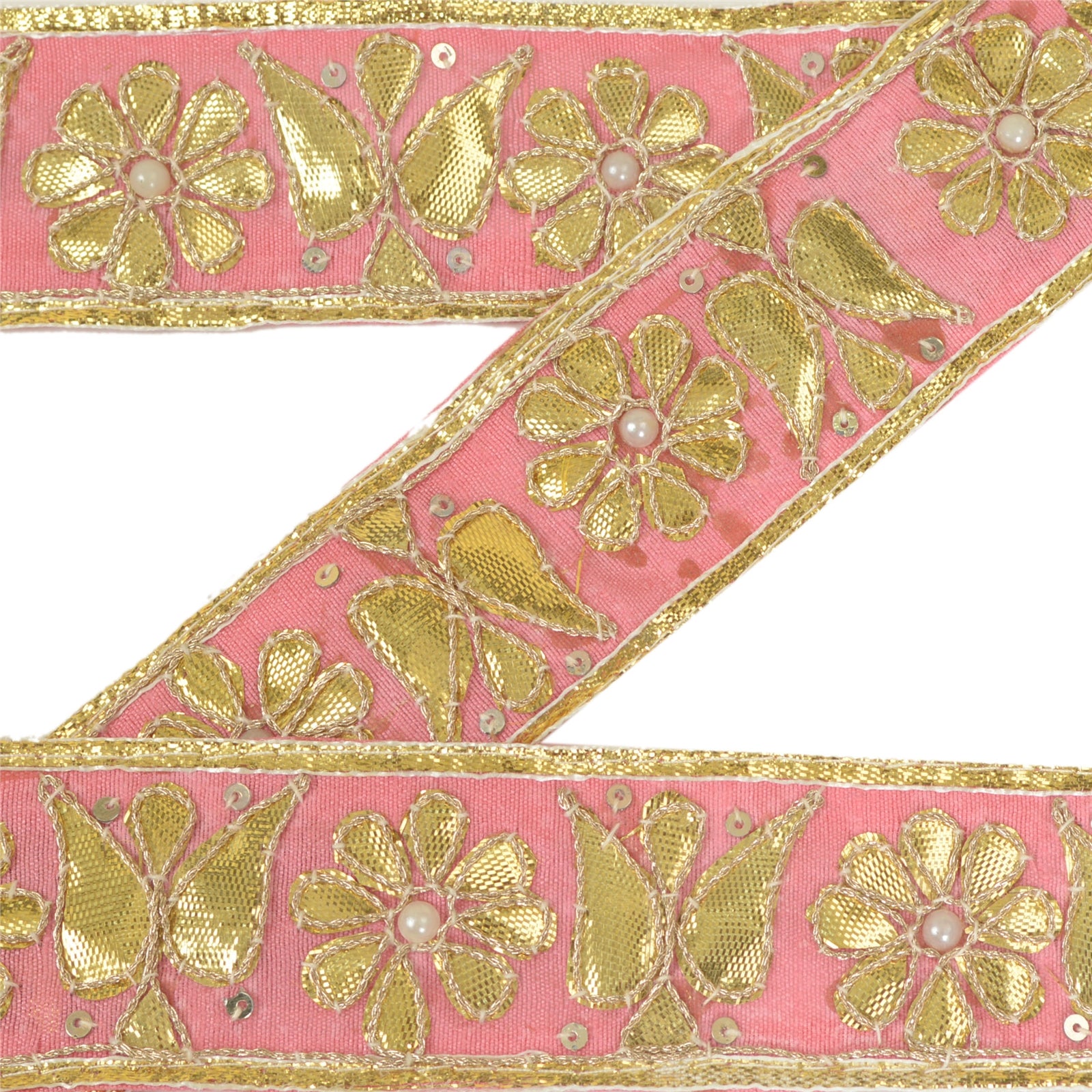 Sanskriti Hand Beaded Prom Dress Border 1 YD Trim Pink Craft Gota Patti Lace