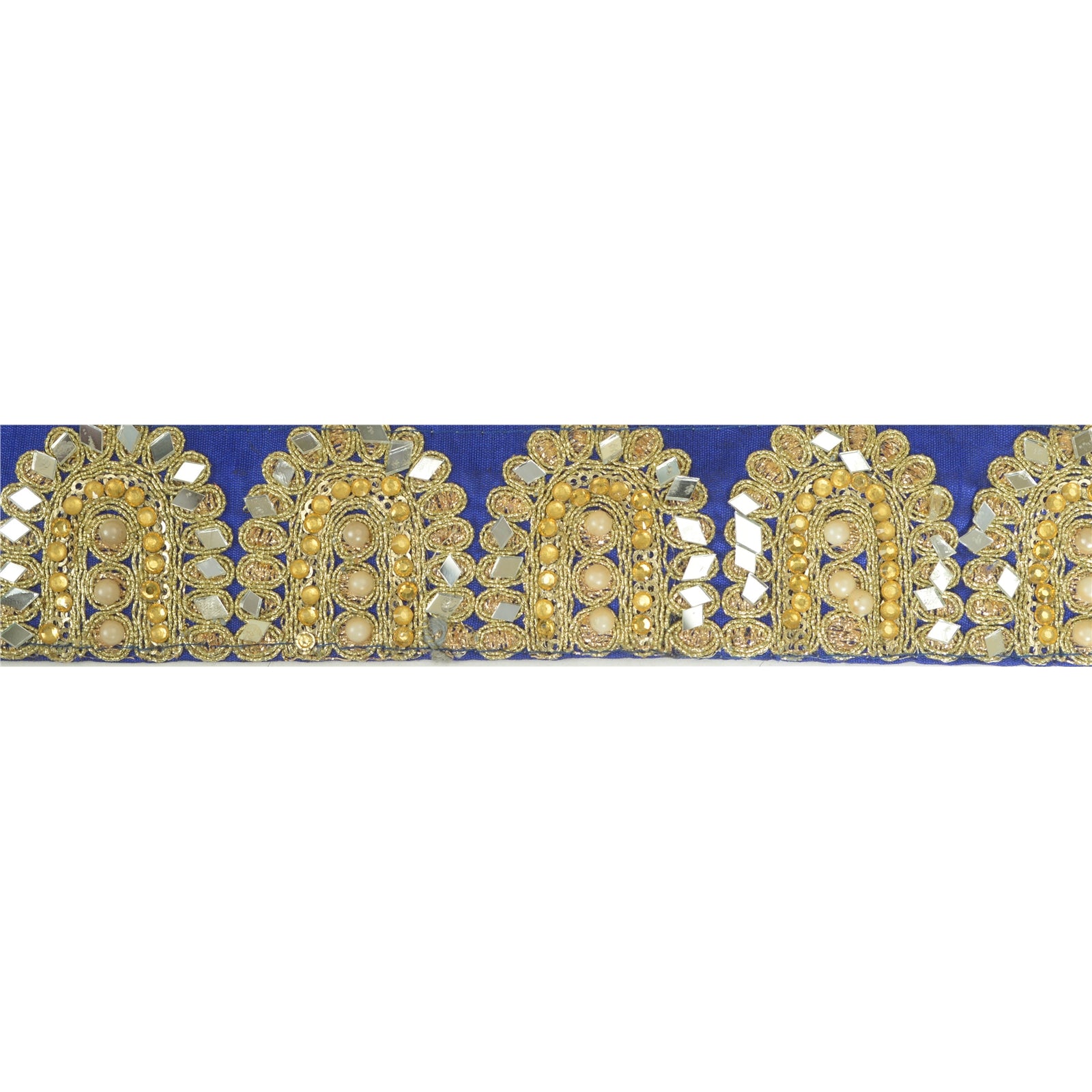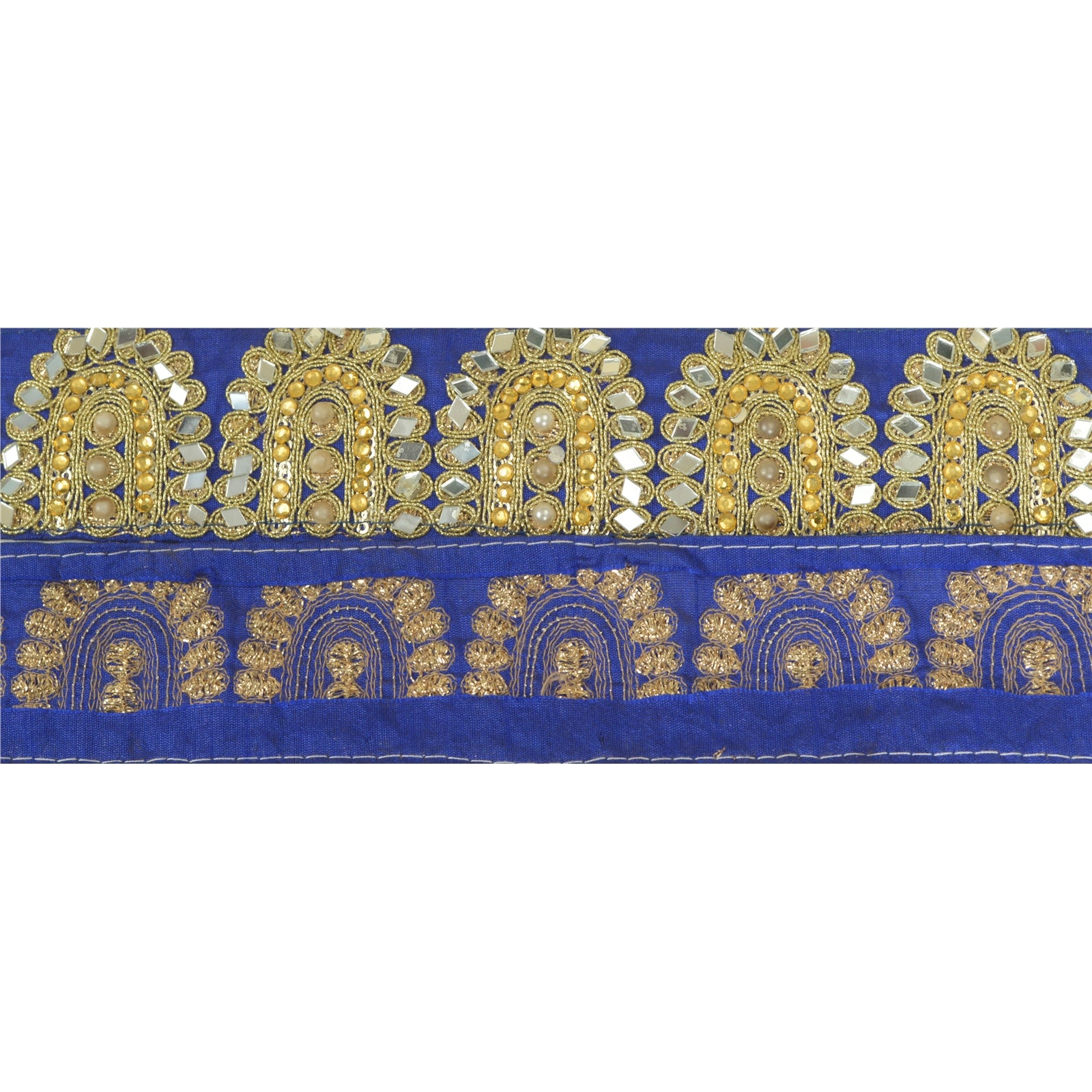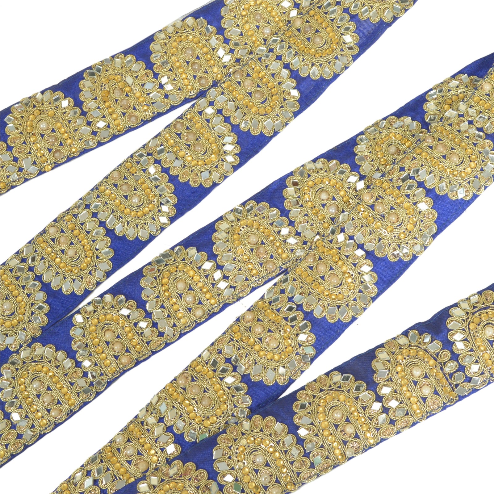 Sanskriti Hand Beaded Prom Dress Border 1 YD Trim Purple Craft Lace Mirror Work
