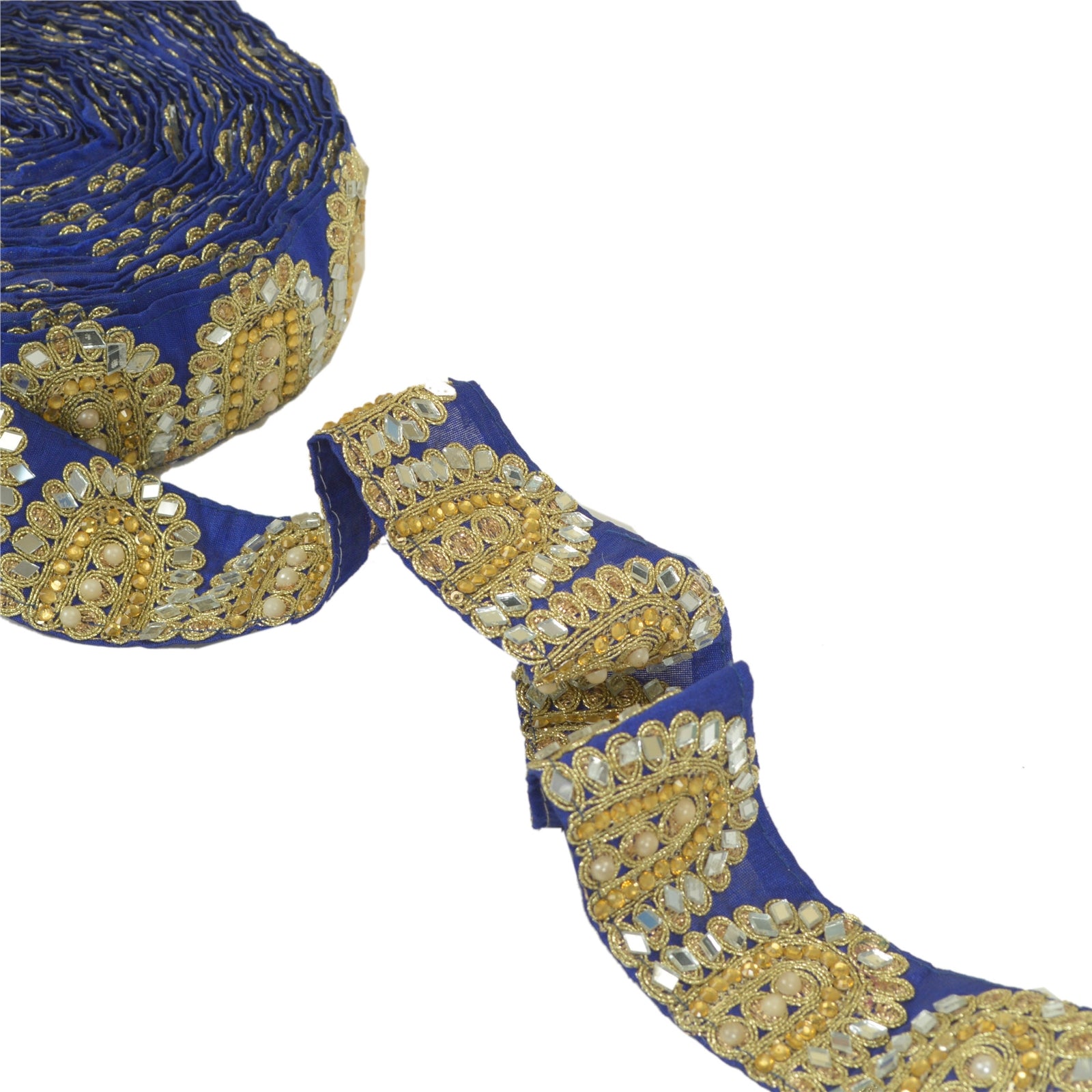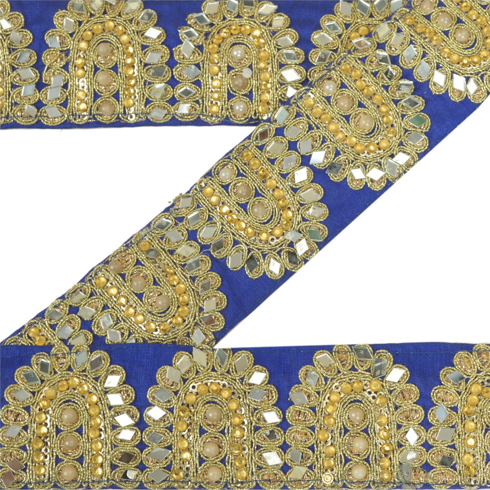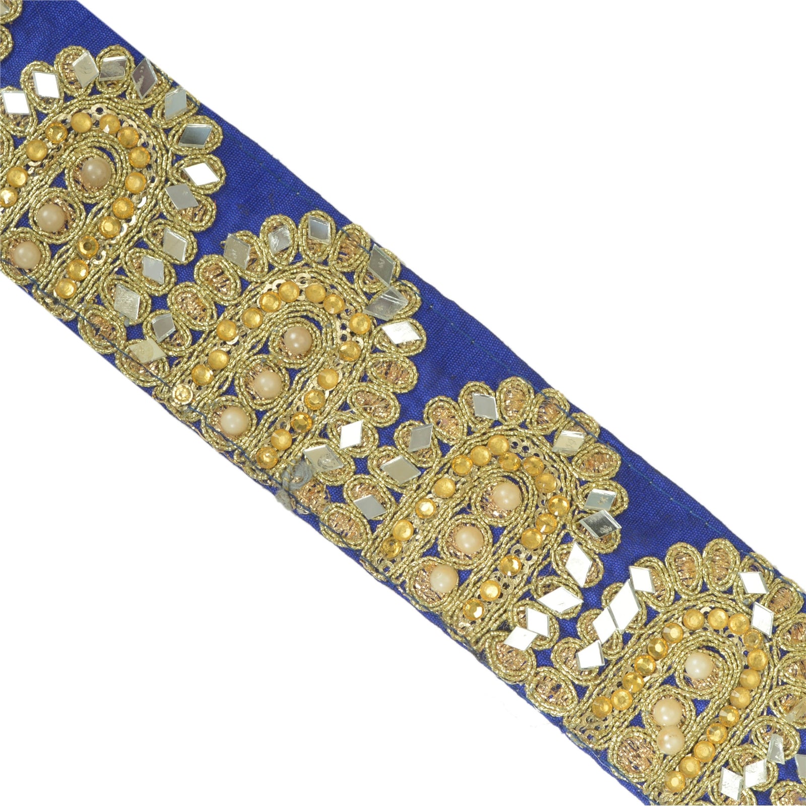 Sanskriti Hand Beaded Prom Dress Border 1 YD Trim Purple Craft Lace Mirror Work