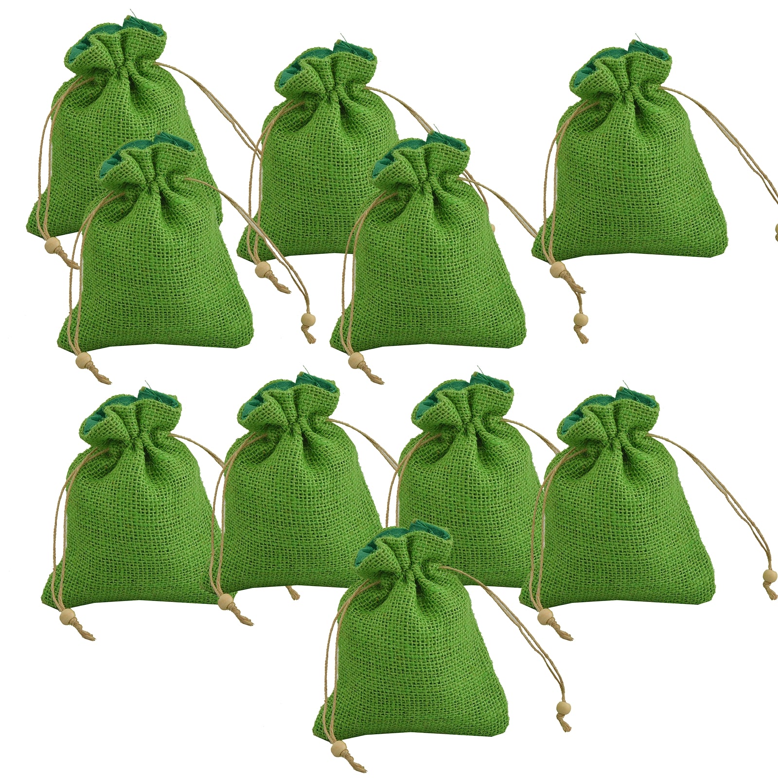 Sanskriti Vintage Indian Jute Bags 10 Combo Wedding Gift Pouch/Potli Green Drawstrings