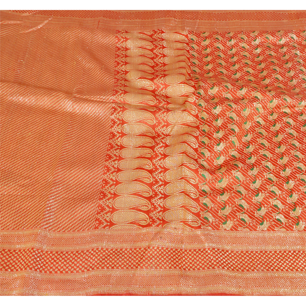 Sanskriti Vintage Peach Saree Art Silk woven Sustainable Fabric Craft Premium Sari