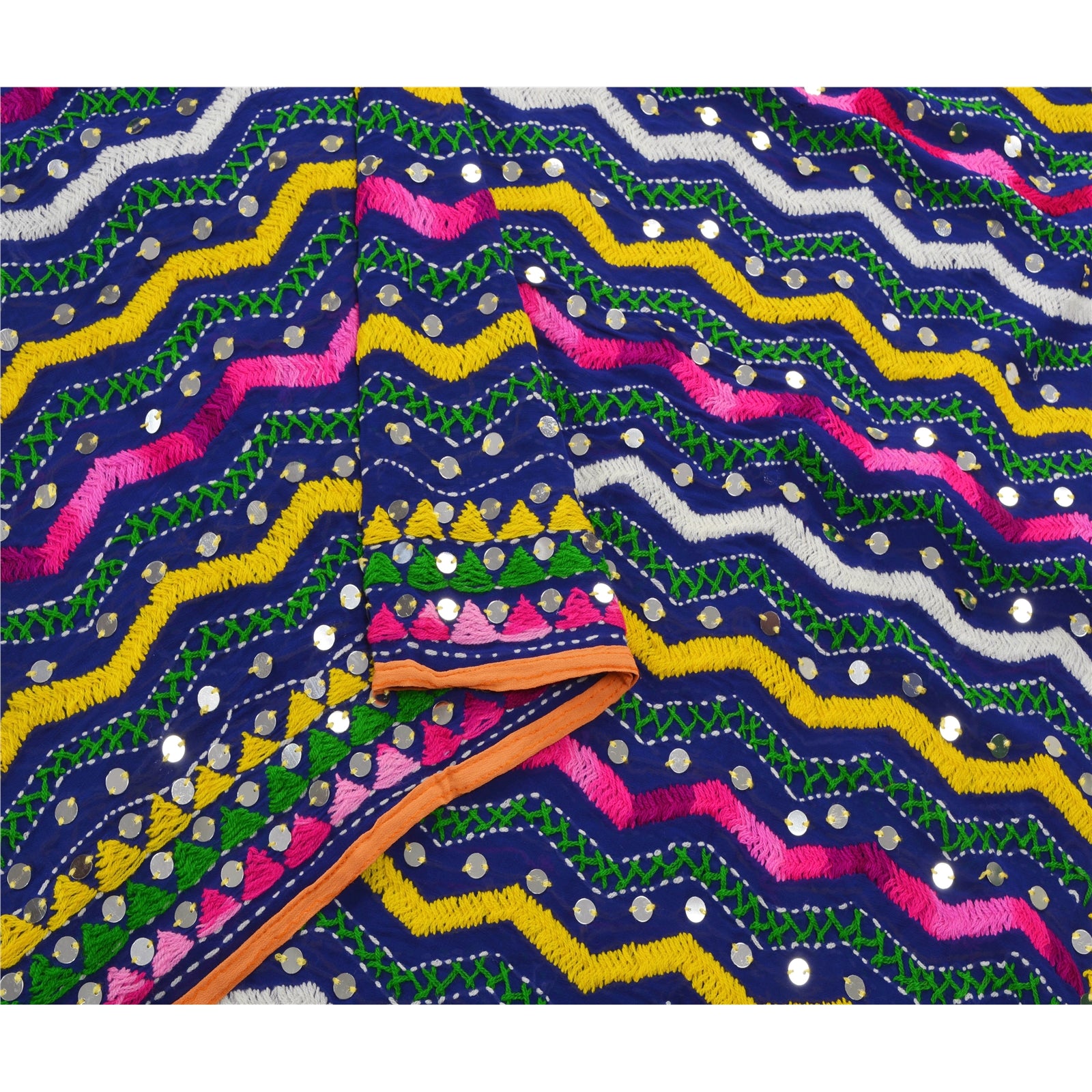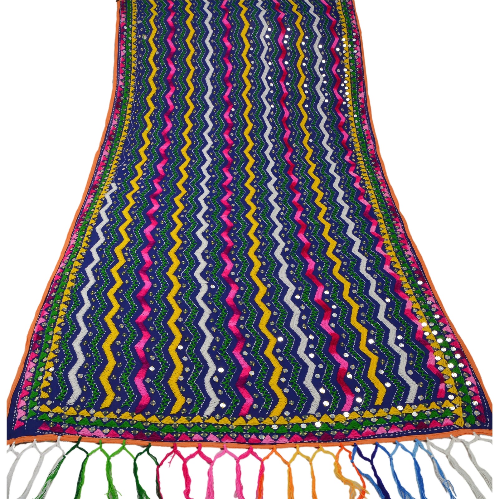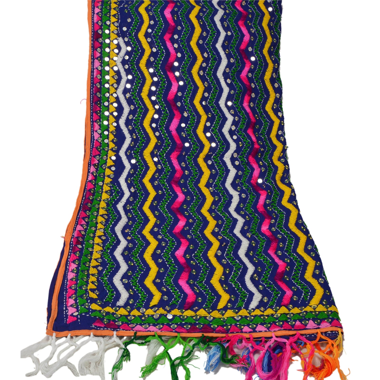 We Are Offering A Blue Colored Hand Embroidered Phulkari Work Georgette Sustainable Fabric Heavy Dupatta . It Has Beautiful Floral Designs With Multi Color Wool Thread And Silver Sequins Work Is Adding A Twinkling Star Effect. You Can See Multi Color Fringes On Both Ends Of Border Is Further Enhancing The Beauty Of The Dupatta. You Can Pair This Heavy Dupatta With Any Kind Of Plain Dress To Glam Up The Beauty In You. Phulkari Is A Dream Weaver For Every Punjabi Girl. Phulkari Means ‘Flower Work’, It Has A History Etched In The Culture Of Punjab. The Main Characteristics Of This Embroidery Are The Use Of Darn Stitch On The Wrong Side Of Cloth With Colored Silken And Wool Thread.