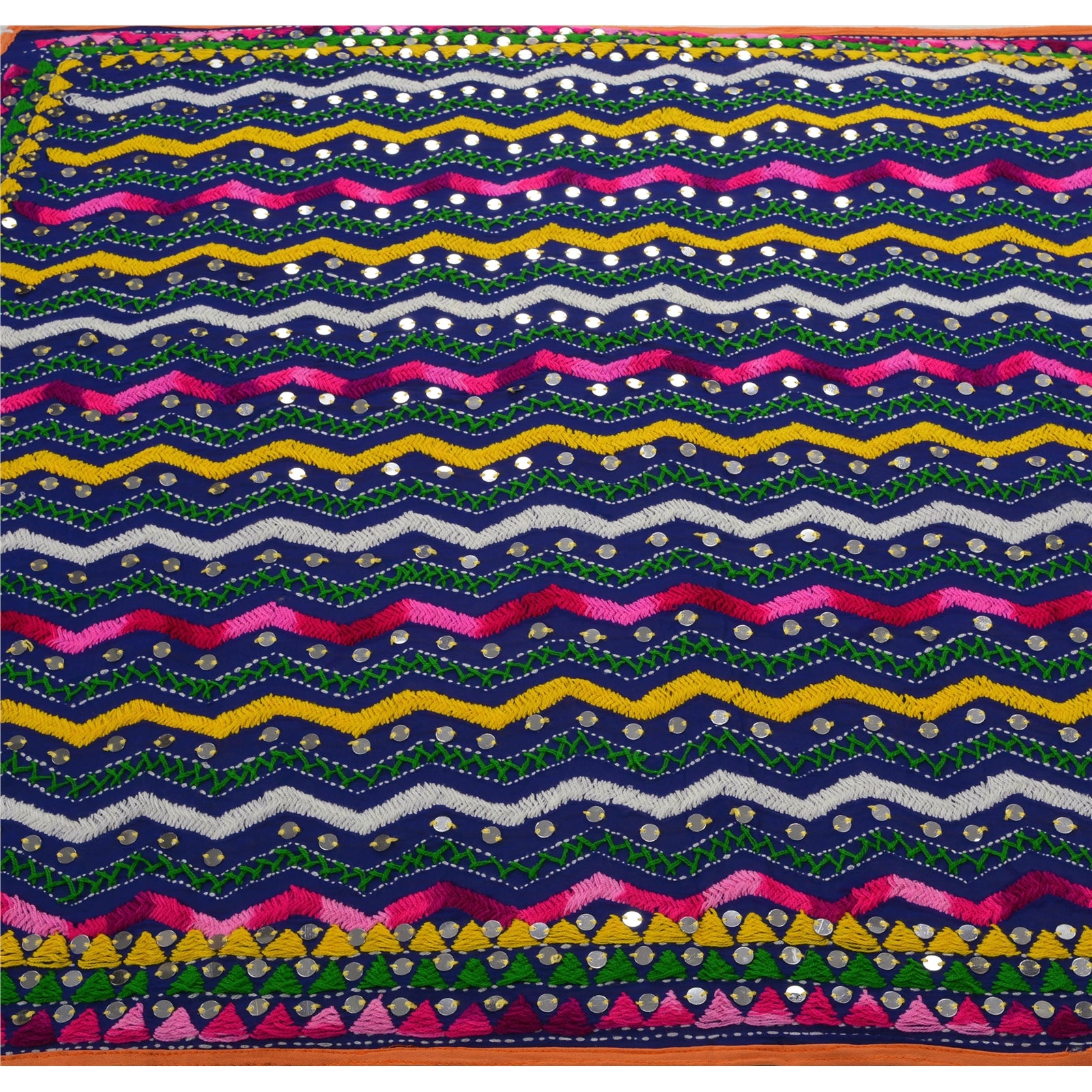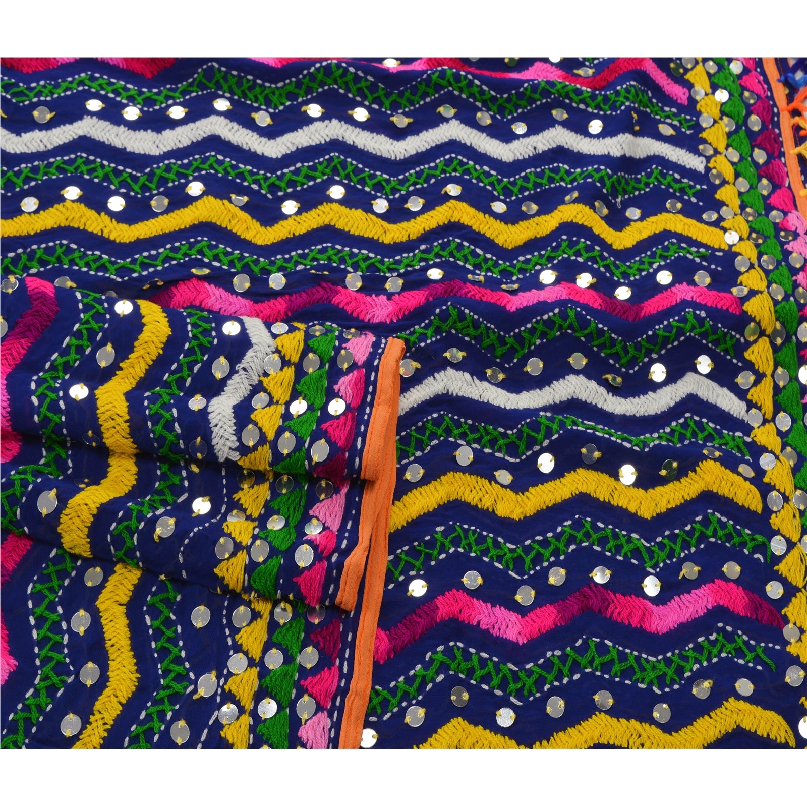 Sanskriti Vintage New Blue Heavy Dupatta Georgette OOAK Hand Embroidered Phulkari Stole