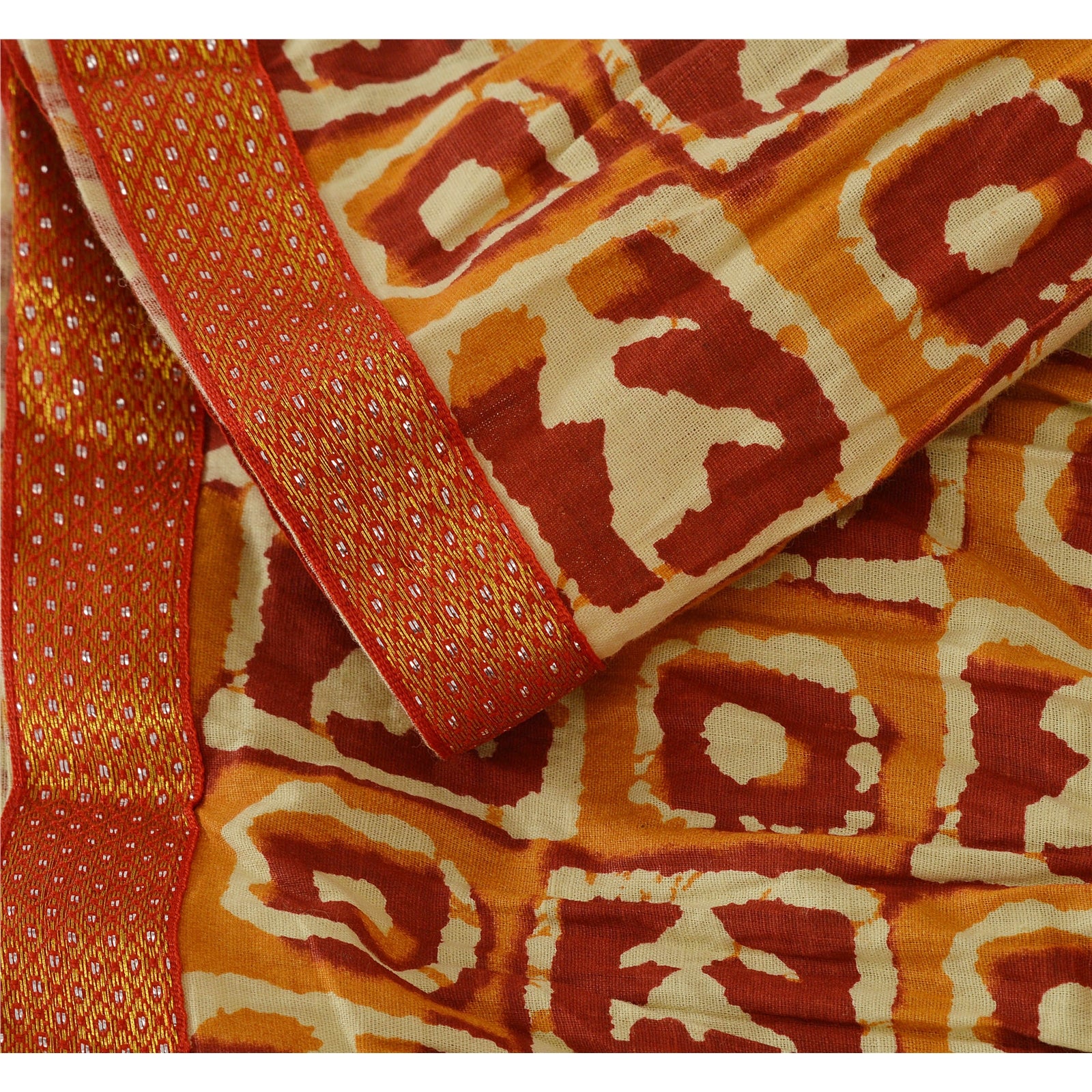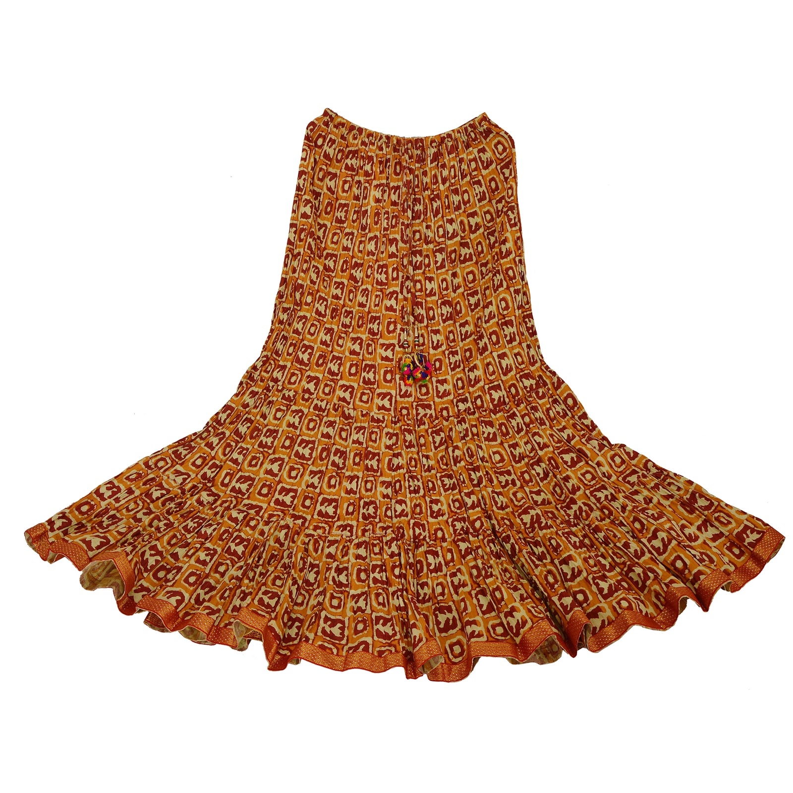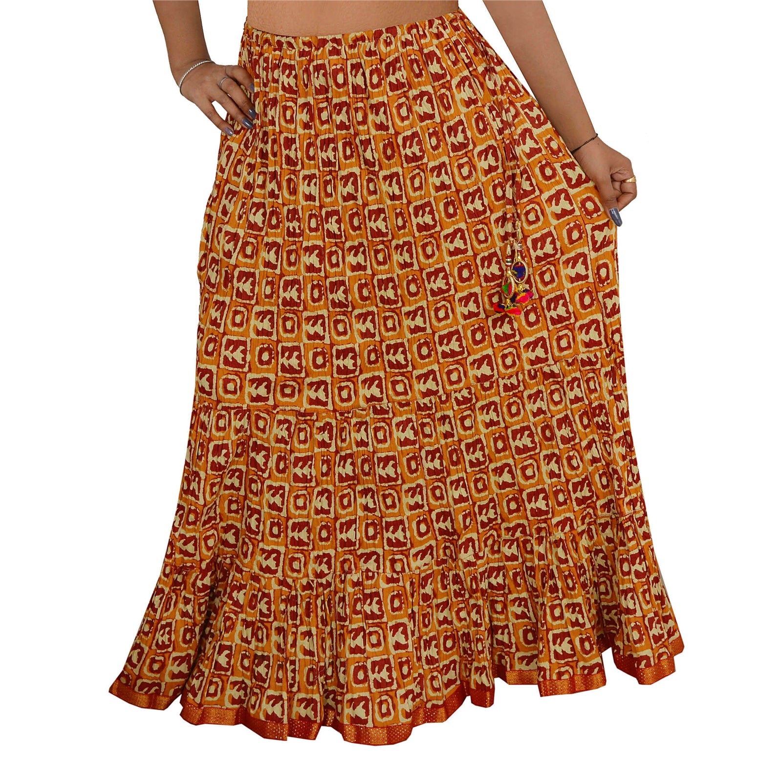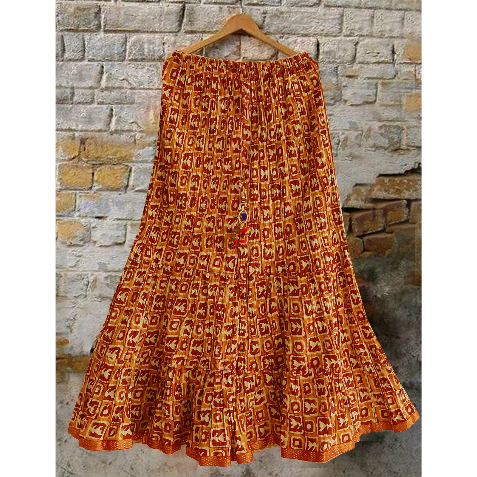 Sanskriti New Long Skirt Women Cotton Brown Printed Design with Zari Border