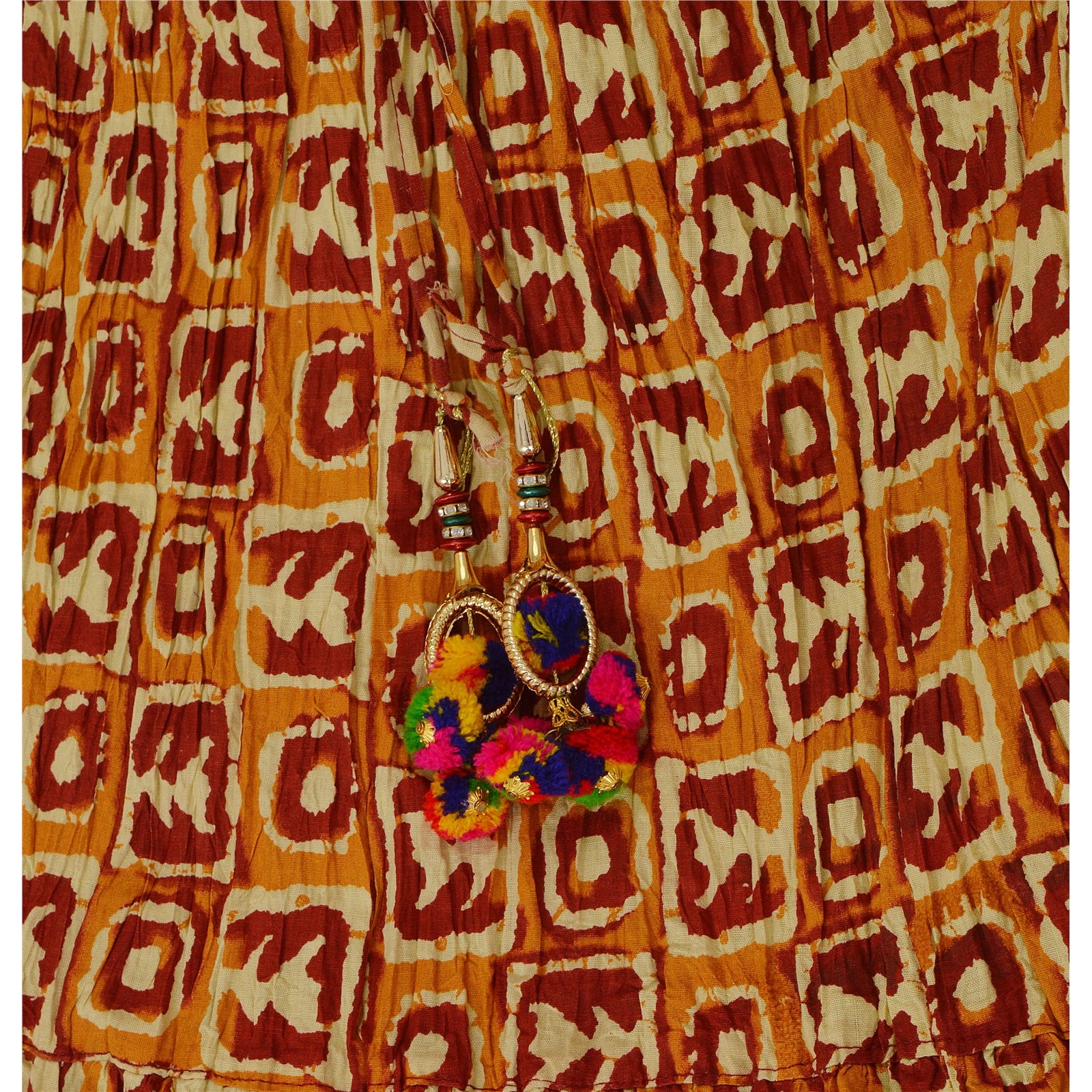 STYLE- This beautiful brown Color colored cotton long skirt from Sanskriti will make you fall in love with it! HIGHLIGHTS- The long skirt has a lovely floral figure printed design with a contrasting golden zari the border. It also has an elastic waistband that can stretch from 28-42 inches. There is an drawstring with pom-pom on the waist to adjust according the size. MEASUREMENTS- The length of this skirt is 38 inches and it has a flare of 100 inches. PAIR IT- Wear it with your crop top or a kurti with some chunky jewelry to create different looks. It can easily be mixed and matched with your whole wardrobe. MADE TO LAST- Whether it’s a get together with friends or just lounging around the house... this skirt is made with premium quality cotton and is designed to last.
