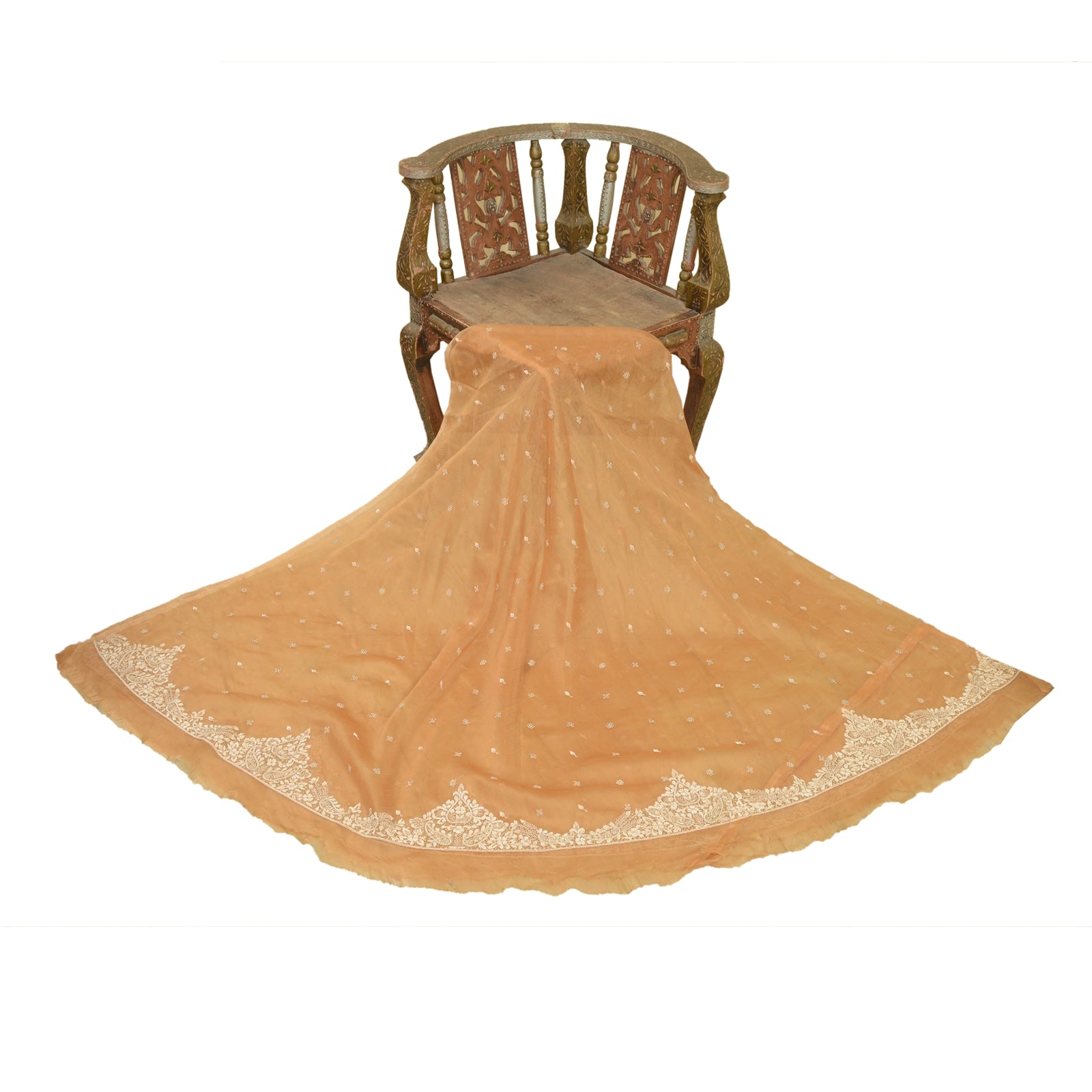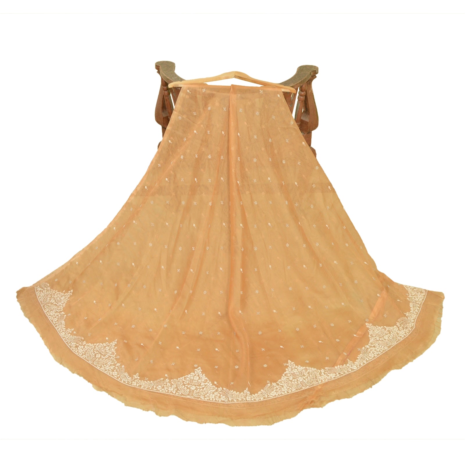 Sanskriti offers this new saffron long skirt made with Net Mesh. Antique hand beaded skirt. The skirt has hand beaded floral design embellished with pure metallic golden and cream zardozi/dabka, white glass beads work. It is a unstitched skirt with a length of 52 inch and flare of the skirt is 170 inch. Flaunt this heavy skirt with ethnic tops, blouses or kurtis at parties, weddings and other occasions. Antique work skirt with beautiful craftsmanship which I am sure you will truly appreciate. The quality of zari work is amazing, its a pure metallic zari. Some zari work gives an antique look. 'International buyers please note: Import duties, taxes, and charges are not included in the item price or postage cost. These charges are the buyer's responsibility. Please check with your country's customs office to determine what these additional costs will be prior to bidding or buying. Buyer will pay custom duty/tax. It is calculated and charged differently by every country. As a seller I do not have any control over it. VAT or sales tax is calculated by the platform at the time of checkout. Customs charge is payable at the time of delivery.