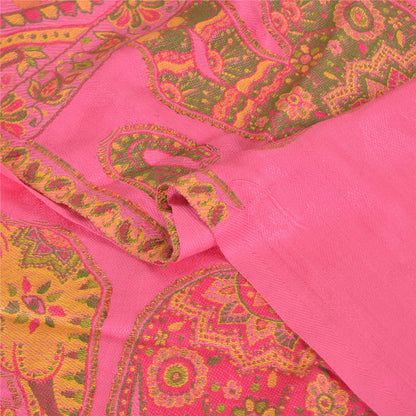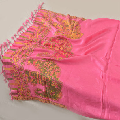 Sanskriti Vintage New Scarf Embroidered Pure Wool Indian Shawl Pink Woven Work Stole