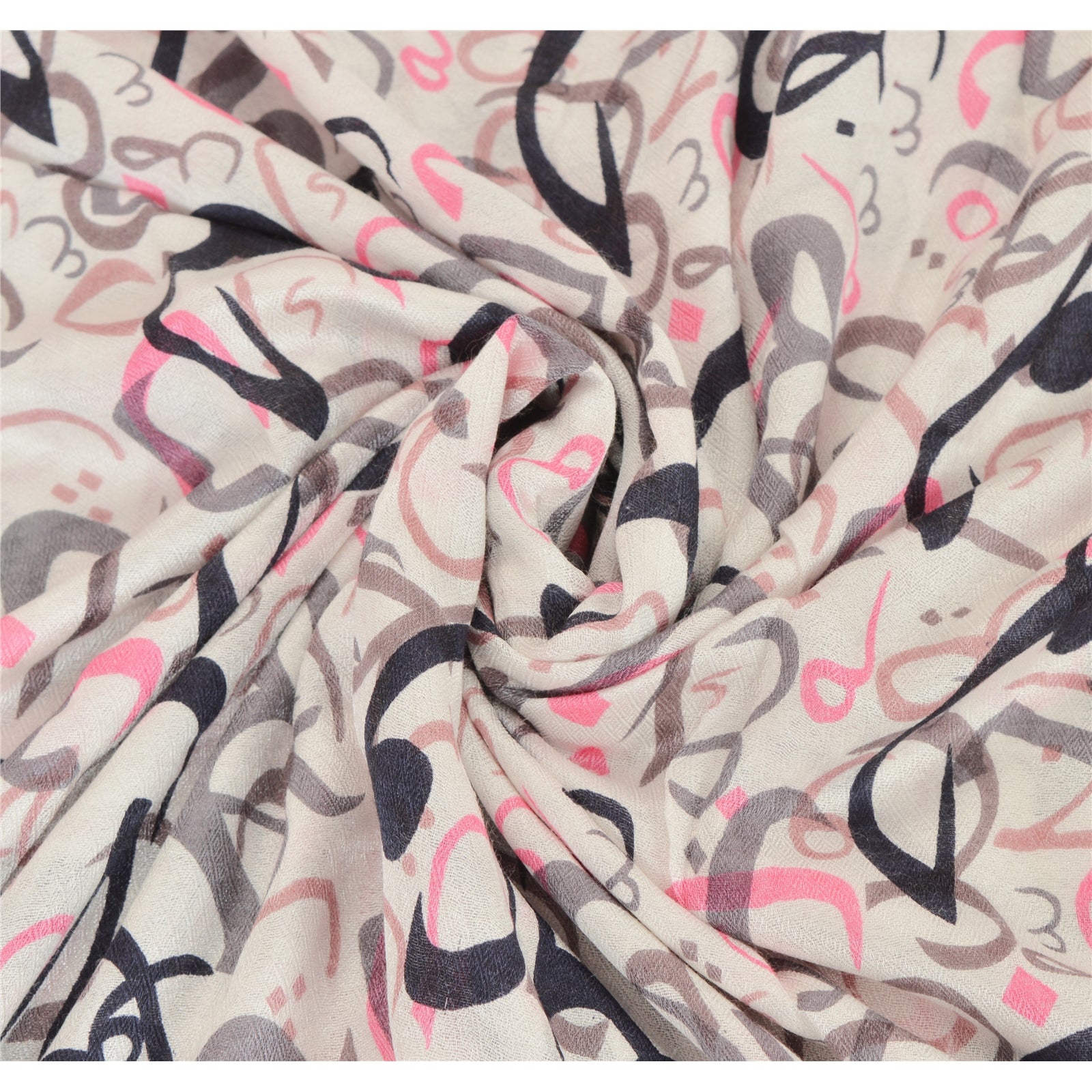 Sanskriti New Viscose Printed Shawl White Stole Scarf Abstract Wrap Scarves