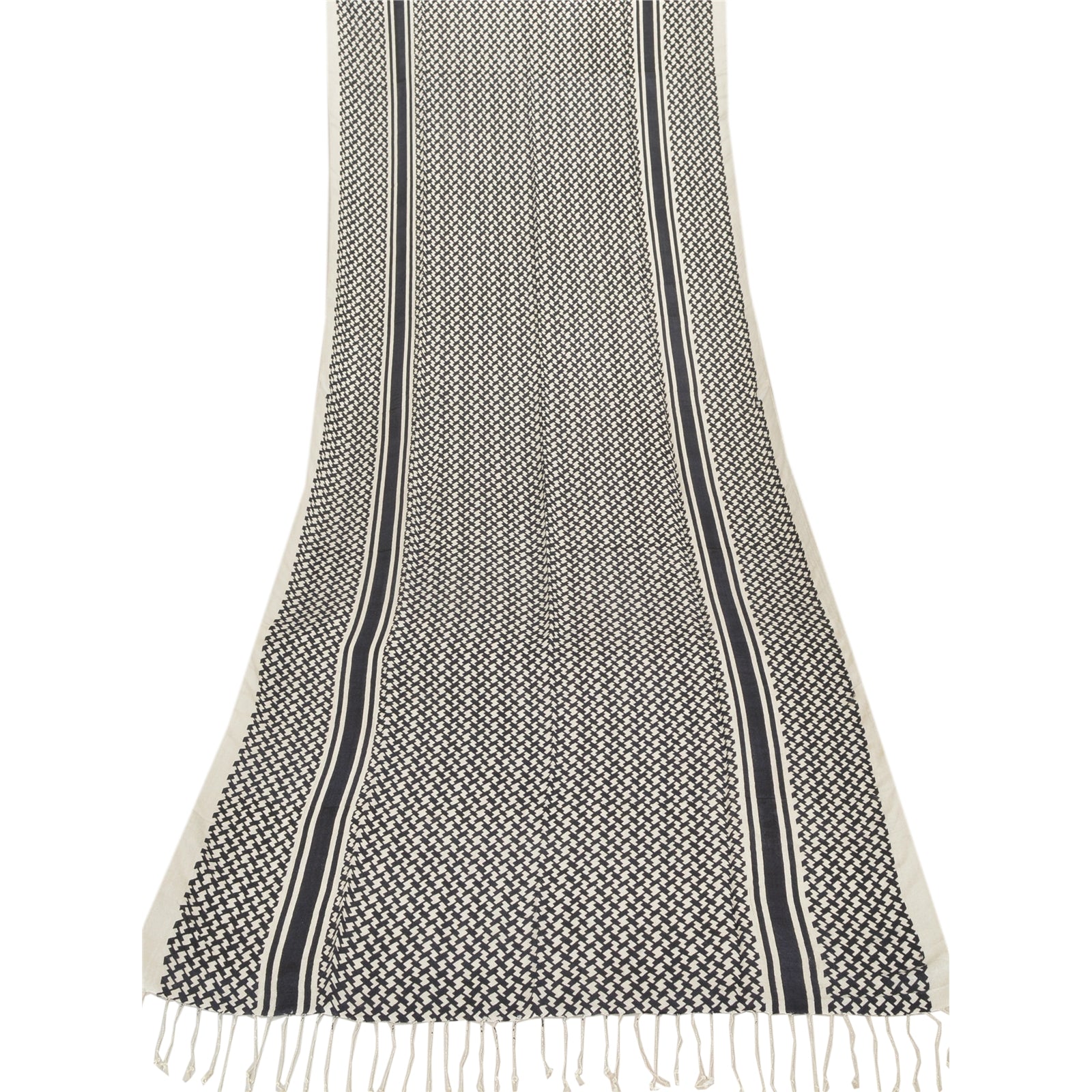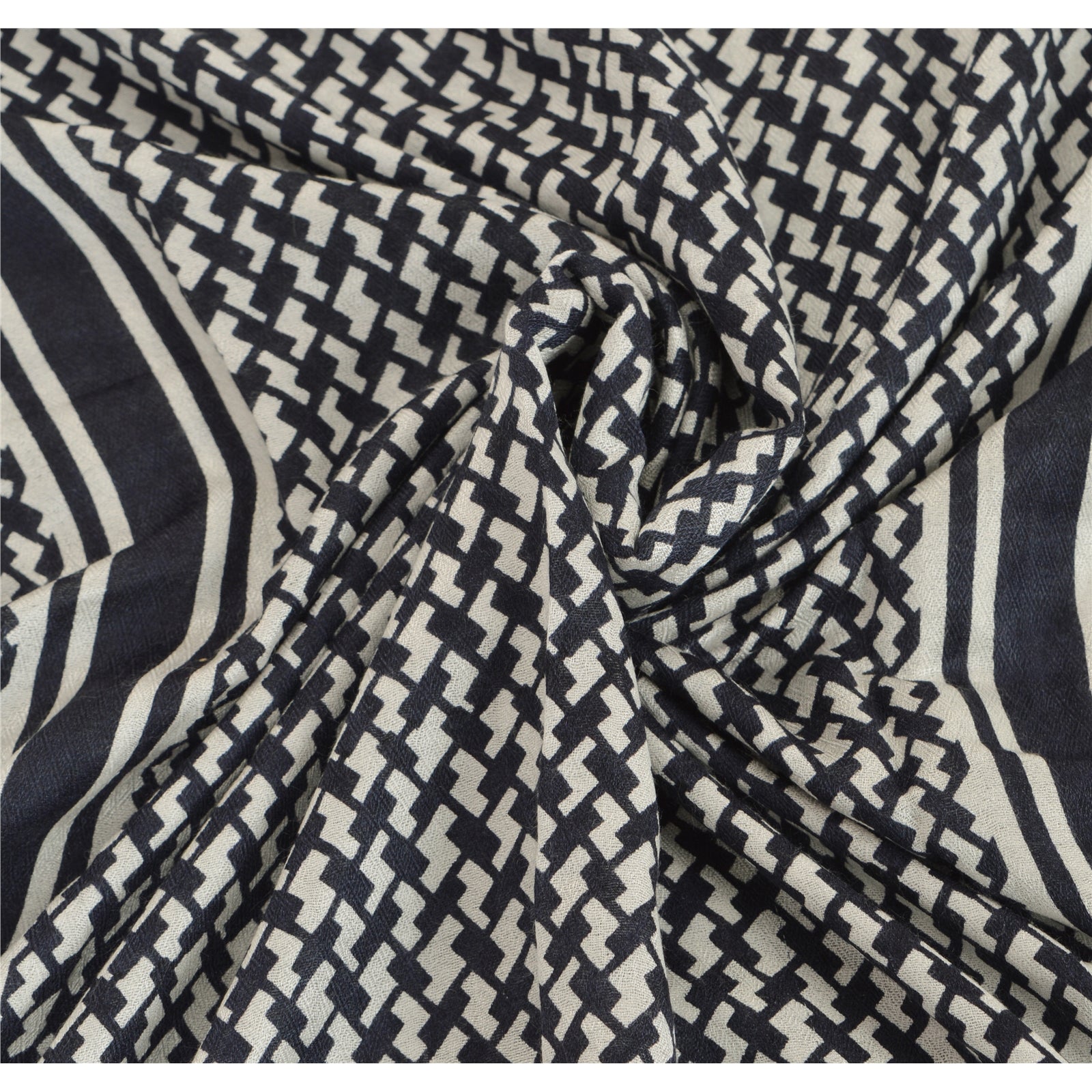 Sanskriti New Viscose Printed Shawl White Stole Scarf Geometrical Scarves