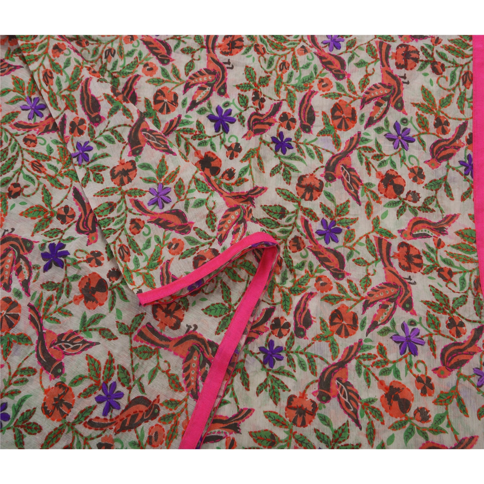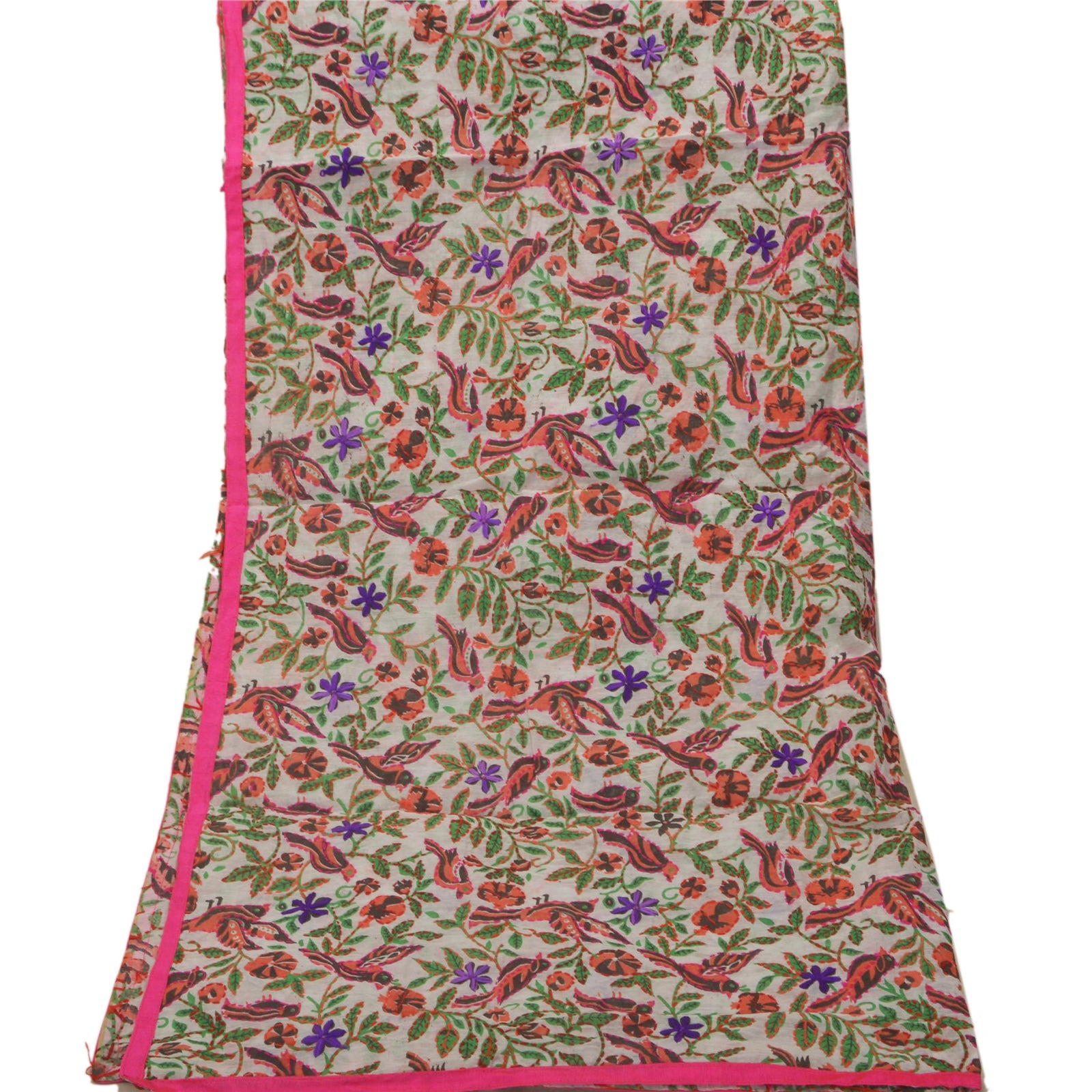We Are Offering A Multi Coloured Printed Kantha Work Chanderi Silk Sustainable Fabric Heavy Dupatta On White Base. Chanderi Is A Traditional Ethnic Sustainable Fabric Characterized By Its Lightweight, Sheer Texture And Fine Luxurious Feel. Chanderi Sustainable Fabric Is Produced By Weaving In Silk And Golden Zari In The Traditional Cotton Yarn That Results In The Creation Of The Shimmering Texture. Traditionally, Chanderi Sustainable Fabric Was Primarily Used In Weaving Sarees And Salwar Kameez Material. Chanderi Sarees Are An Impeccable Choice For Summer Wear As Well As For Ceremonial Dressing Such As A Weddings Or Pujas. Kantha Is A Type Of Embroidery Typical Of Eastern South Asia. Kantha Is A Form Of Embroidery Often Practised By Rural Women. The Traditional Form Of Kantha Embroidery Was Done With Soft Dhotis And Saris, With A Simple Running Stitch Along The Edges. The Entire Cloth Is Covered With Running Stitches, Employing Beautiful Motifs Of Flowers And Birds Shapes, As Well As Themes From Everyday Activities. This Dupatta Is Multi Coloured Printed On A Chanderi Silk Based Sustainable Fabric With Kantha Work On White Base. It Has Beautiful Flowers And Birds Designs Printed And Multi Coloured Thread Embroidered On It Giving A Beautiful And Elegant Look. You Can Pair This Heavy Dupatta With Any Kind Of Plain Dress To Glam Up The Beauty In You.