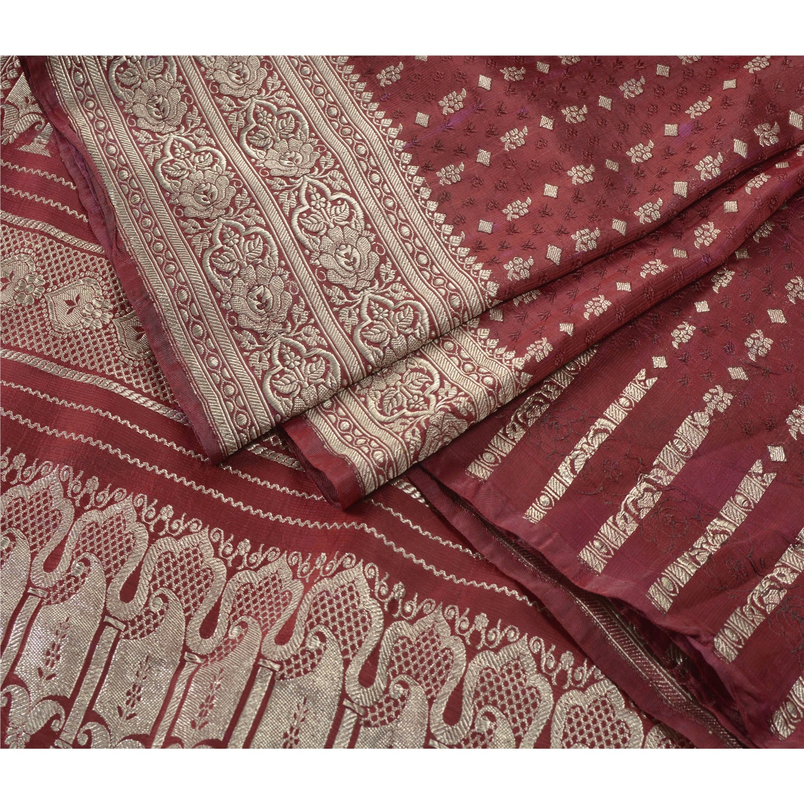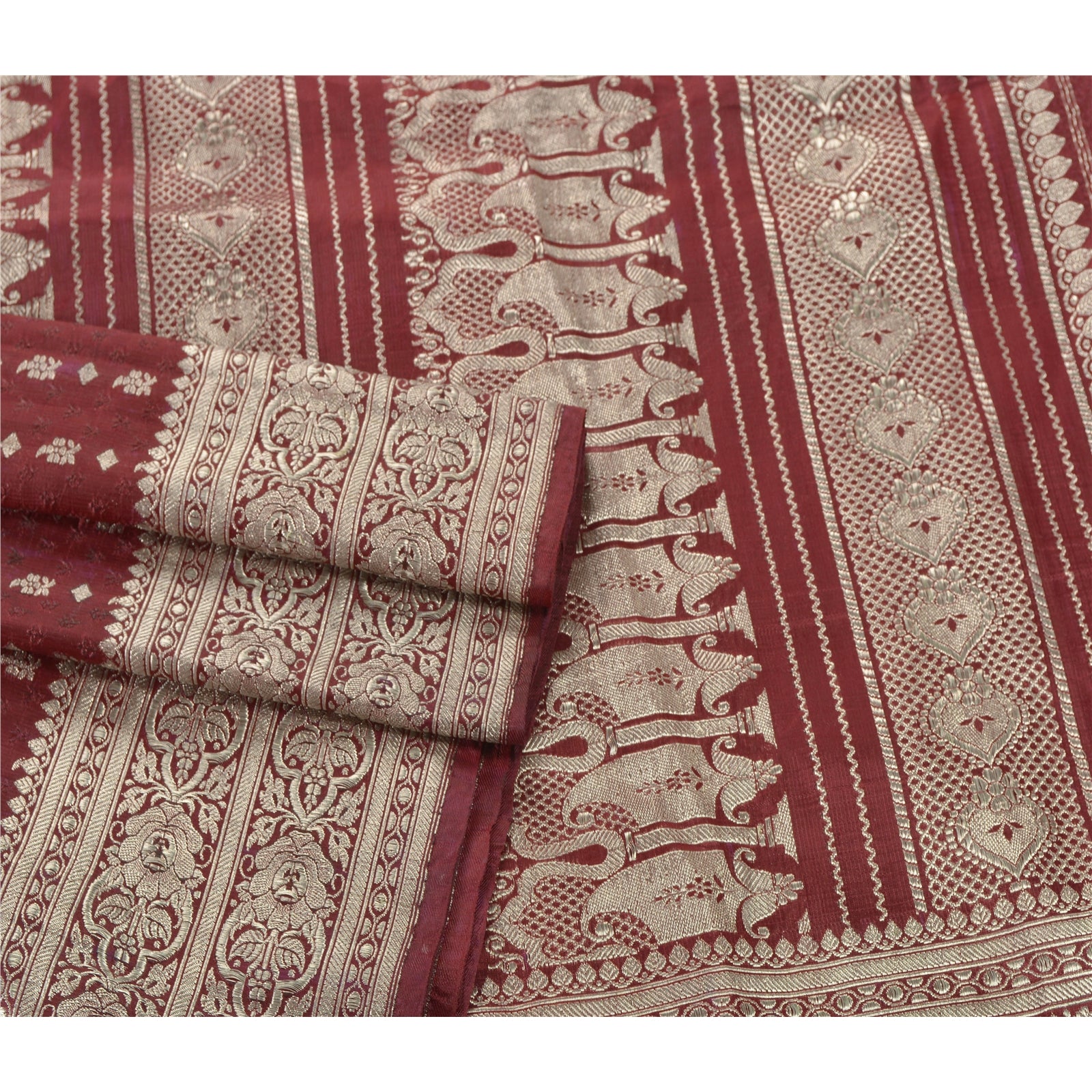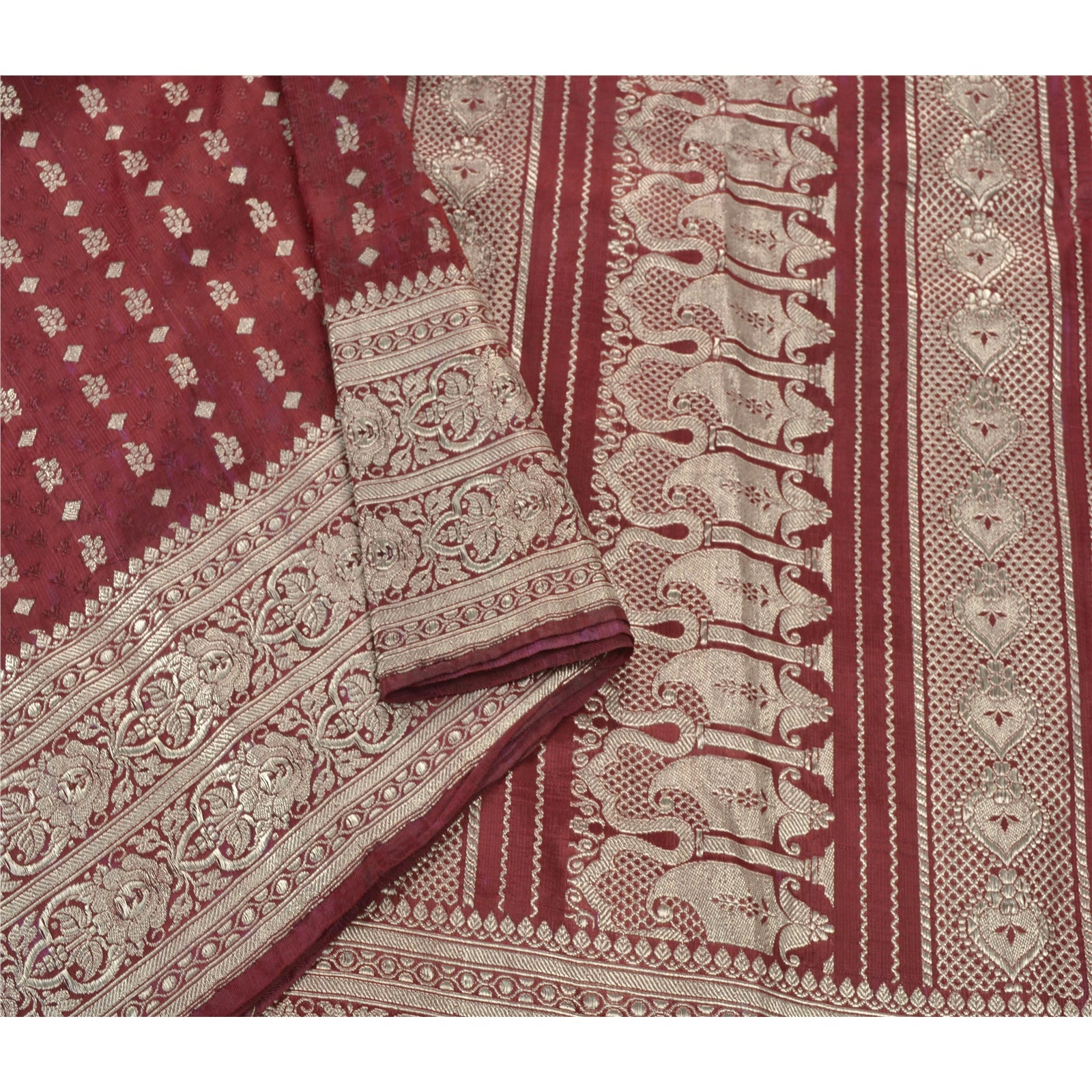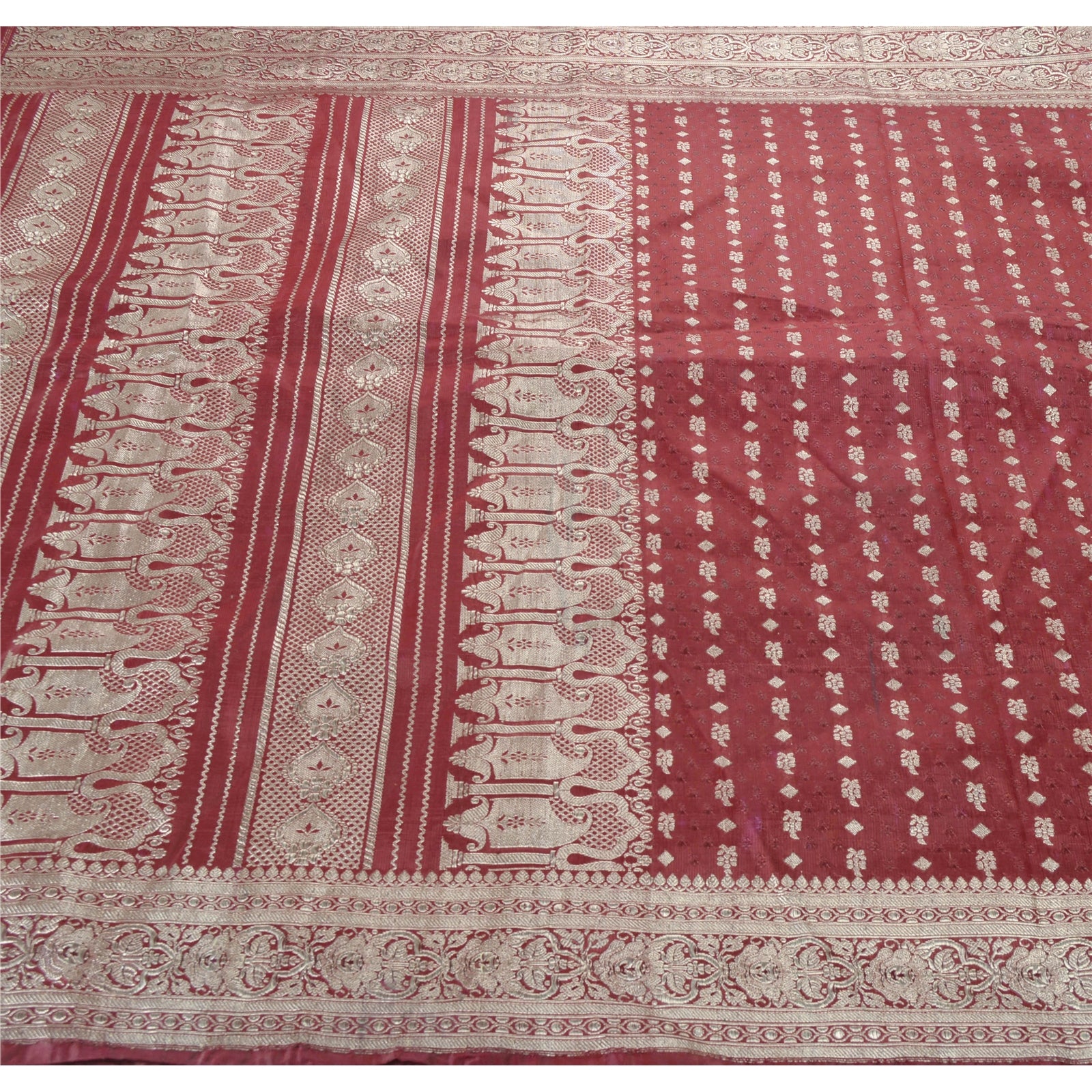 Sanskriti Vintage Dark Red Heavy Saree Satin Woven Brocade/Banarasi Sustainable Fabric Sari