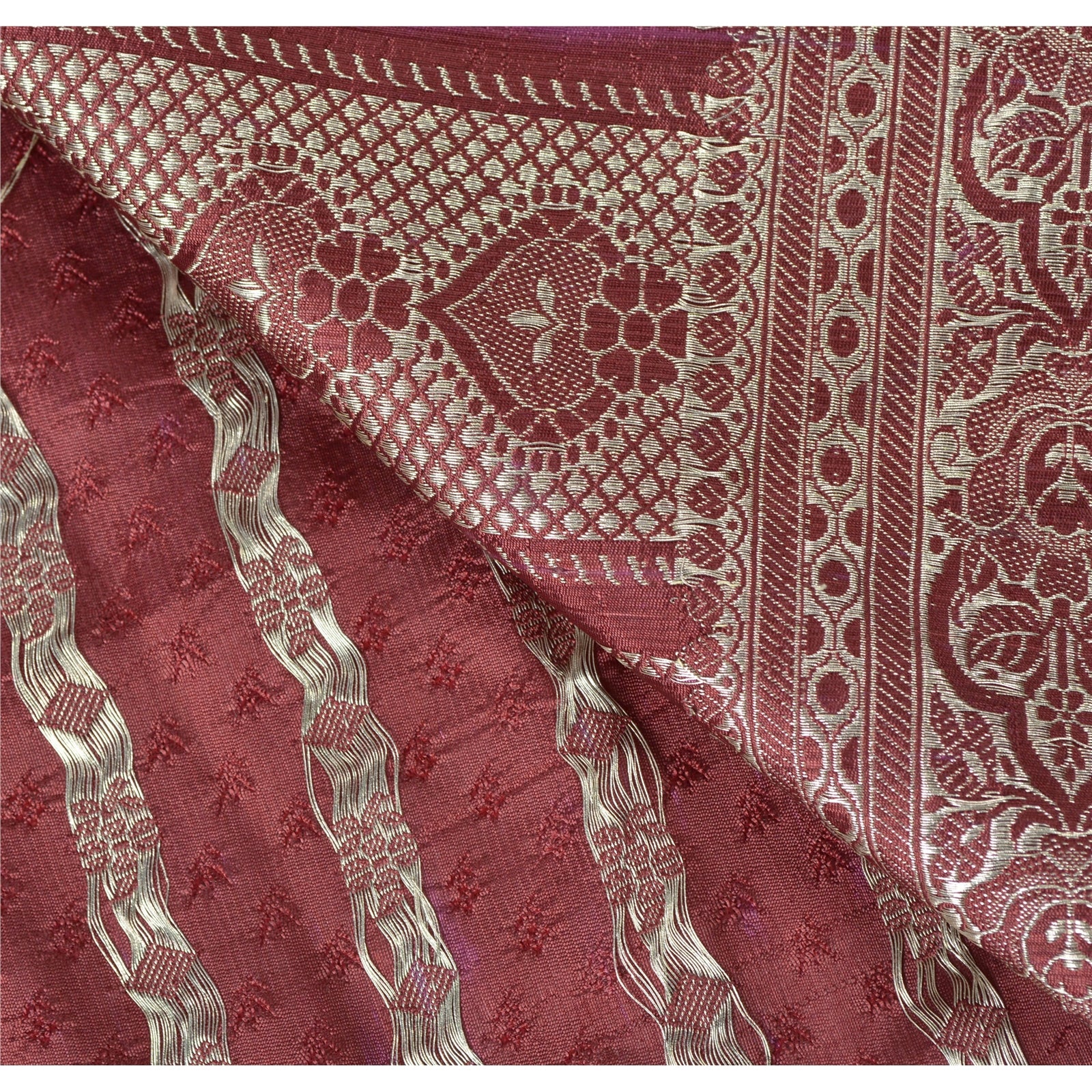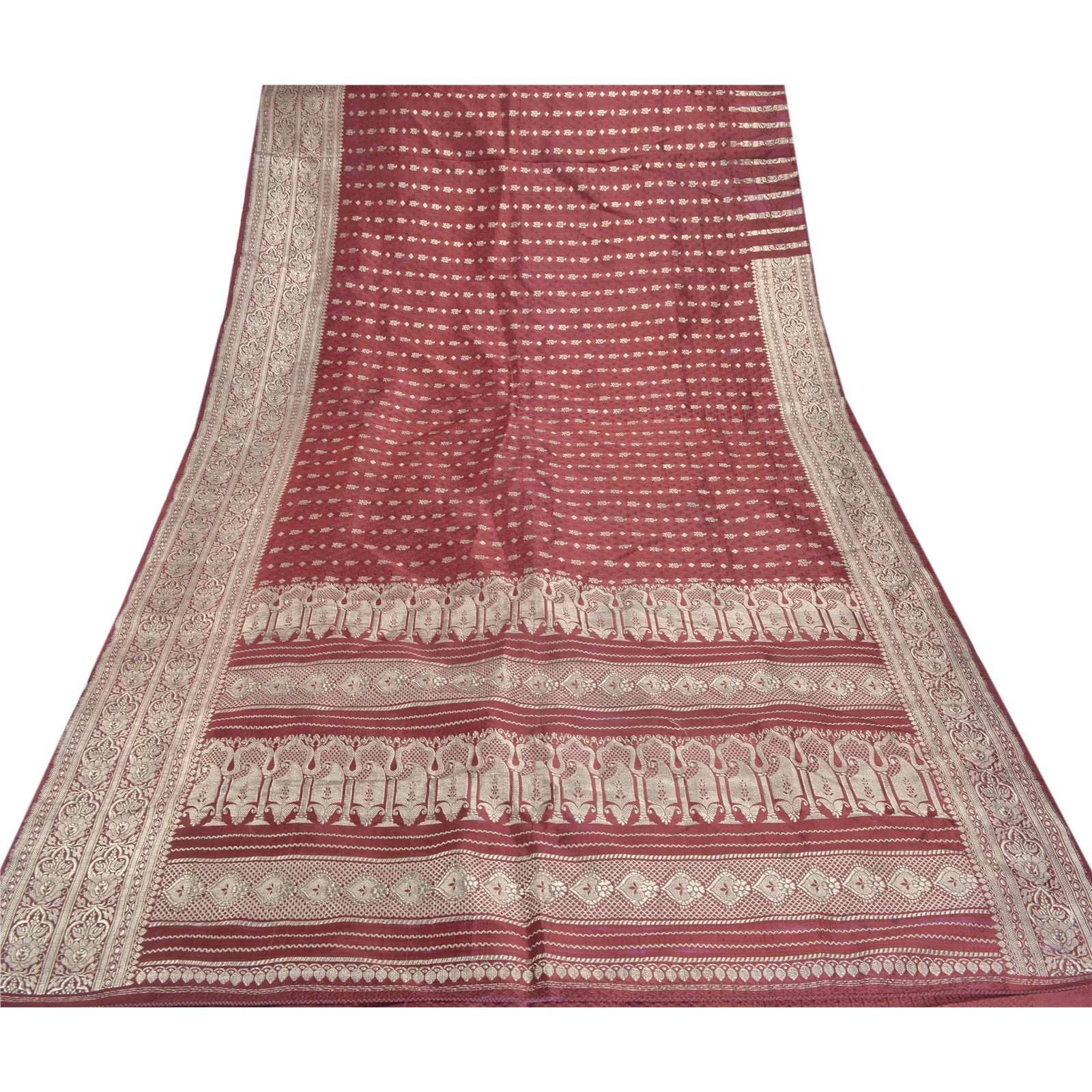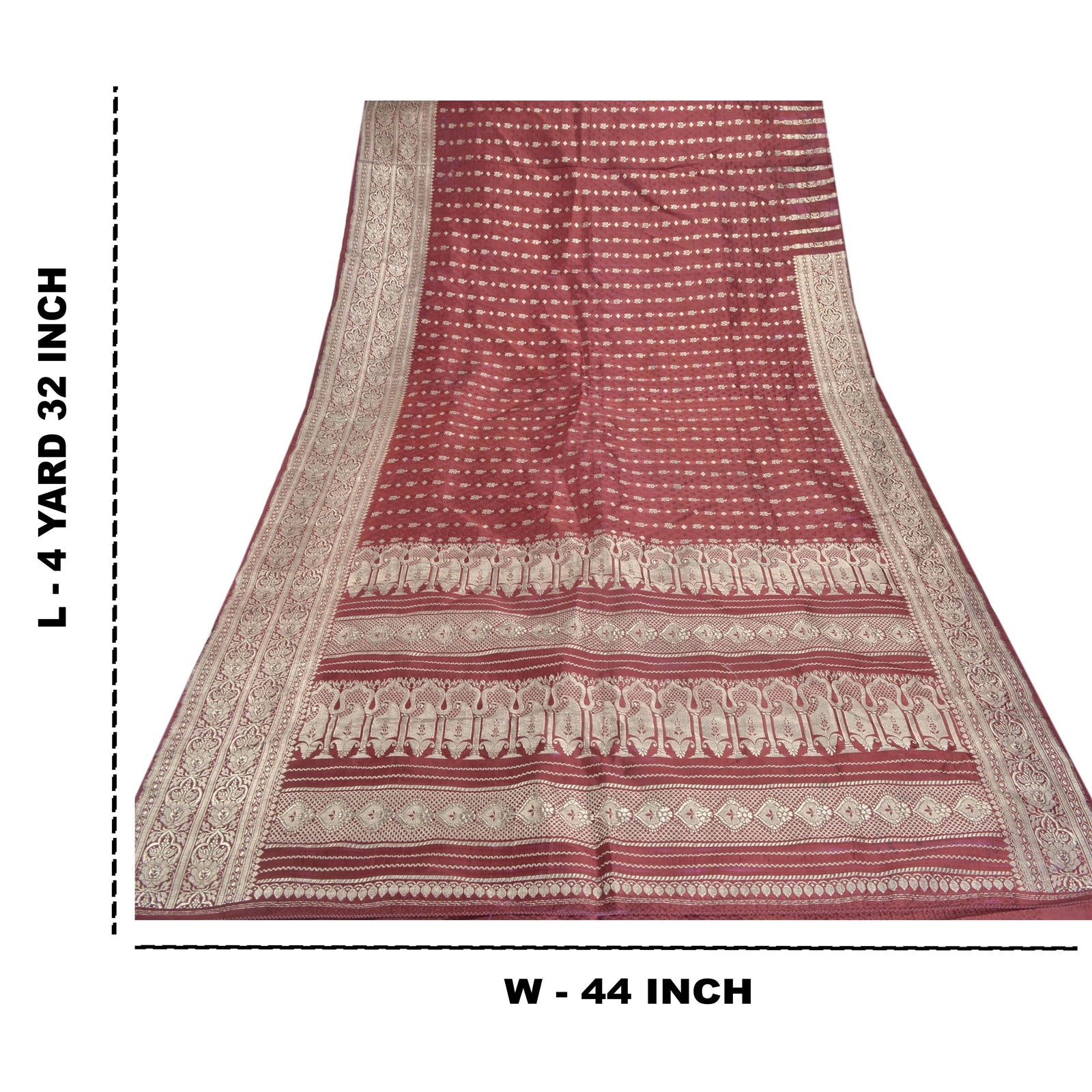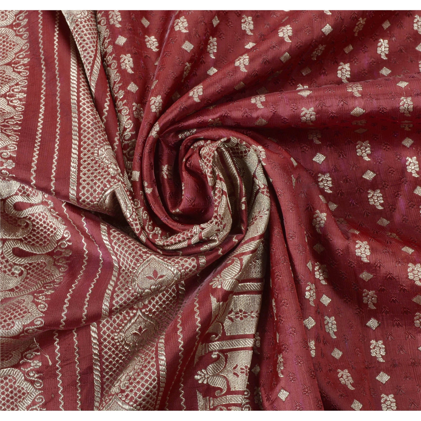 Sanskriti Vintage Dark Red Heavy Saree Satin Woven Brocade/Banarasi Sustainable Fabric Sari