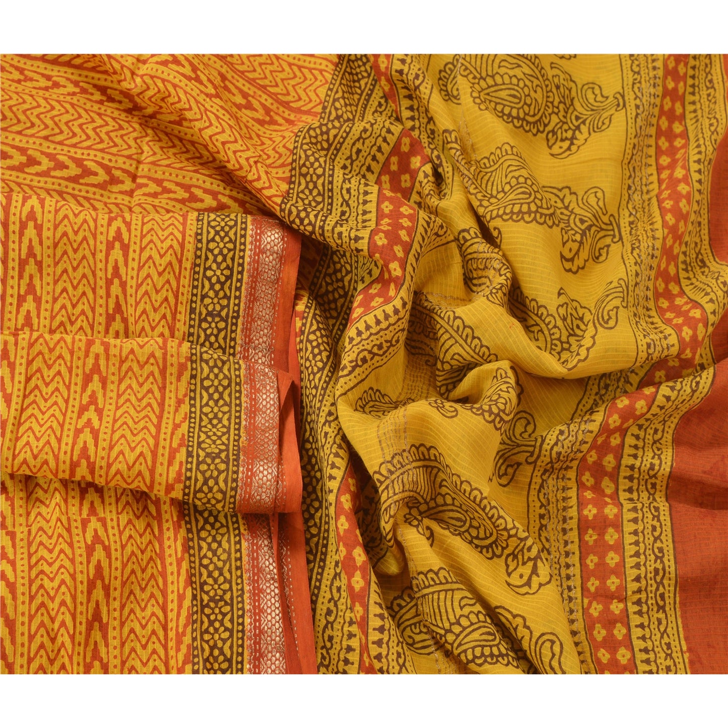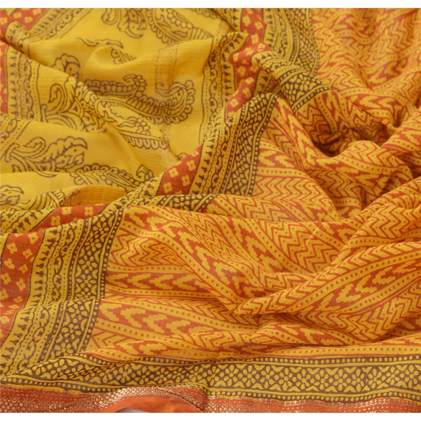 Sanskriti Vintage Dupatta Long Stole Pure Chanderi Silk Yellow Block Printed