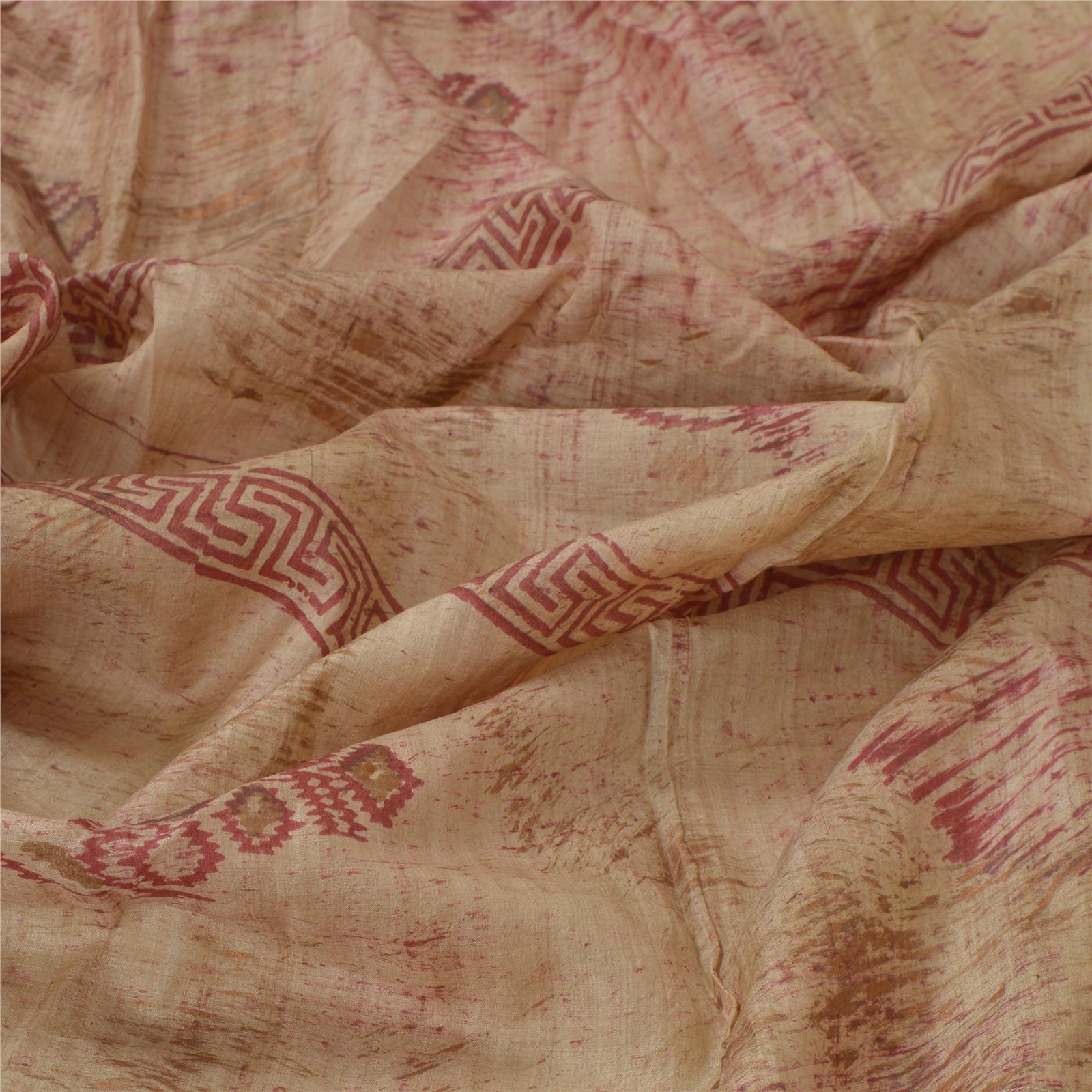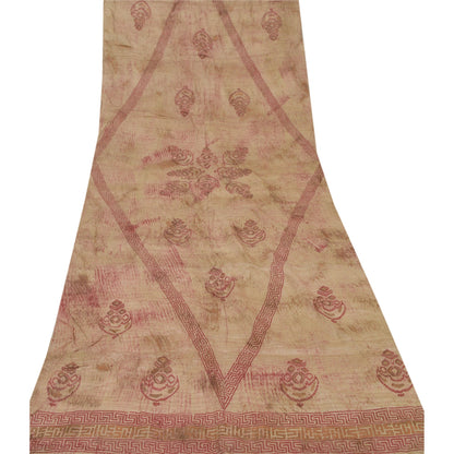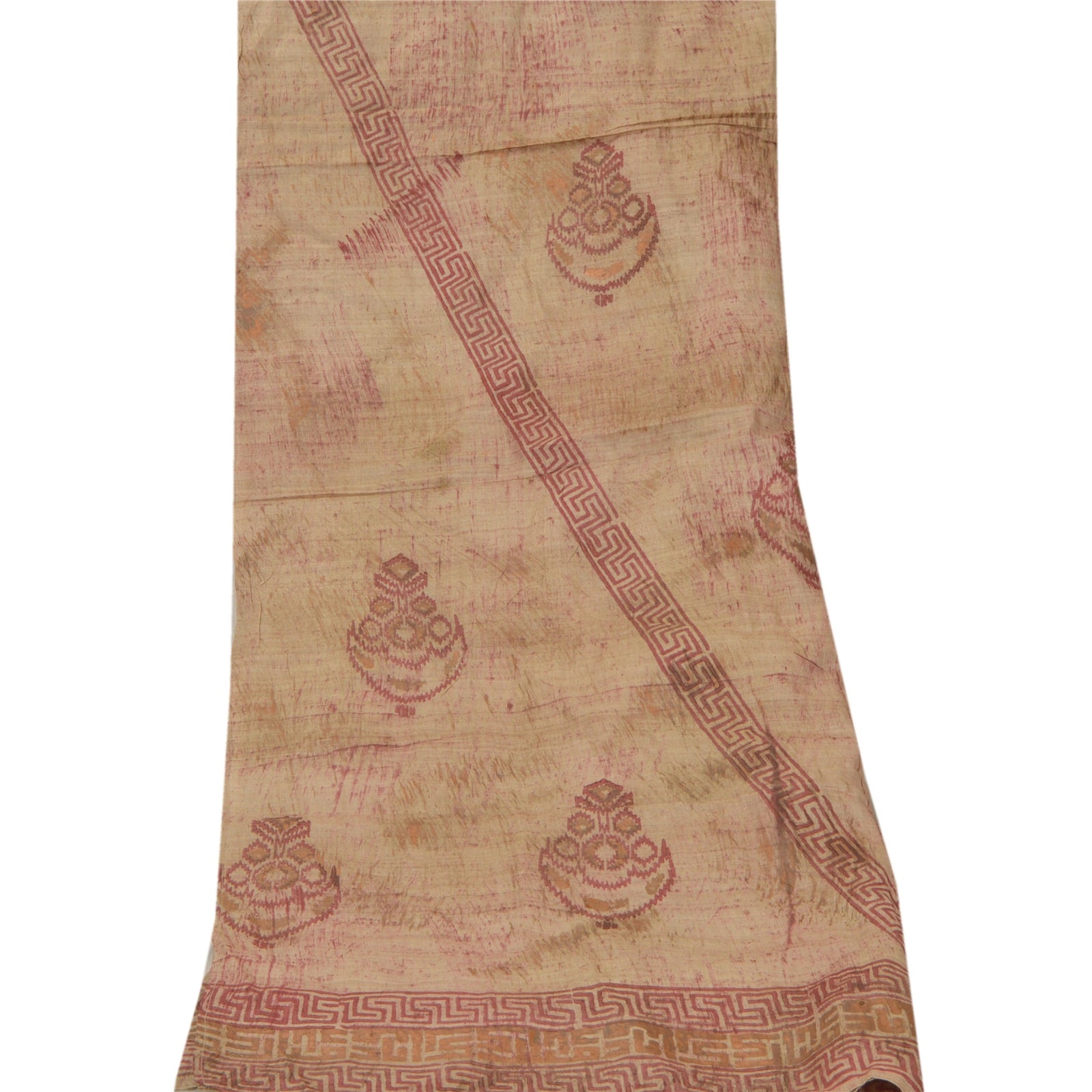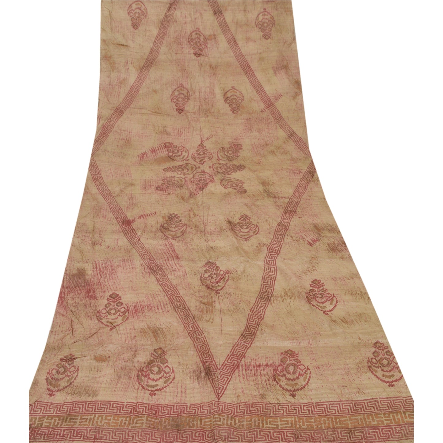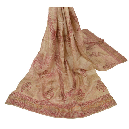 Sanskriti Vintage Dupatta Long Stole Pure Silk Cream Block Printed Scarves Veil