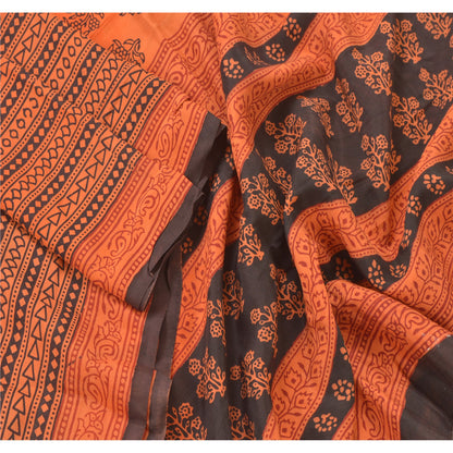 Sanskriti Vintage Dupatta Long Stole Pure Silk Peach Block Printed Scarves Veil