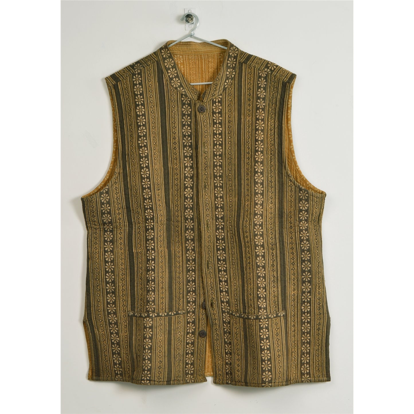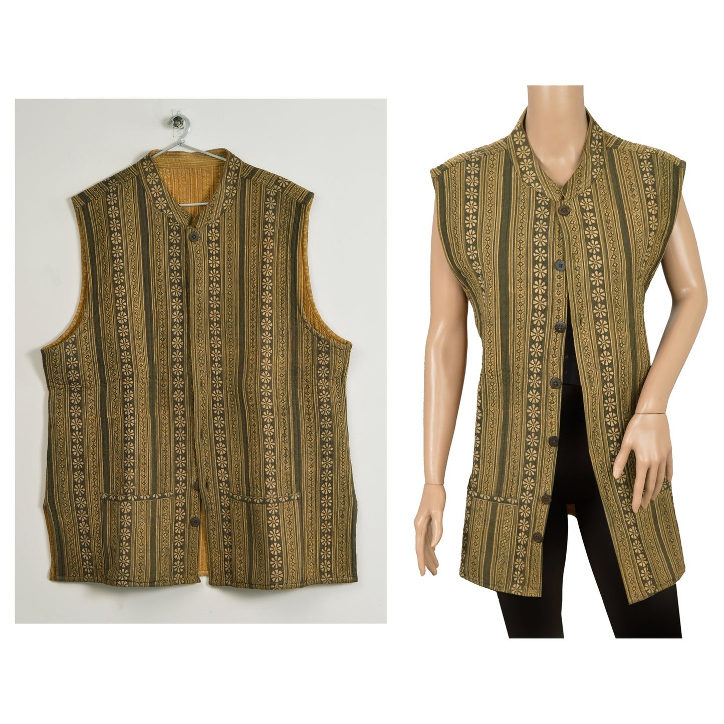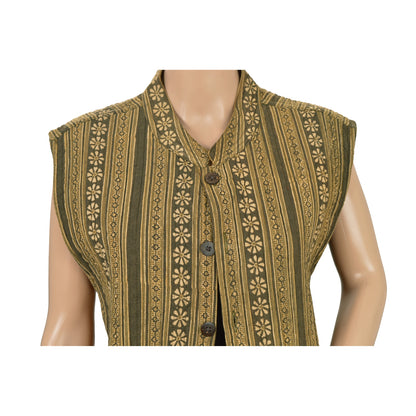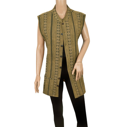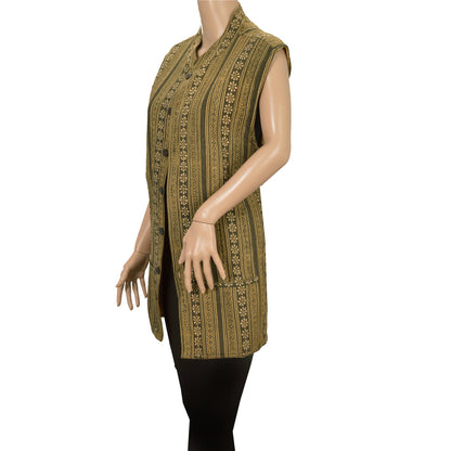 Sanskriti Vintage Sustainable Fabric Cotton Printed Jacket Long Top Fashion Indian Green
