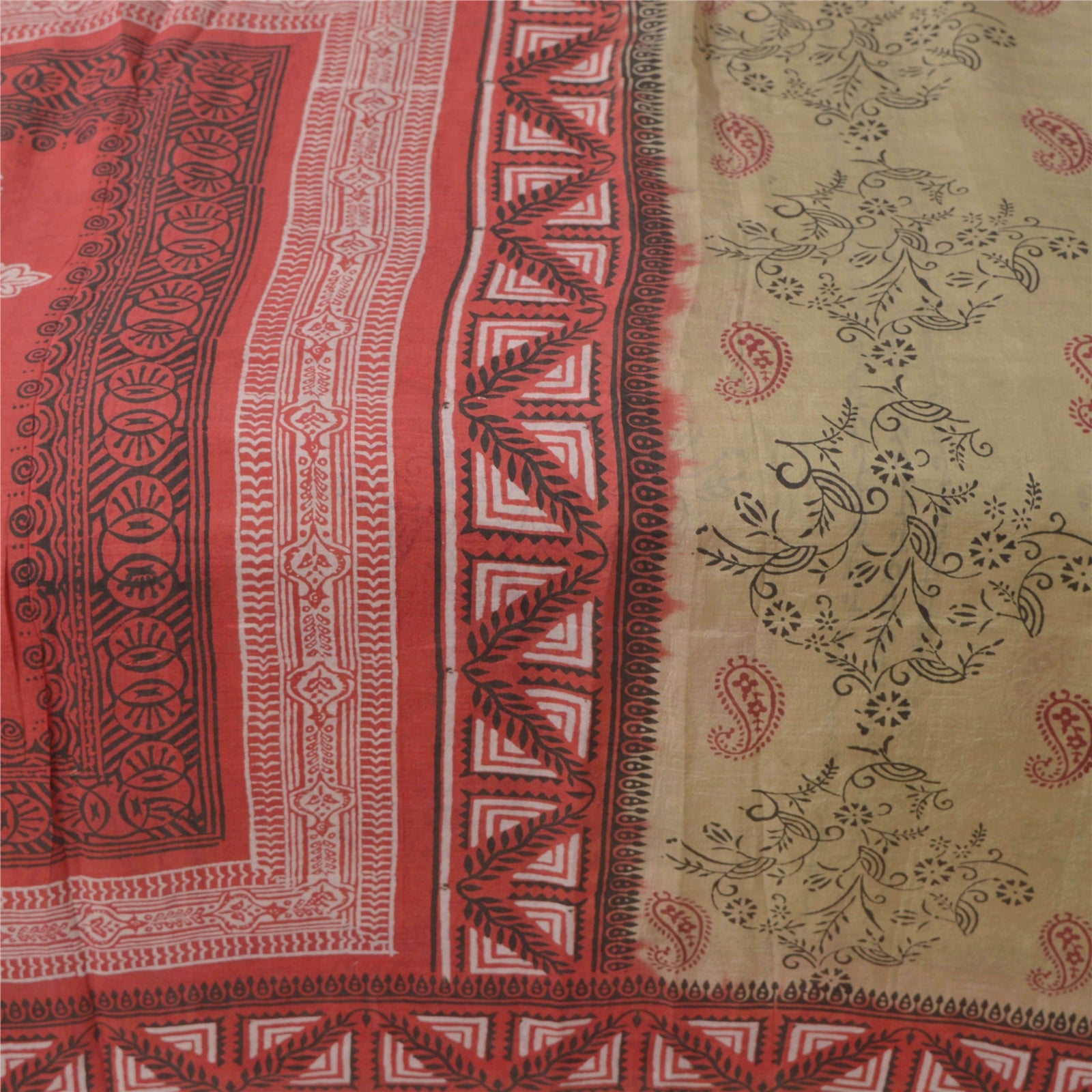 • Fabulous shades of green & red colored printed pure silk saree . • Pallu & Border has printed floral & paisley design. • Similar design in center part of sari . What is special about this saree? Brilliant floral design with printed work on pure silk Sustainable Fabric is really enhancing the beauty of the saree. This unique vintage saree can be used for various crafting ideas even if you don't want to use it as a sari. Design a dress, use it as a as window dressing, upholstery, sarongs, throw, dress making and table linen much more. Let your creative juices flow and use this decorated Sustainable Fabric in multiple fashion