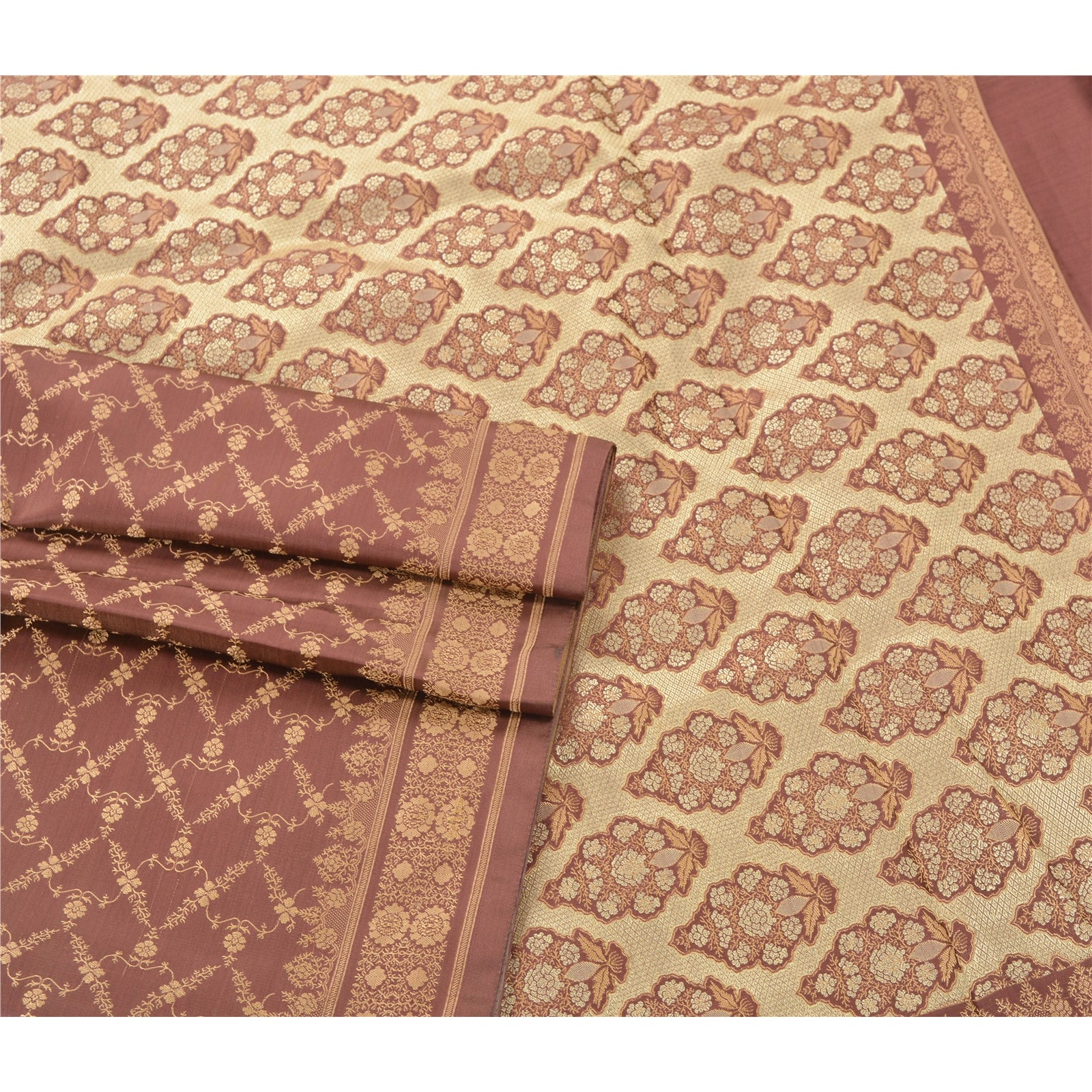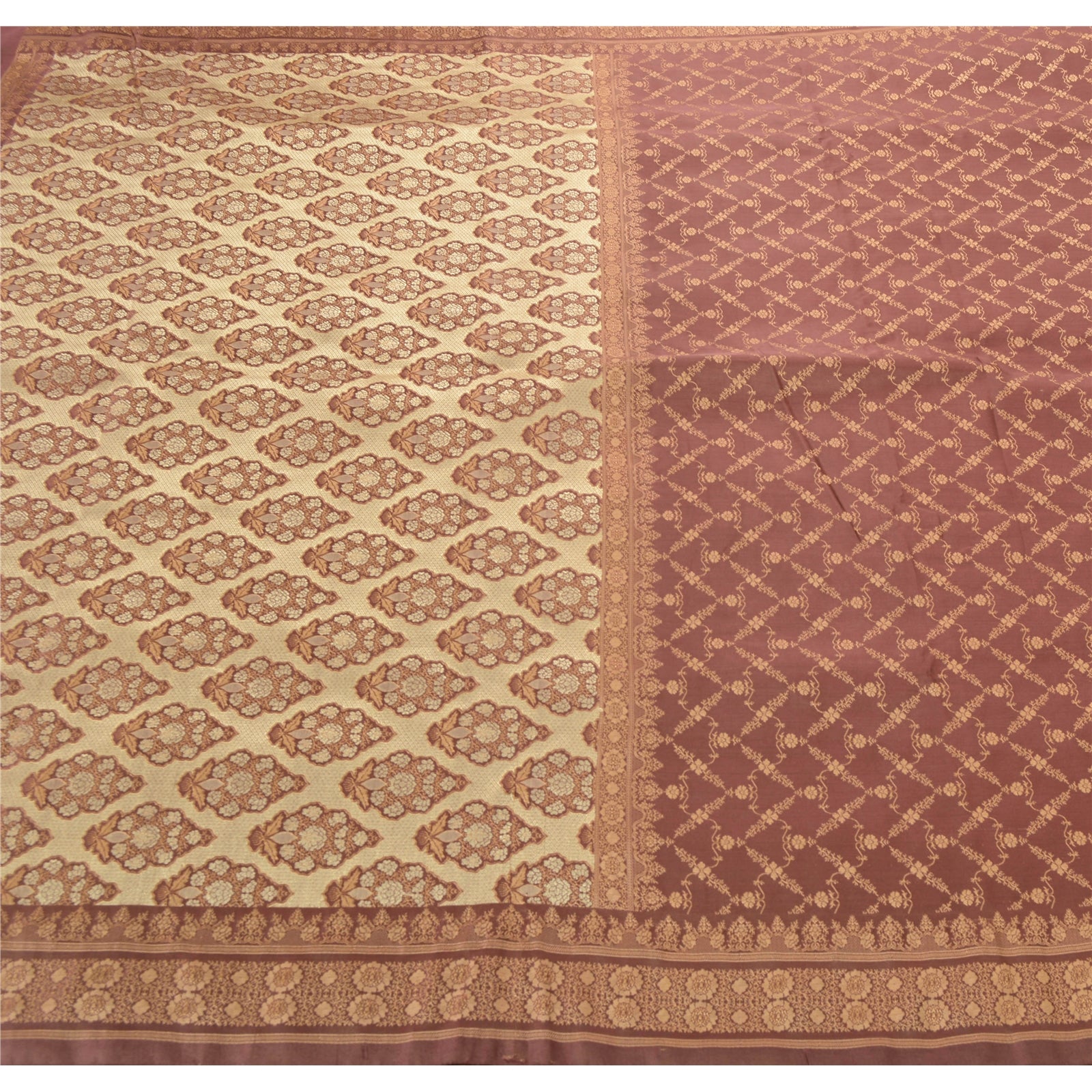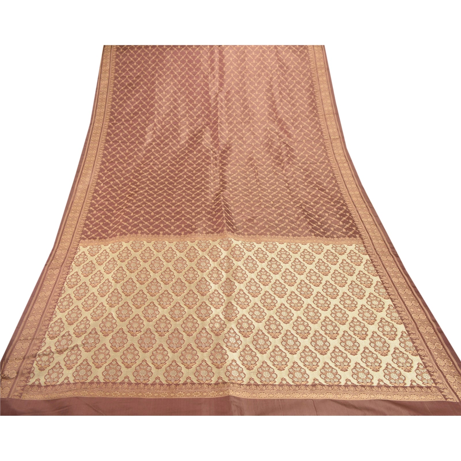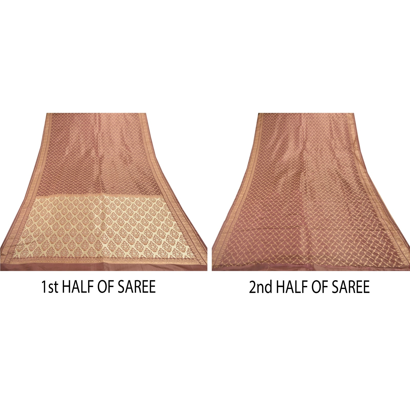 Sanskriti Offers This Vintage Shade Of Pink Color Woven Heavy Saree Which Is Crafted With Satin Base Sustainable Fabric The pallu & border sari features floral design embellished with peach, cream woven work. The center part of sari boasts similar woven work. This heavy saree can be used for various crafting ideas too. Use it for dress designing, as a throw, as window dressing, upholstery, table linen and much more. Let your creative juices flow!
