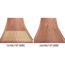 Sanskriti Vintage Indian Heavy Pink Saree Satin Woven Sustainable Fabric 5 Yard Sari